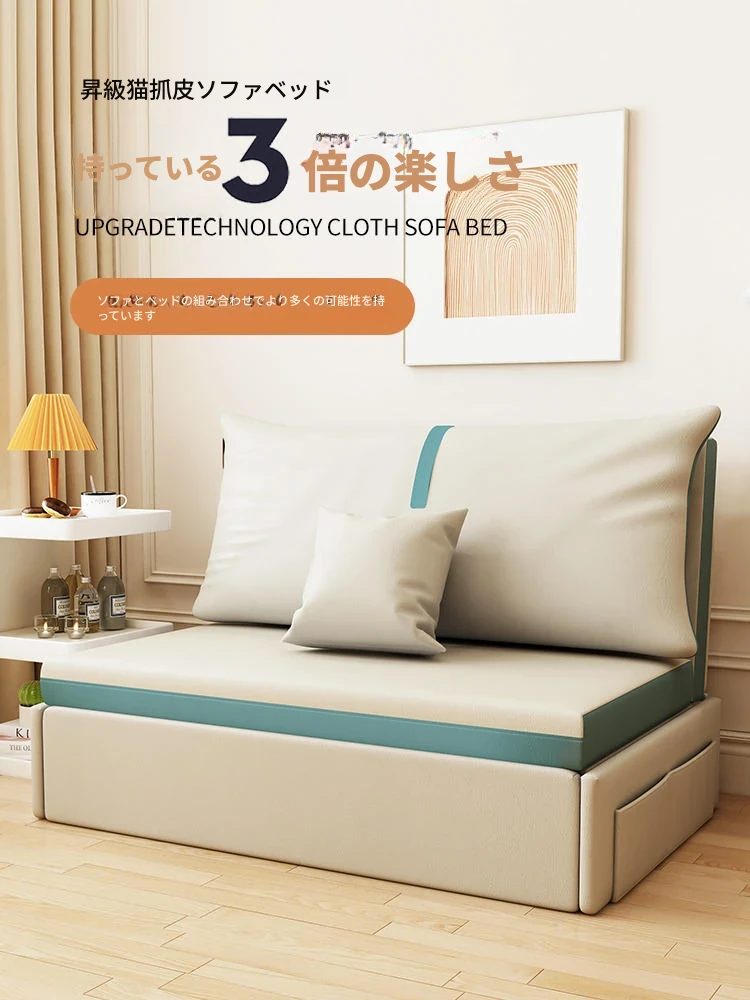 全実木ソファベッド 金色のクルミ材使用 新中式デザイン 小型リビングに最適な収納付きソファベッド スタイリッシュで機能的な家具