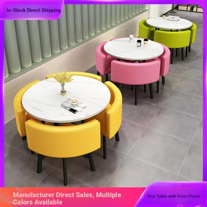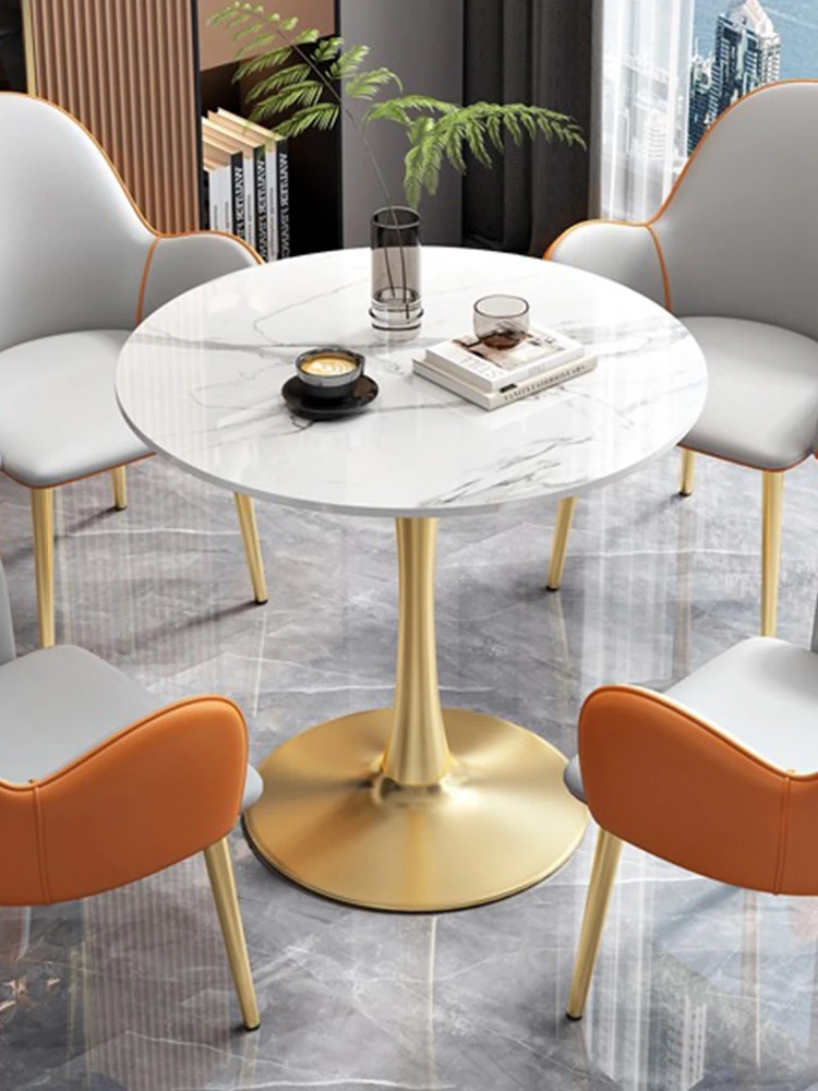 Nordic Minimalist Luxury Meeting Table and Chair Set for Sales Offices, Casual Reception Areas, Modern Coffee Shops, and Bubble Tea Stores – Stylish Small Round Table for Elegant Gatherings