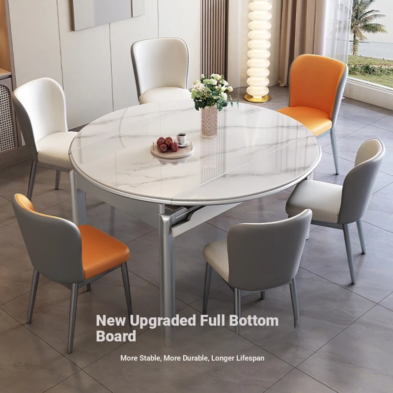 Modern Minimalist Marble Round Dining Table - Foldable and Expandable for Homes of All Sizes, Perfect for Family Gatherings and Entertaining