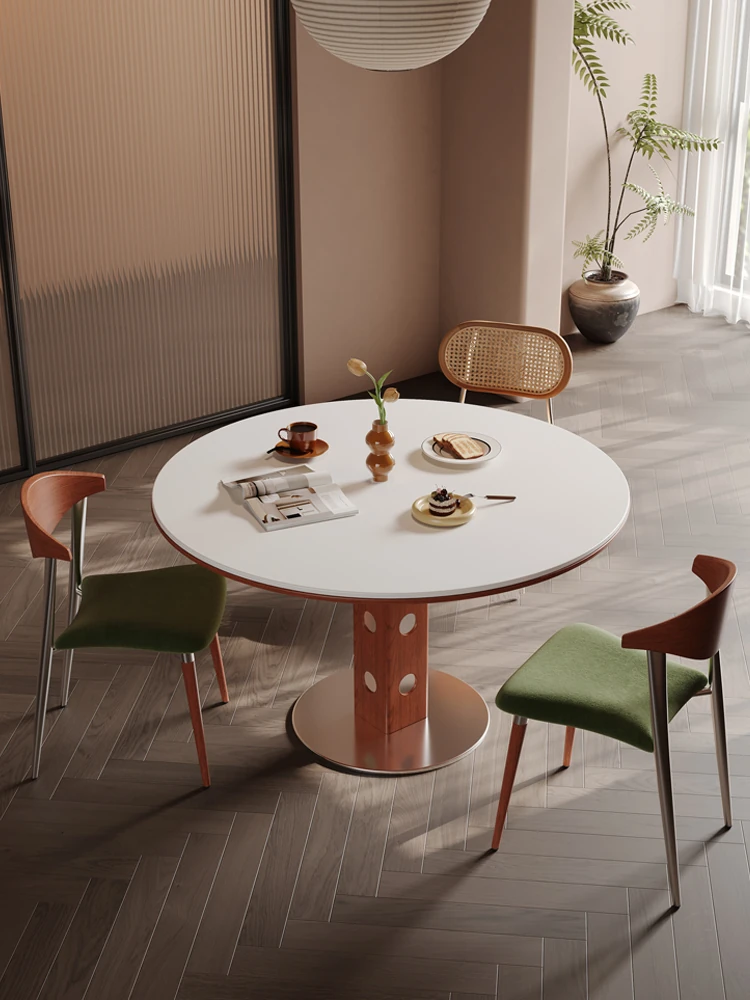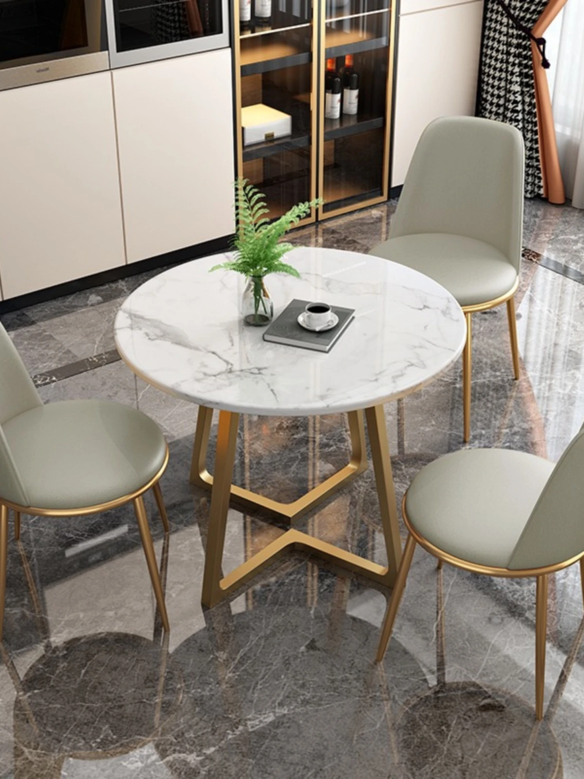 Minimalist Italian Stainless Steel Marble Dining Table - Modern Simple Round Table for Small Spaces, Perfect for Home, Casual Meetings, and Living Rooms