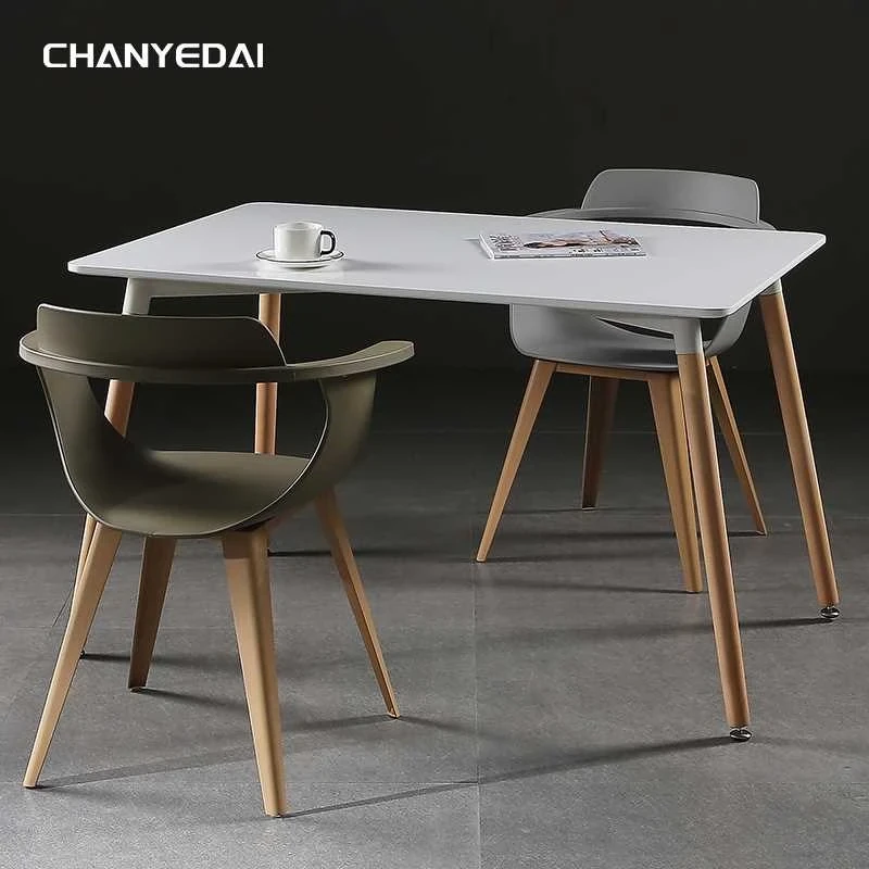 Nordic Minimalist Solid Wood Leg Dining Table Set for Small Spaces - Rectangular Rental Home Eating Table with Chairs, Ideal for Commercial Use