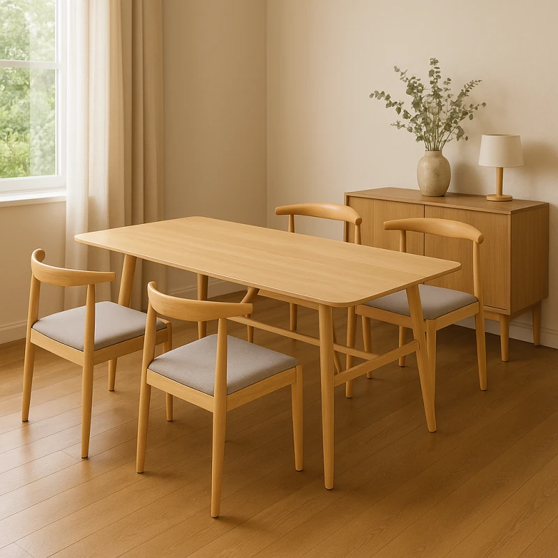 Scandinavian Solid Wood Dining Table and Chair Set - Modern Minimalist Rectangular Table in Natural Wood Color for Small Spaces