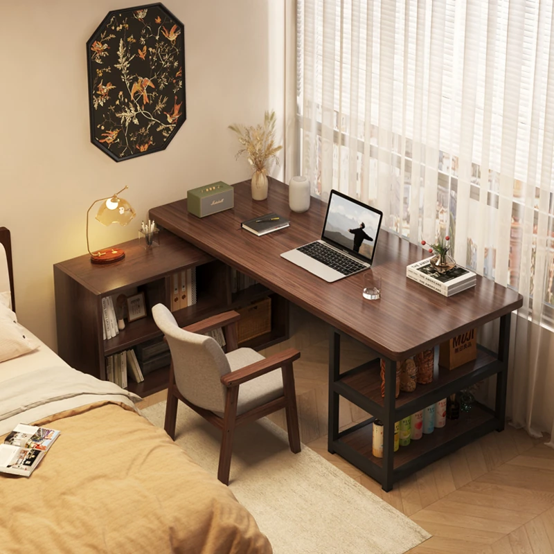 Stylish Minimalist Student Study Desk with Dual Storage Shelves - Versatile Corner Computer Table for Home Office and Bedroom