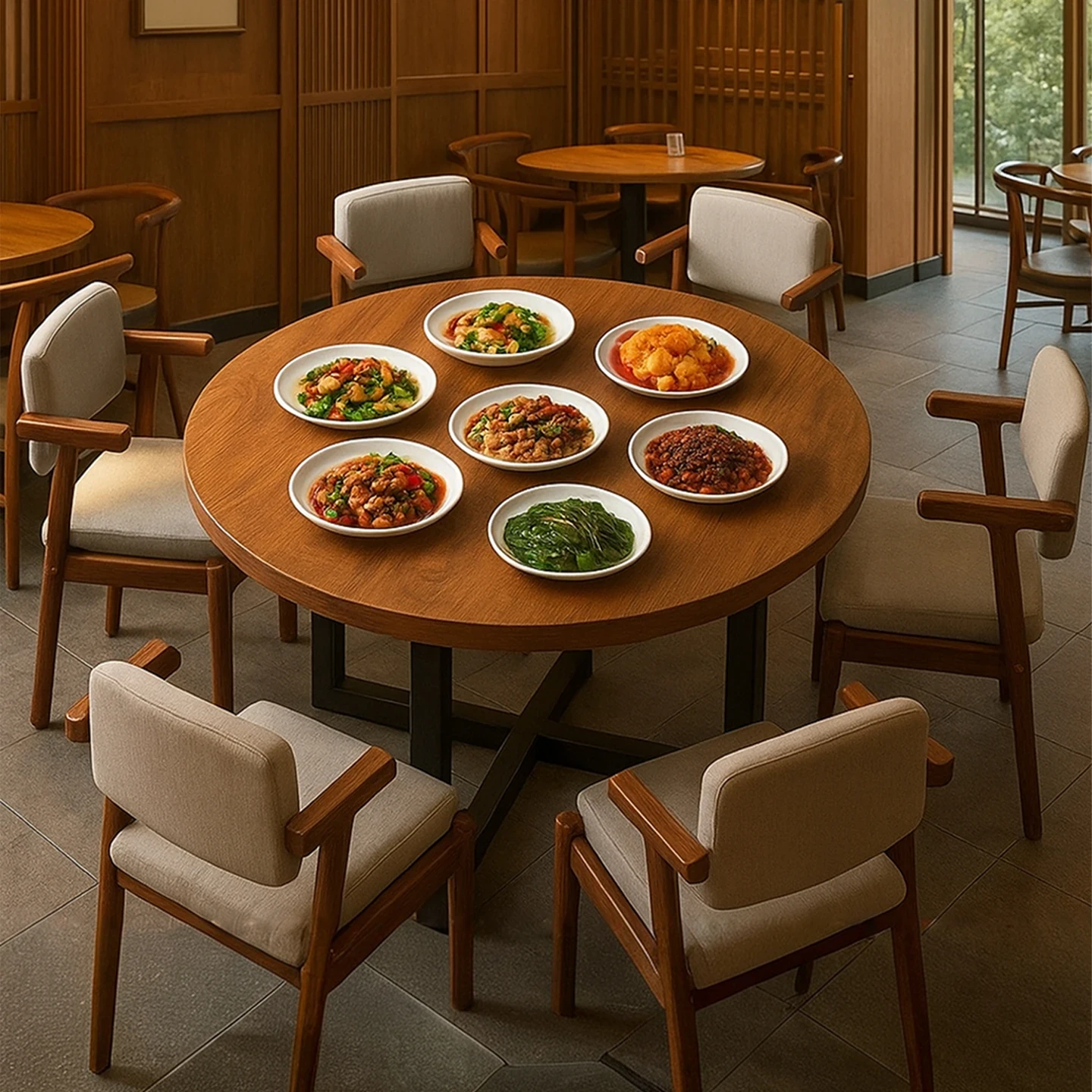 10-Person Round Dining Table Set for Restaurants, Cafes, and Fast Food Outlets - Perfect for Small Eateries and Casual Dining Spaces!