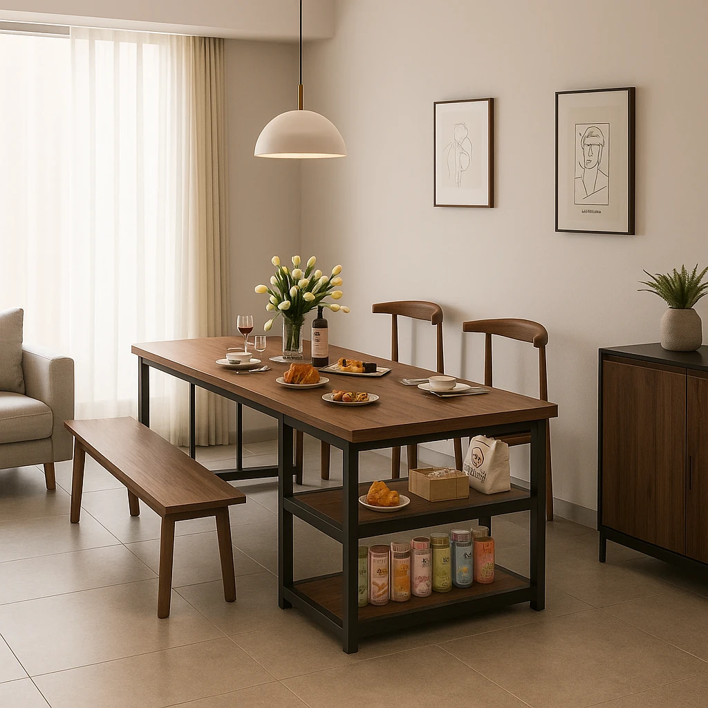 Minimalist Dining Table Set for Home & Commercial Use - Rectangular Table with Chairs & Stools, Perfect for Restaurants, Cafes, and Snack Bars