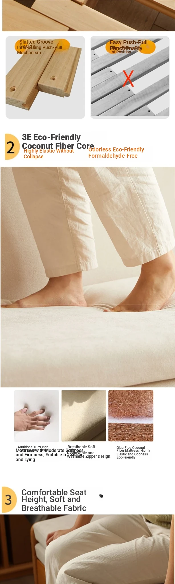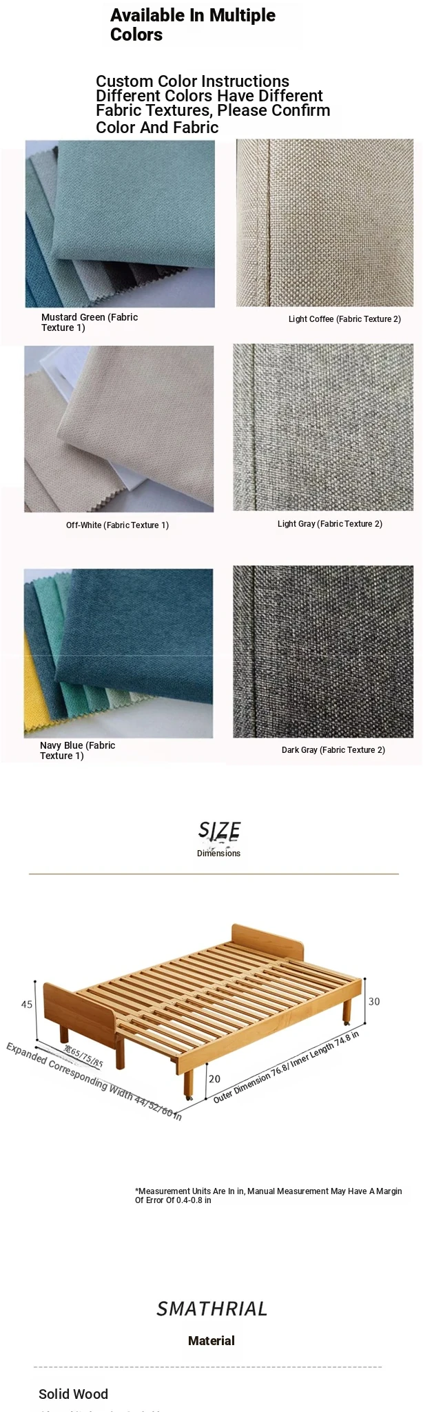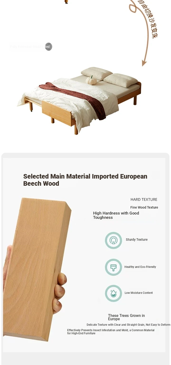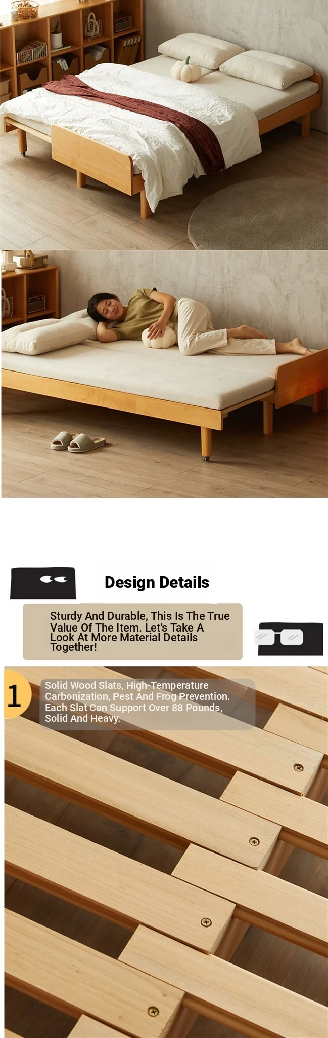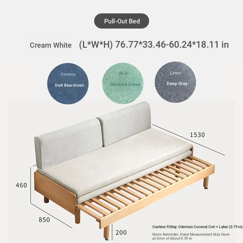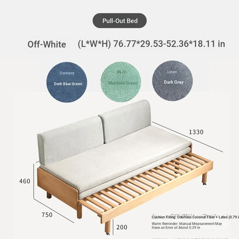 2022 New Multi-Functional Solid Wood Sofa Bed – Foldable & Pull-Out Design for Small Living Rooms, Perfect for Dual Use as Sofa and Bed