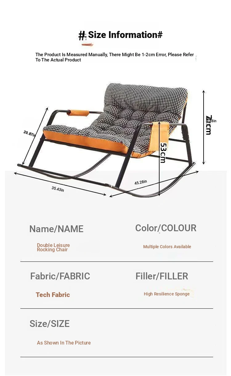 2024 New Double Rocking Chair for Adults - Comfortable Lounge Sofa for Relaxation, Perfect for Balcony and Living Room, Ideal for Napping and Leisure Time