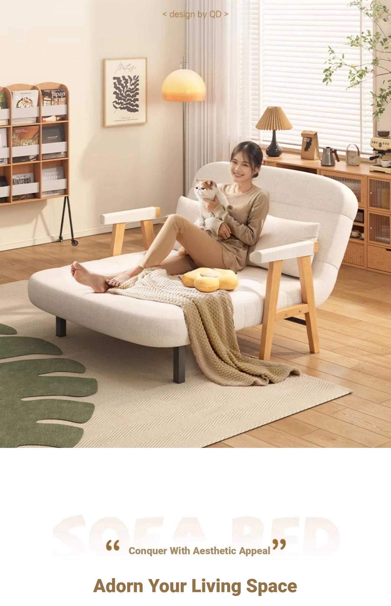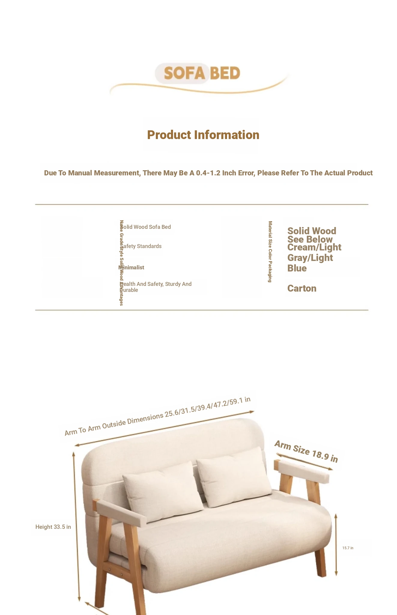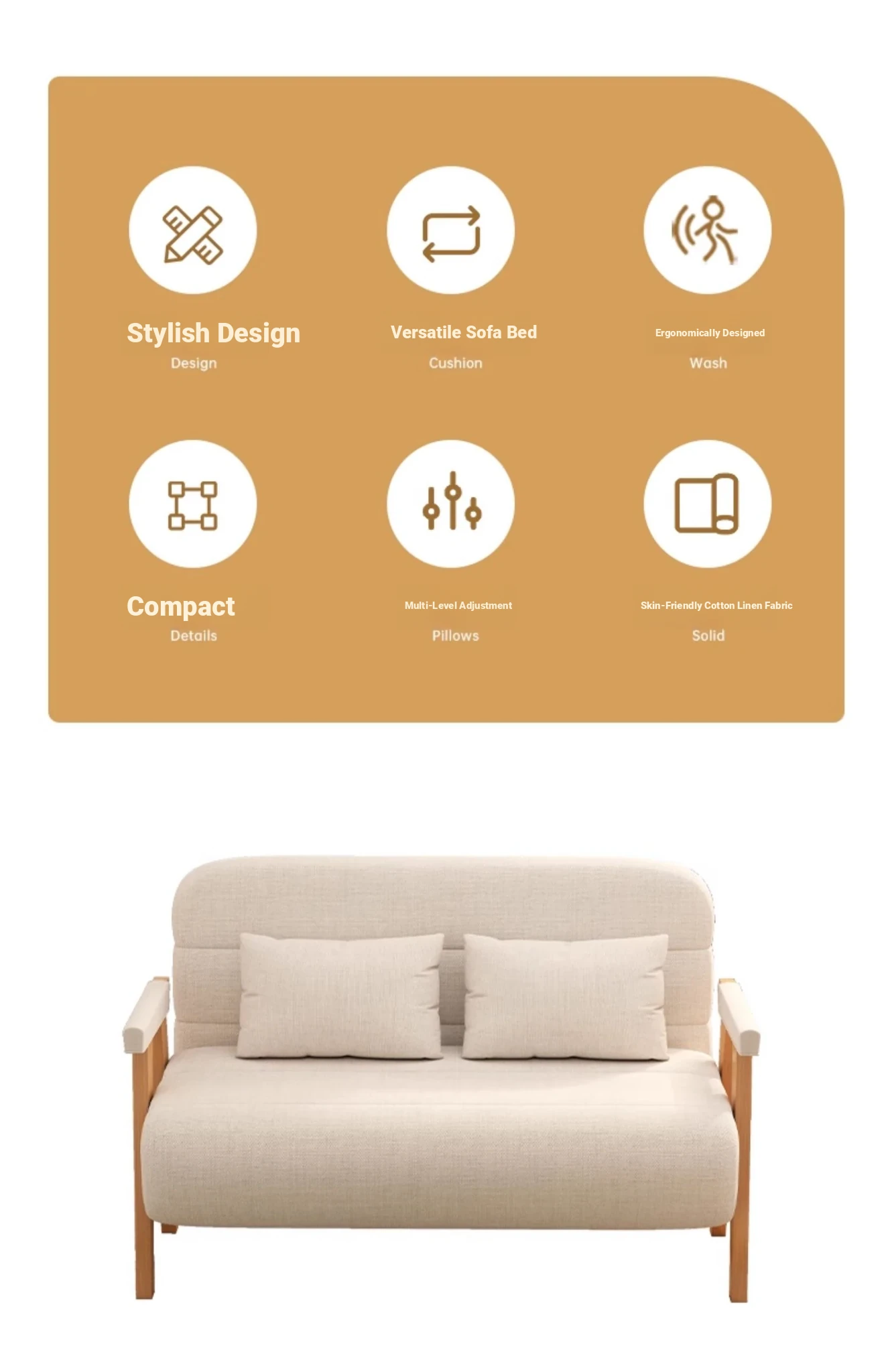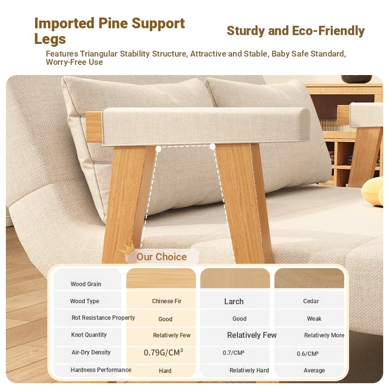 2025 New Compact Foldable Solid Wood Sofa Bed - Space-Saving Design for Small Living Rooms, Perfect for Single Use and Balcony Relaxation
