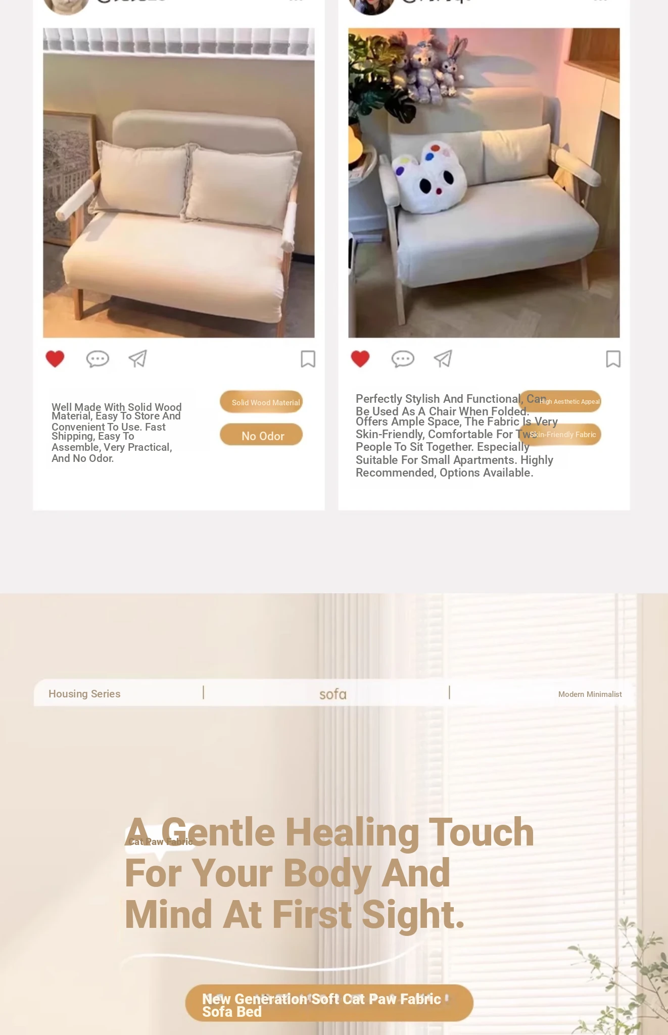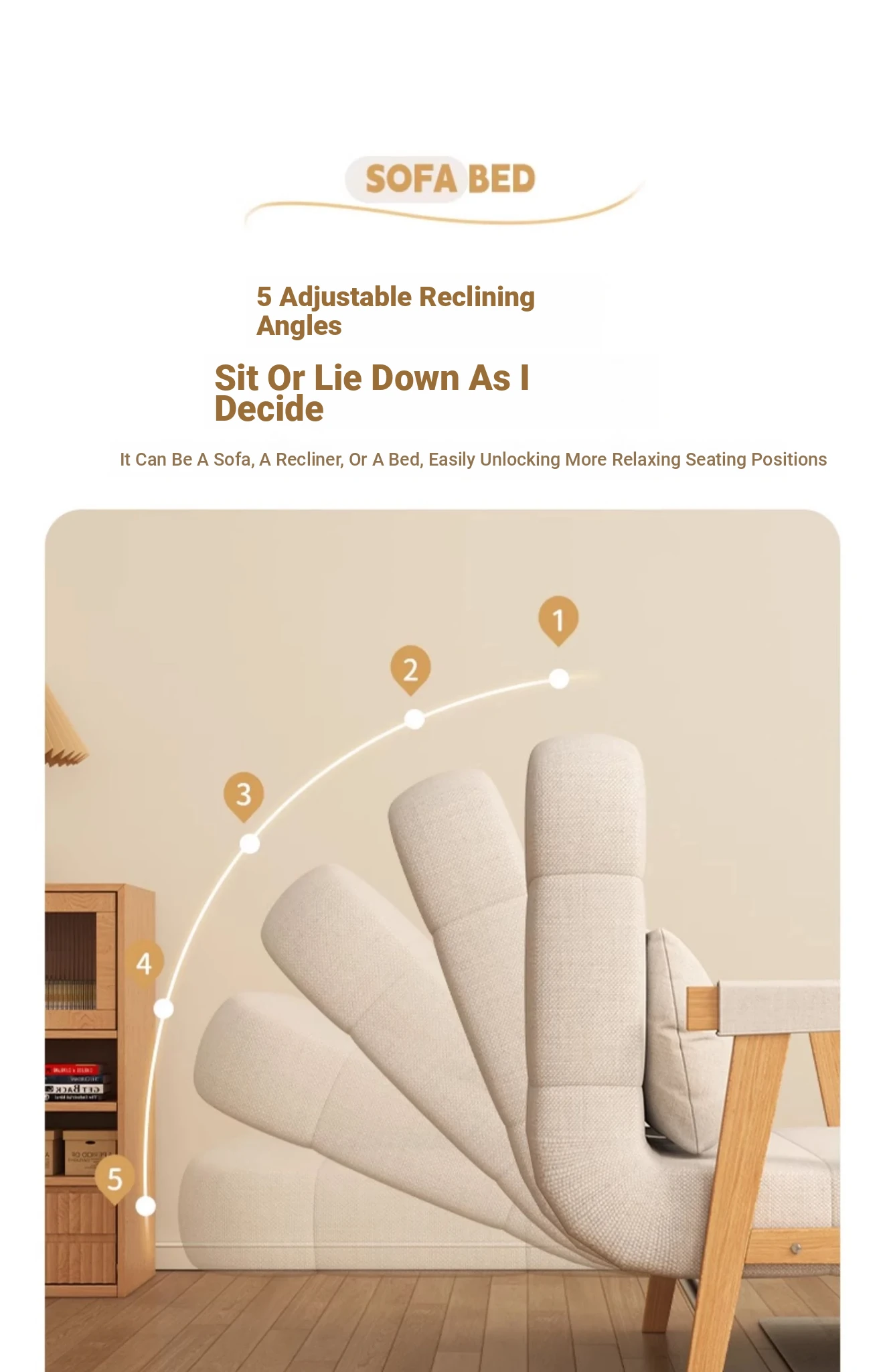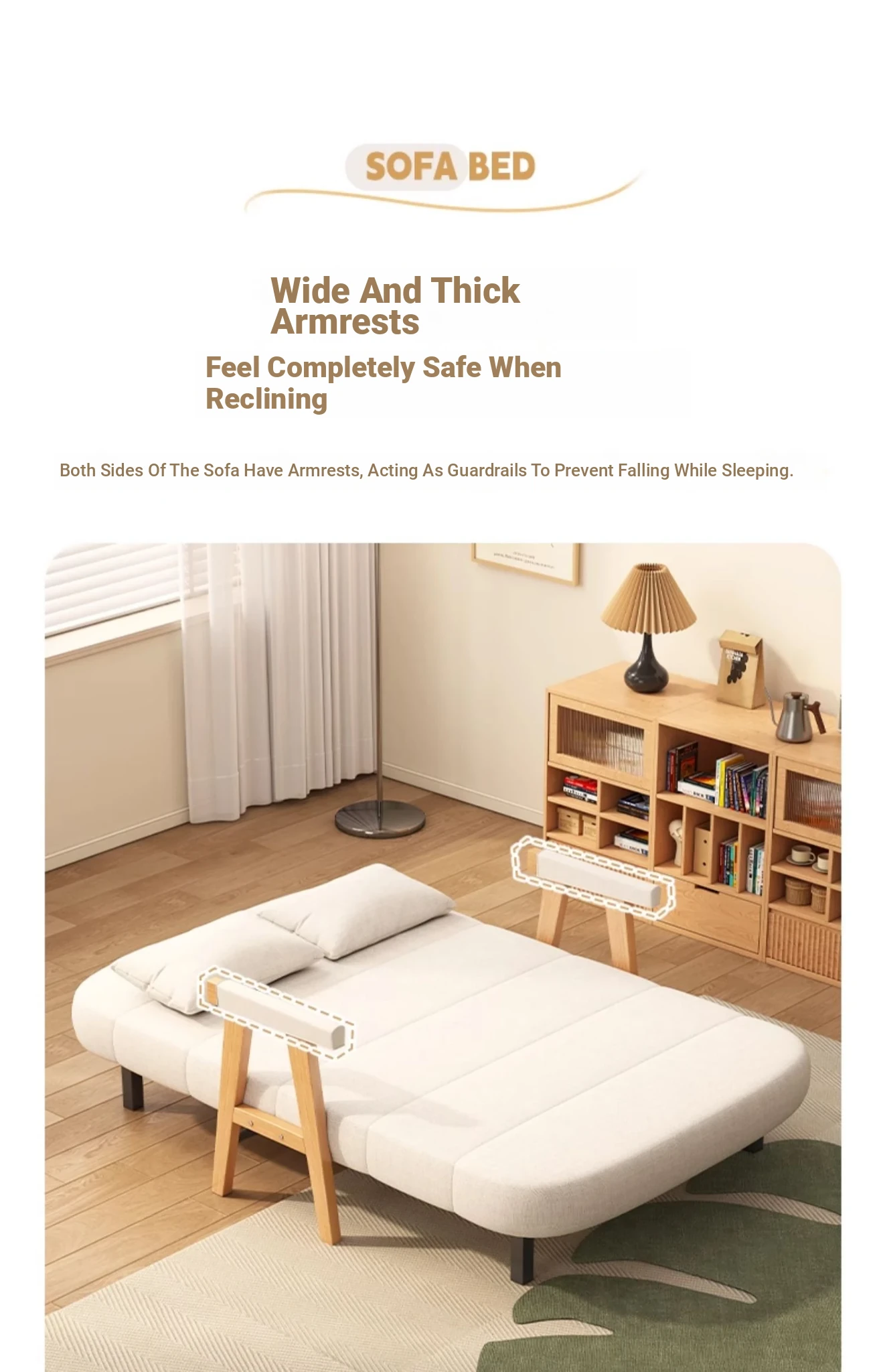 2025 New Compact Foldable Solid Wood Sofa Bed - Space-Saving Design for Small Living Rooms, Perfect for Single Use and Balcony Relaxation