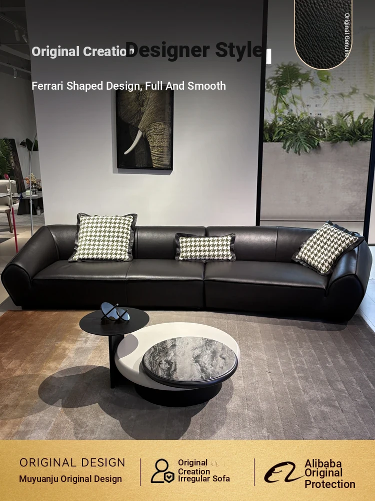 2025 New Designer Corner Sofa – Luxurious Brown Genuine Leather with Unique Shape, Crafted from Top-Grade Full Grain Leather for Your Stylish Living Room