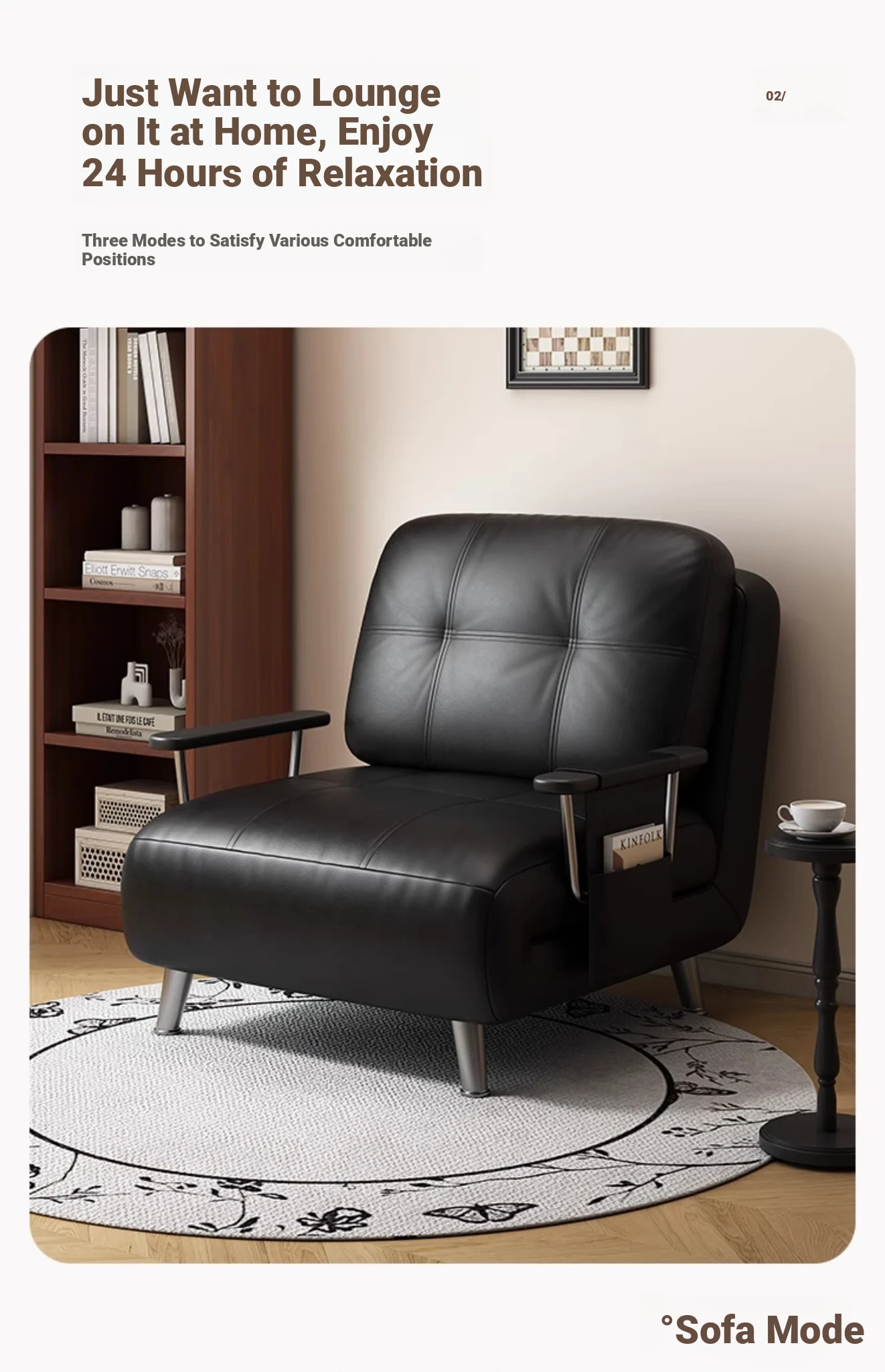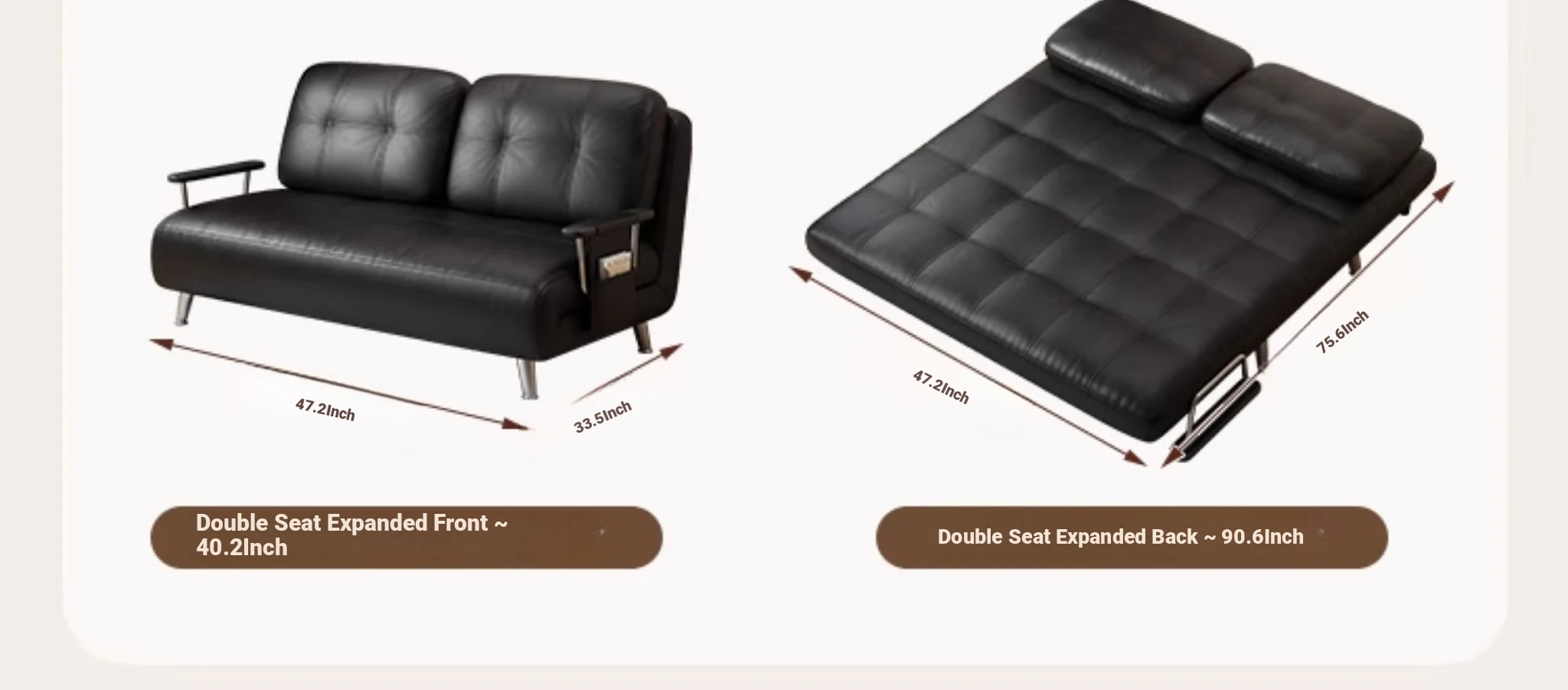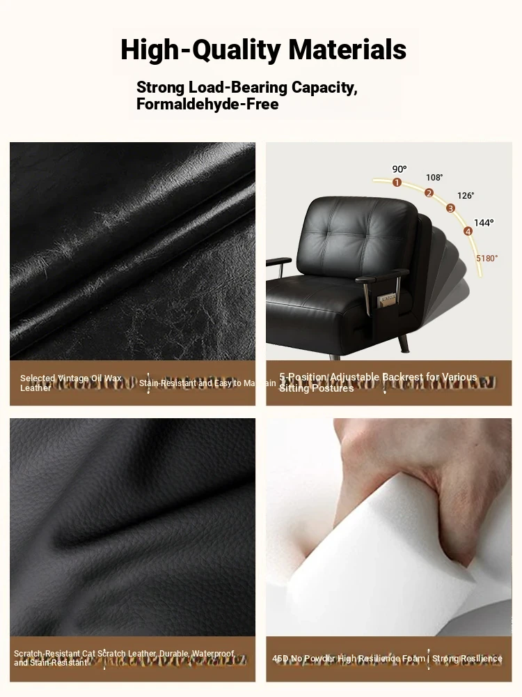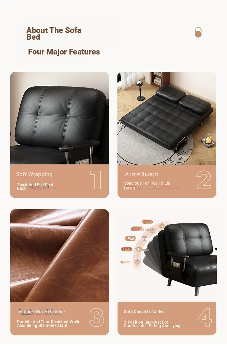 [Select Xingyao Black Oil Wax Skin and Natural Latex] 39.37in Sofa Bed