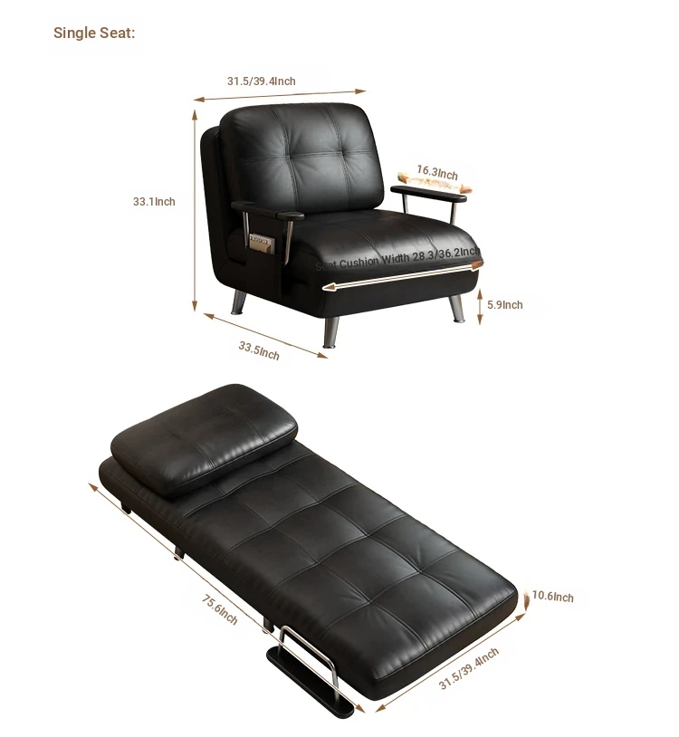 [Select Xingyao Black Oil Wax Skin and Natural Latex] 31.50in Sofa Bed