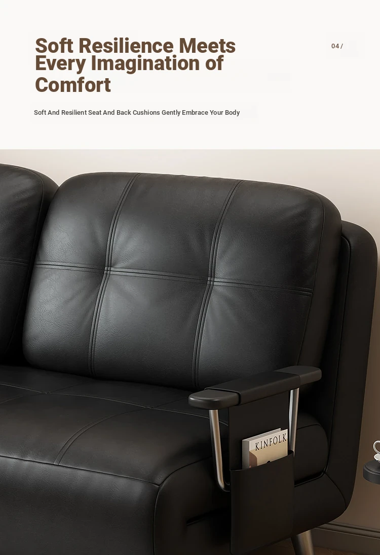 [Select Xingyao Black Oil Wax Skin and Powder-Free Sponge] 39.37in Sofa Bed
