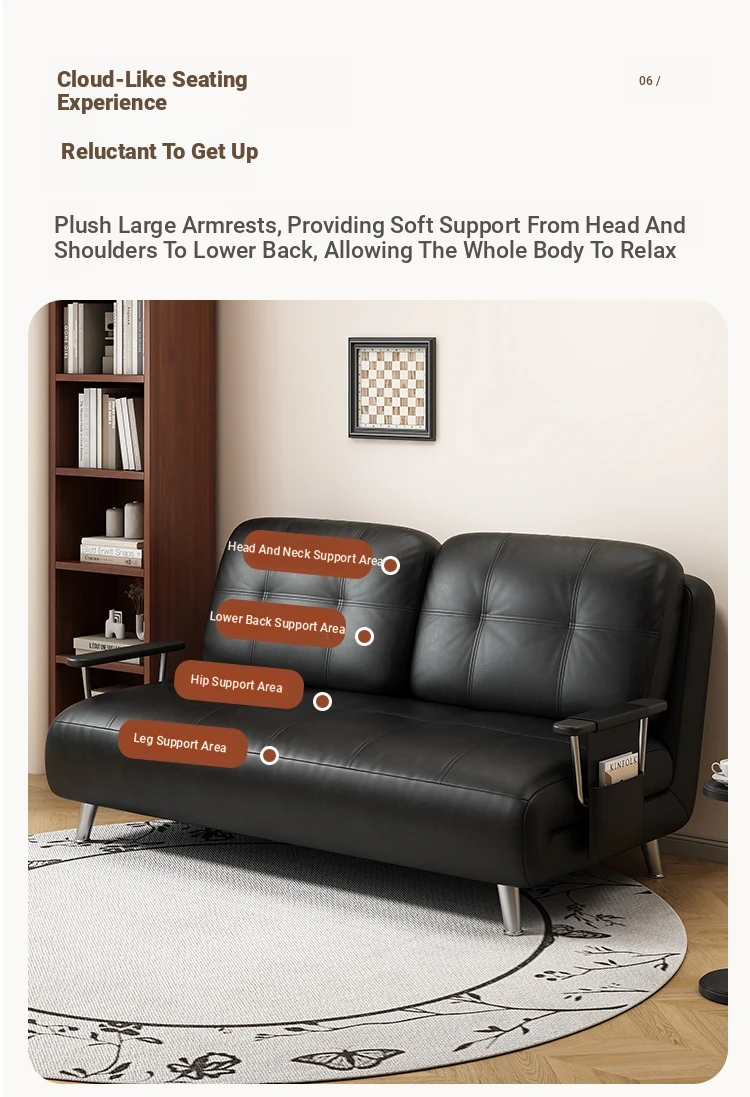[Select Xingyao Black Oil Wax Skin and Natural Latex] 59.06in Sofa Bed