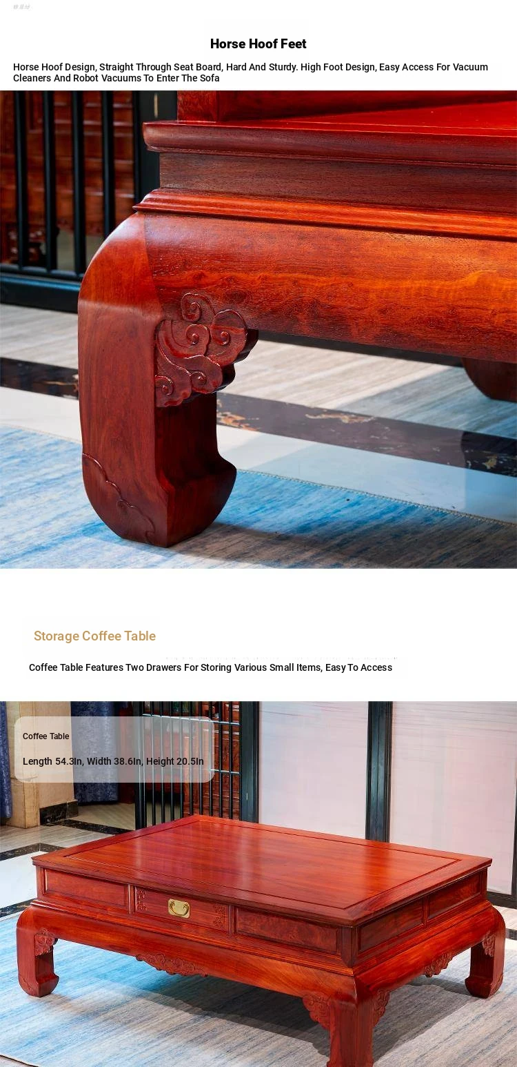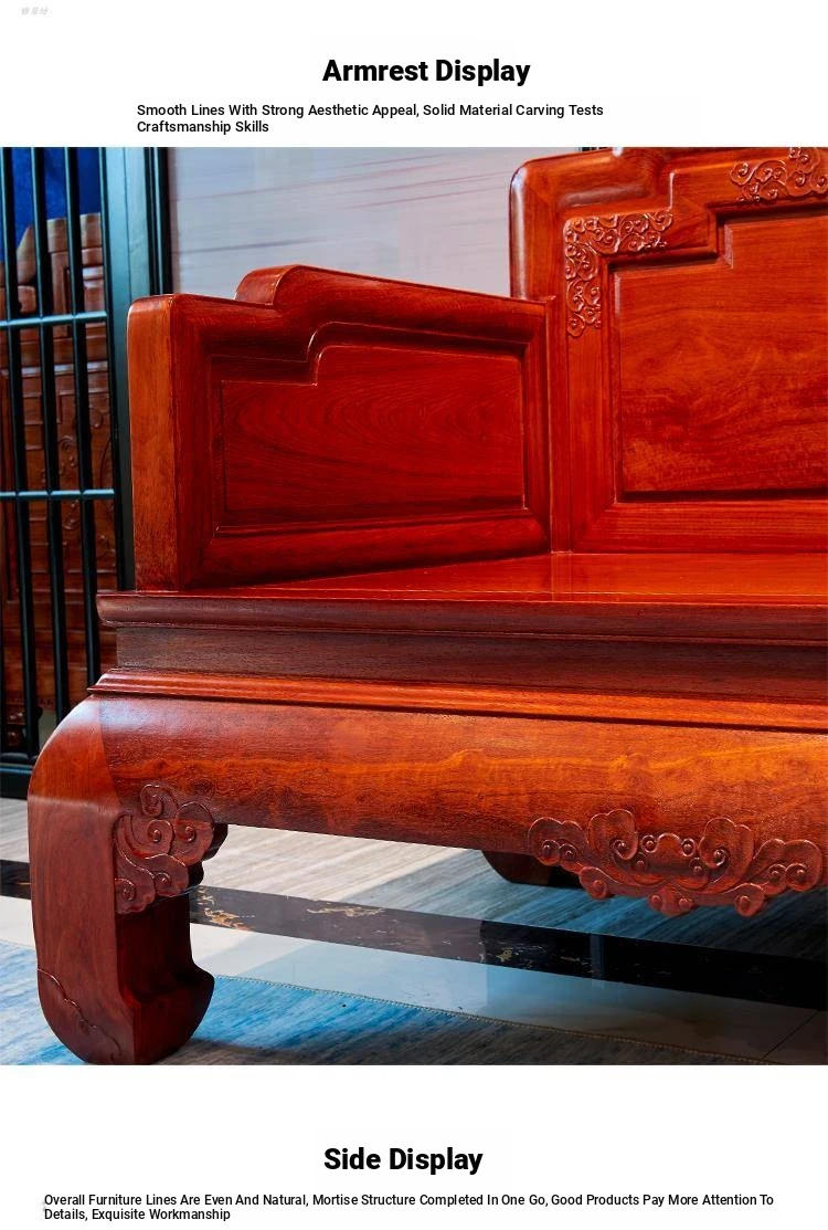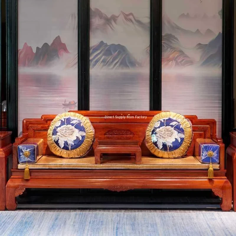 Antique-Style Chinese Red Wood Sofa Set - Elegant Ming and Qing Dynasty Design for Living Room, Crafted from Burmese Rosewood and Dalbergia Wood, Perfect for Adding a Touch of Traditional Luxury to Your Home