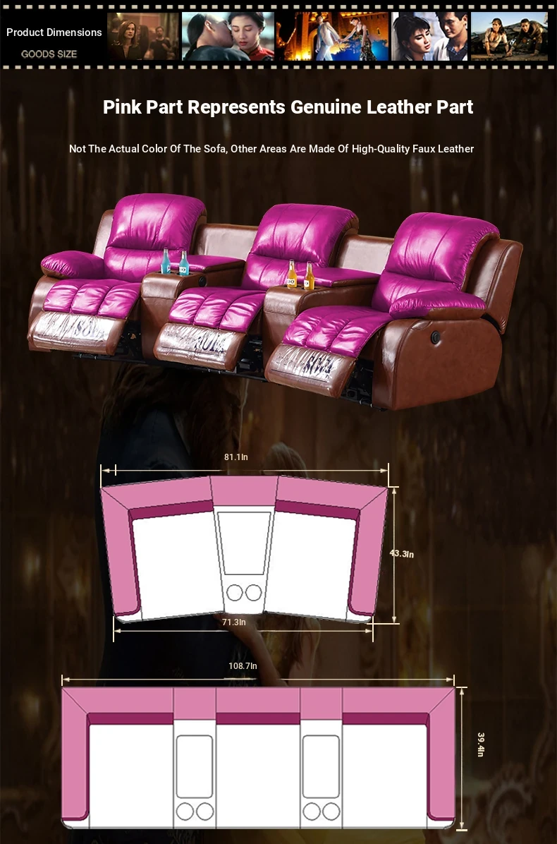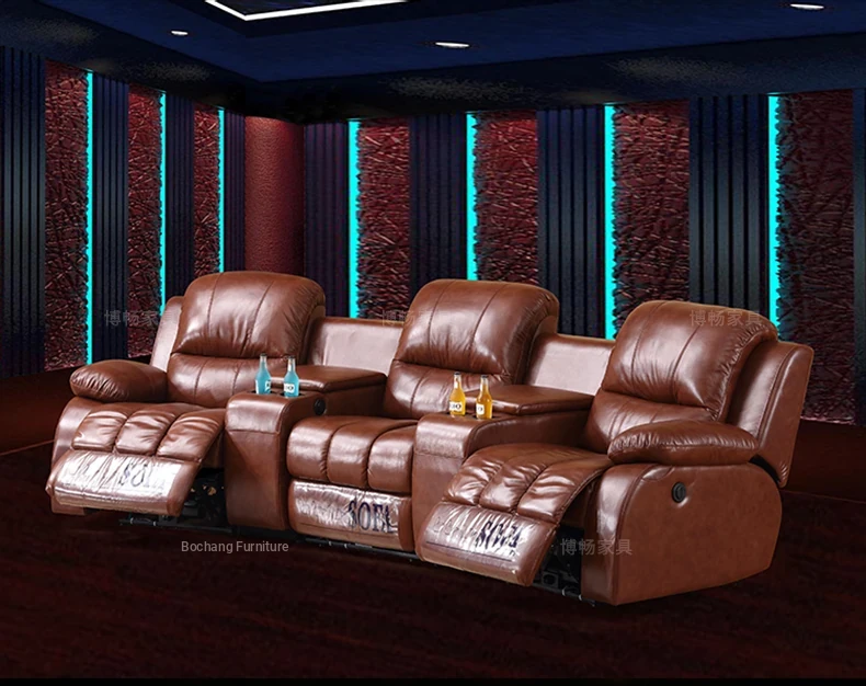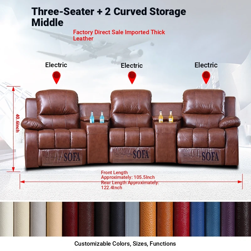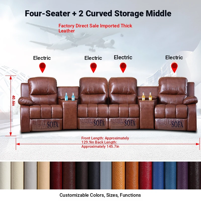 Arc-Shaped Luxury Home Theater Sofa - Premium Leather Electric Recliner for Ultimate Comfort in Your Cinema Experience