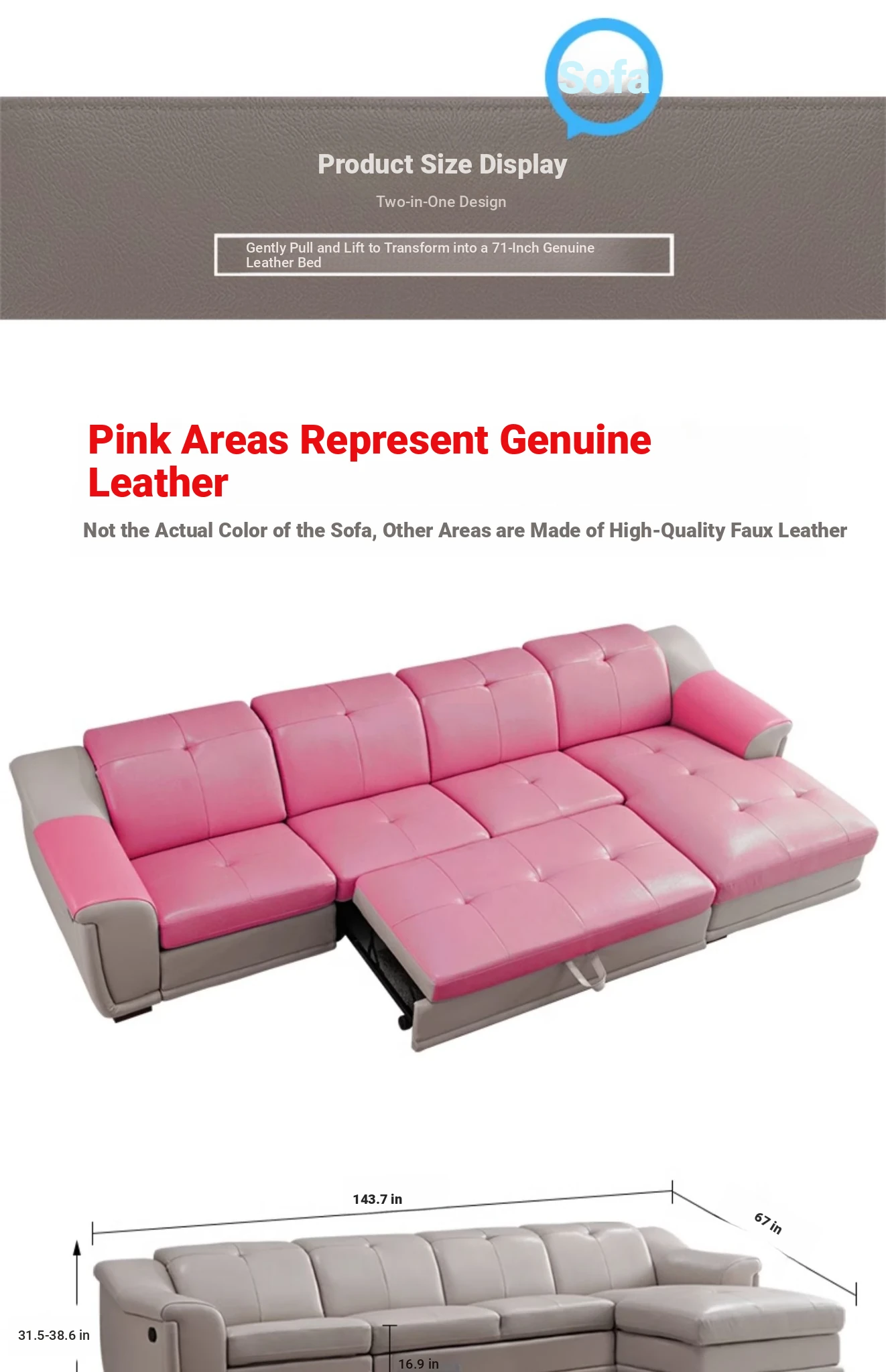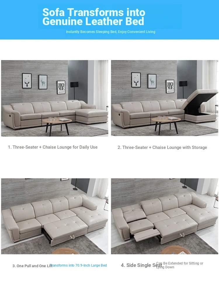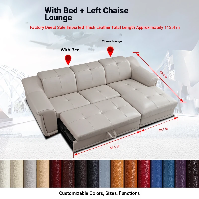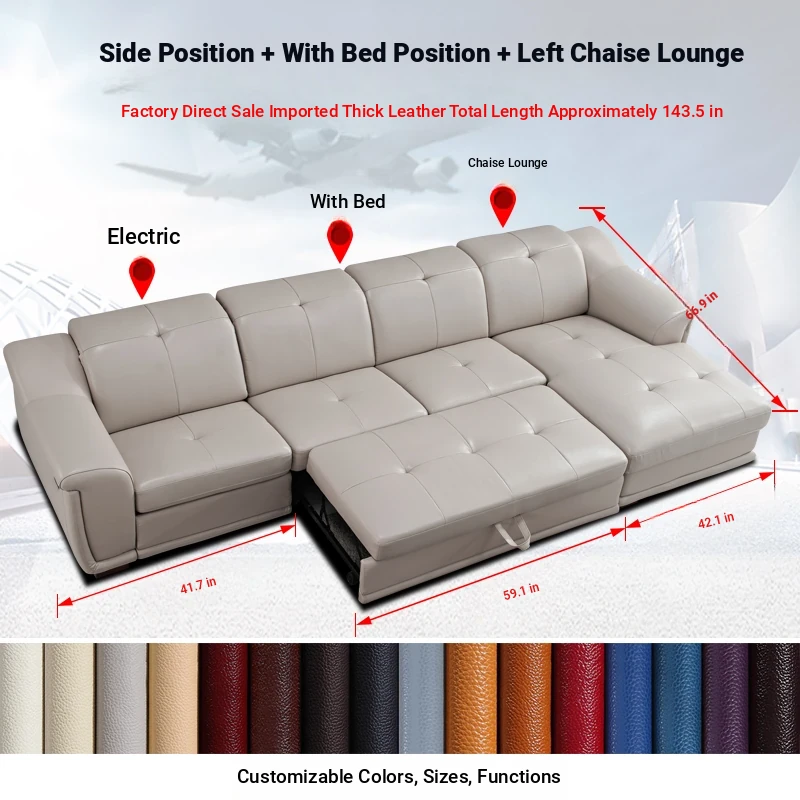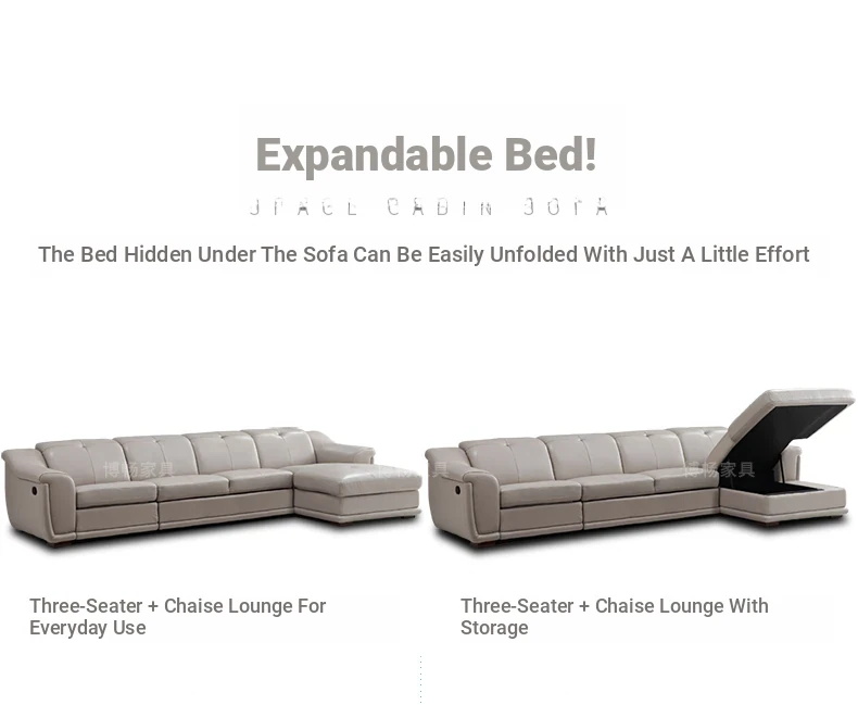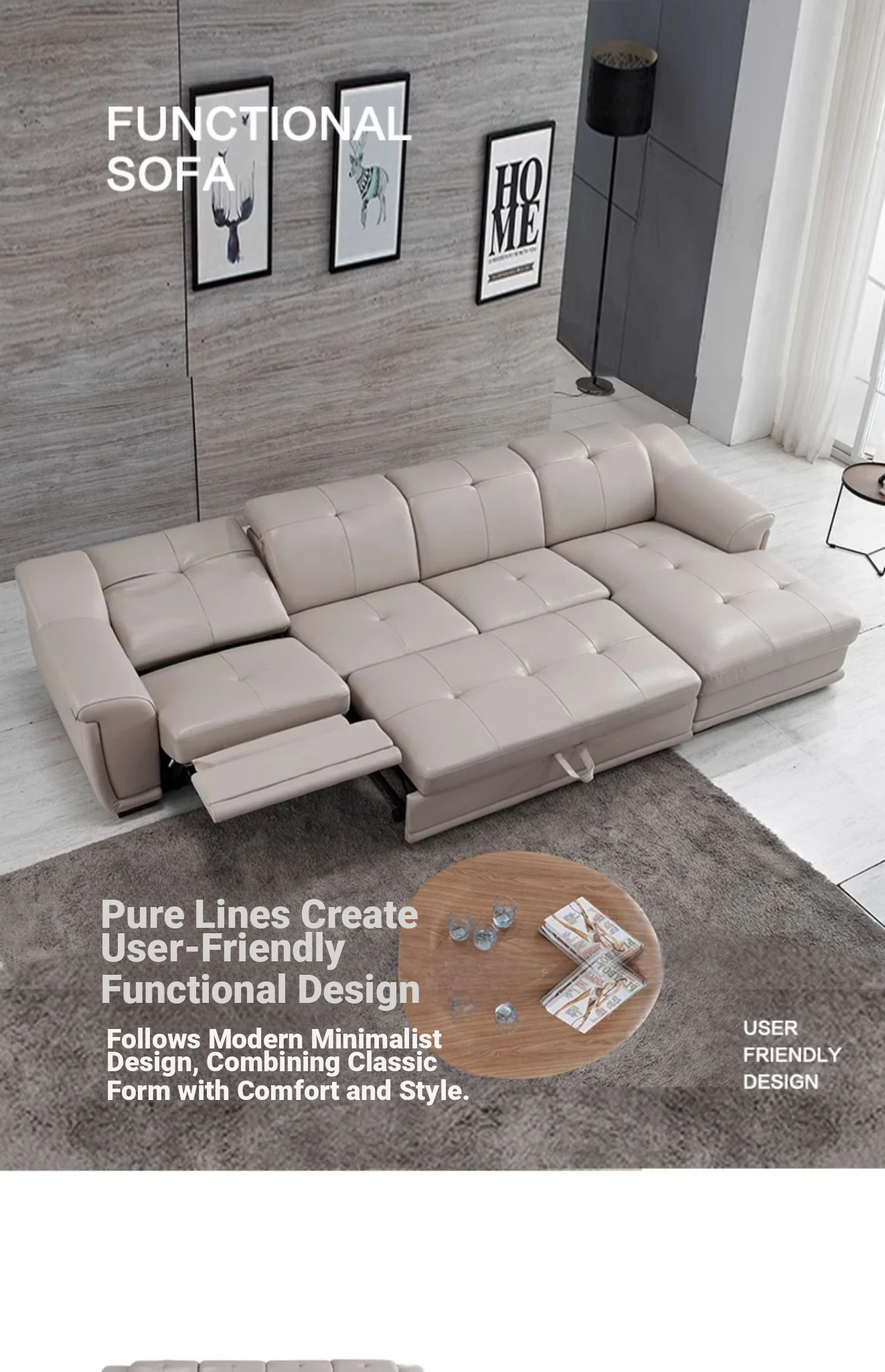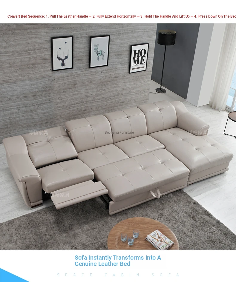 Bocang Multifunctional Genuine Leather Sofa Bed - Modern Minimalist Design for Living Rooms of All Sizes, First-Class Smart Electric Sofa