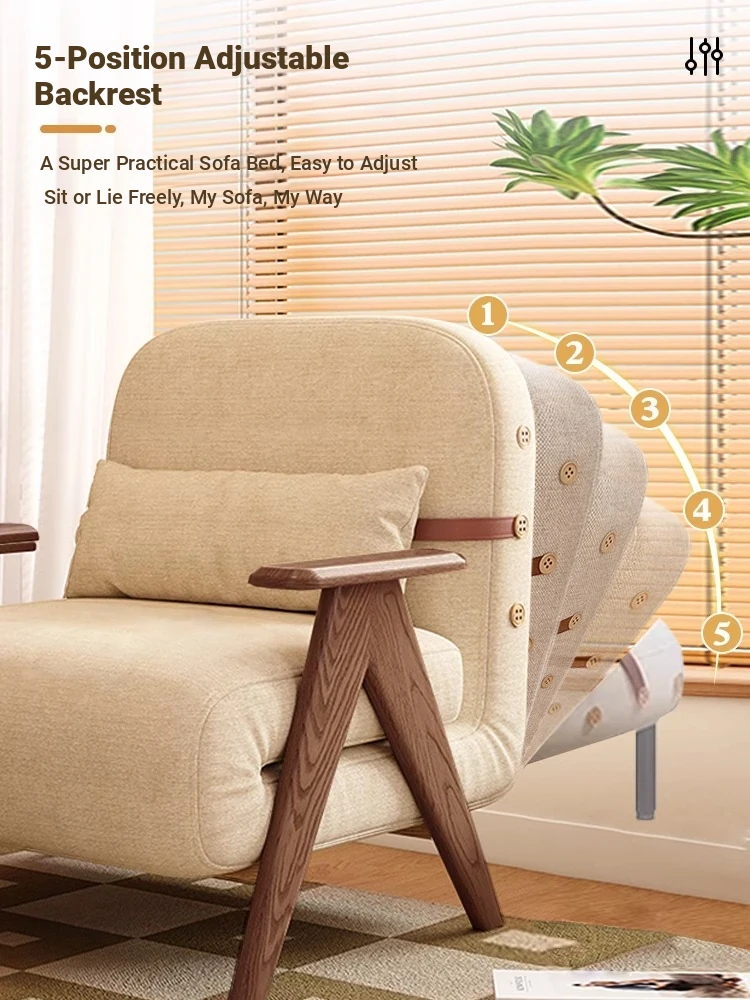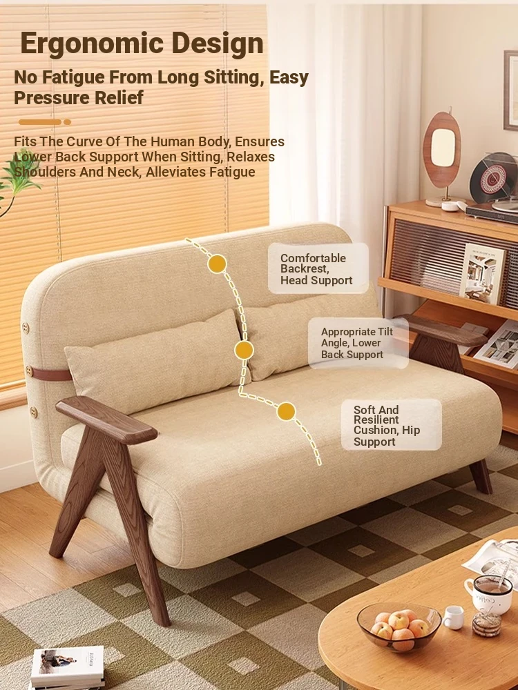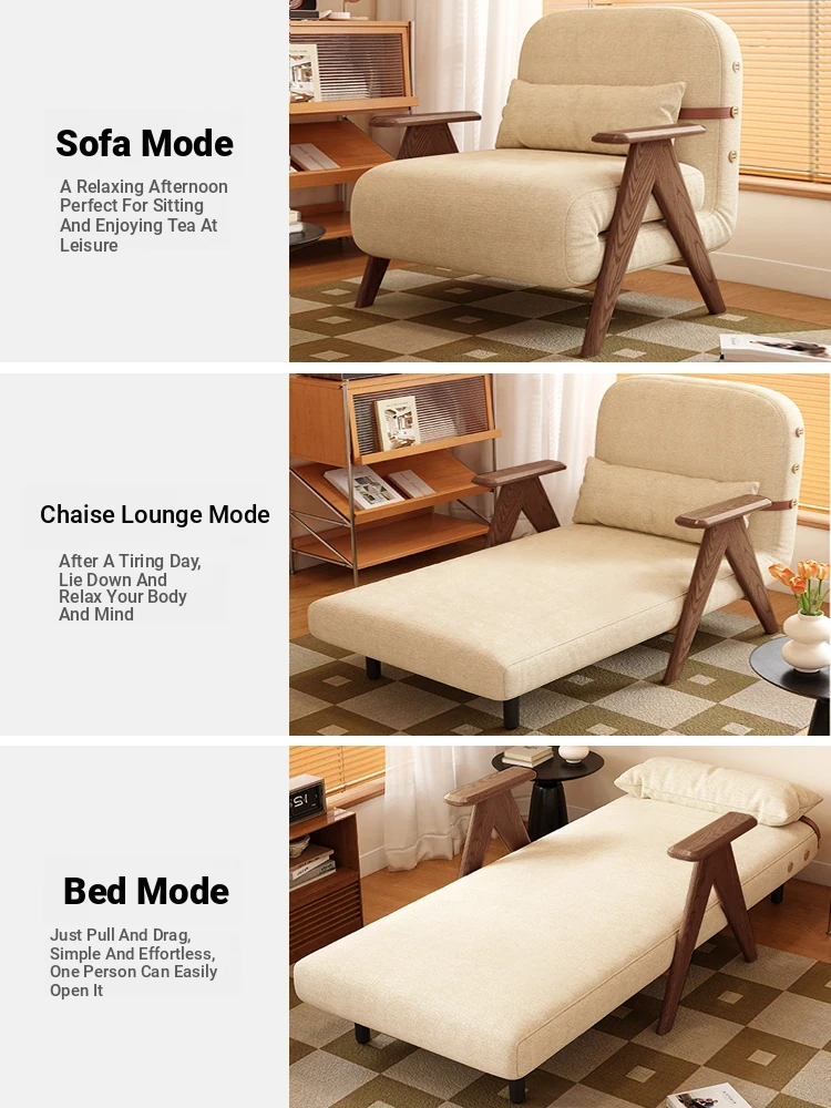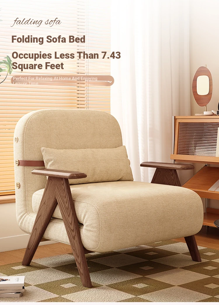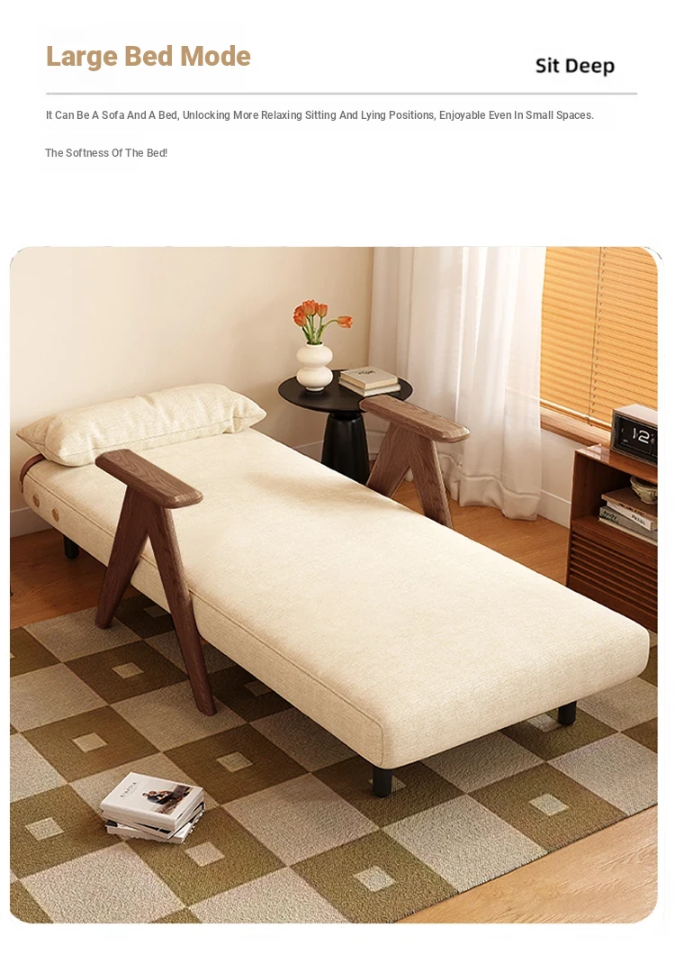 Compact Multifunctional Folding Sofa Bed - Trendy Daybed for Small Spaces, Versatile Solid Wood Design, Easy-to-Fold and Extendable Single Bed