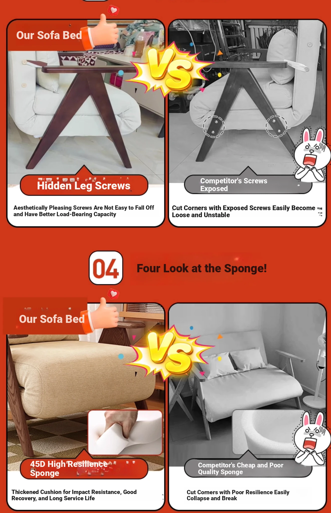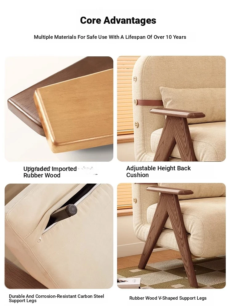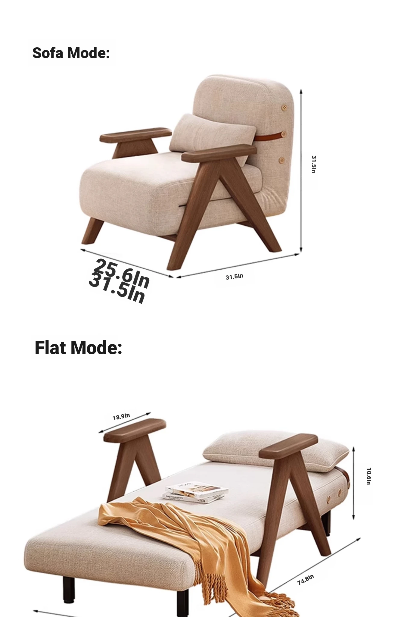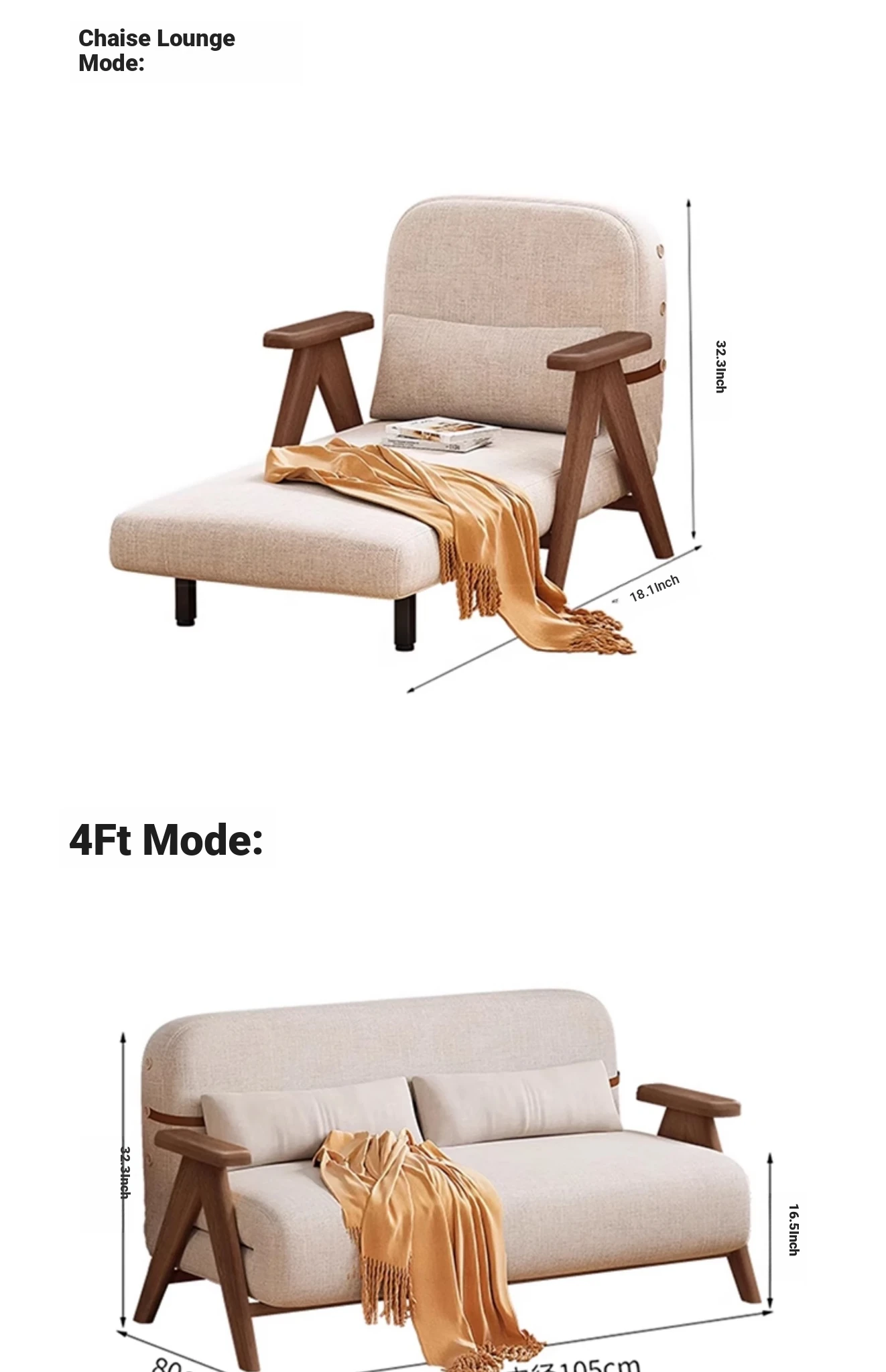 Compact Multifunctional Folding Sofa Bed - Trendy Daybed for Small Spaces, Versatile Solid Wood Design, Easy-to-Fold and Extendable Single Bed