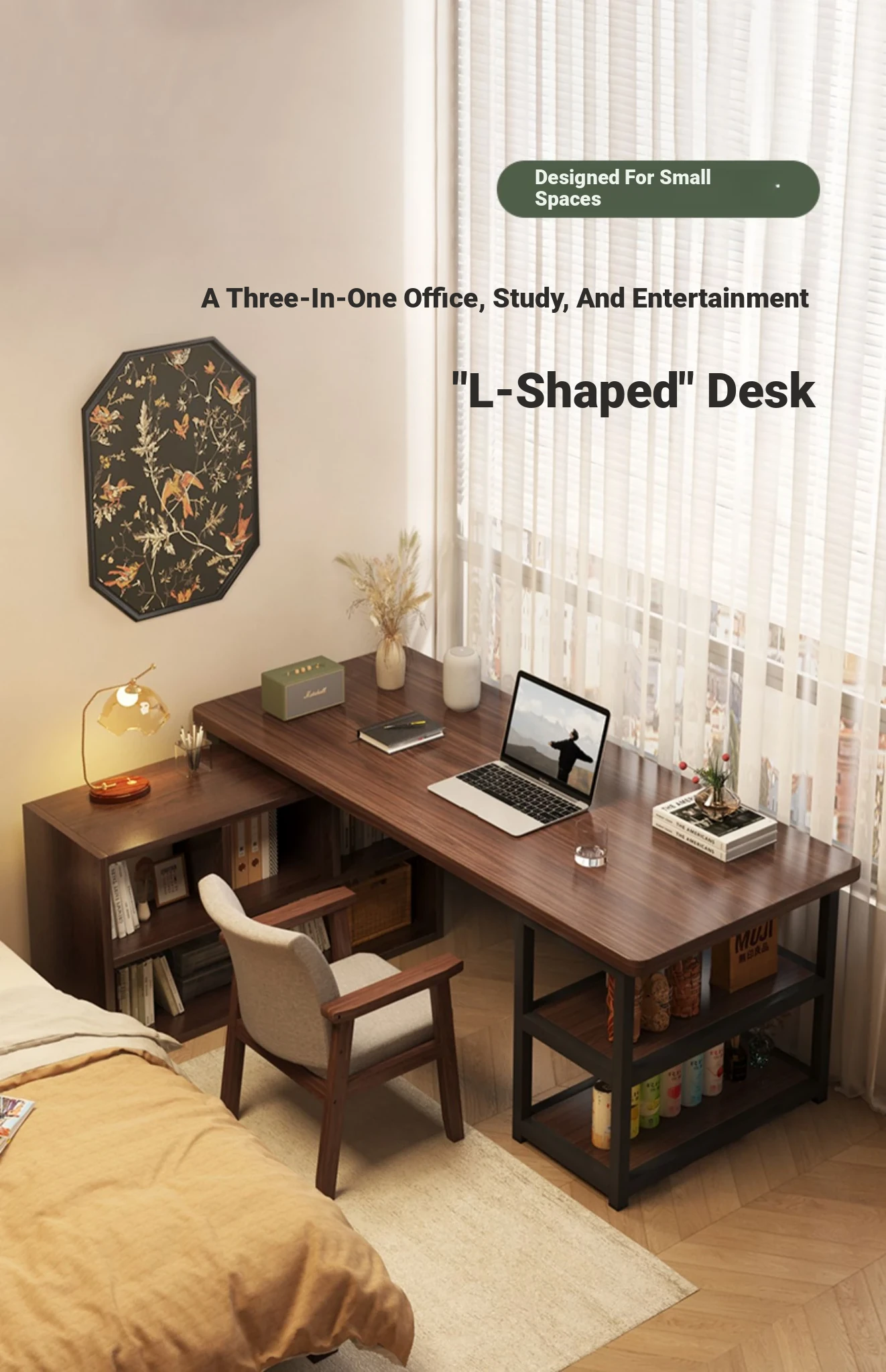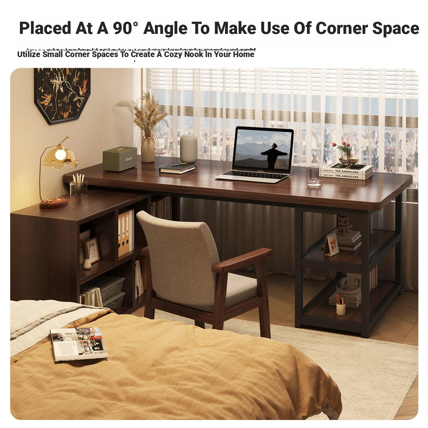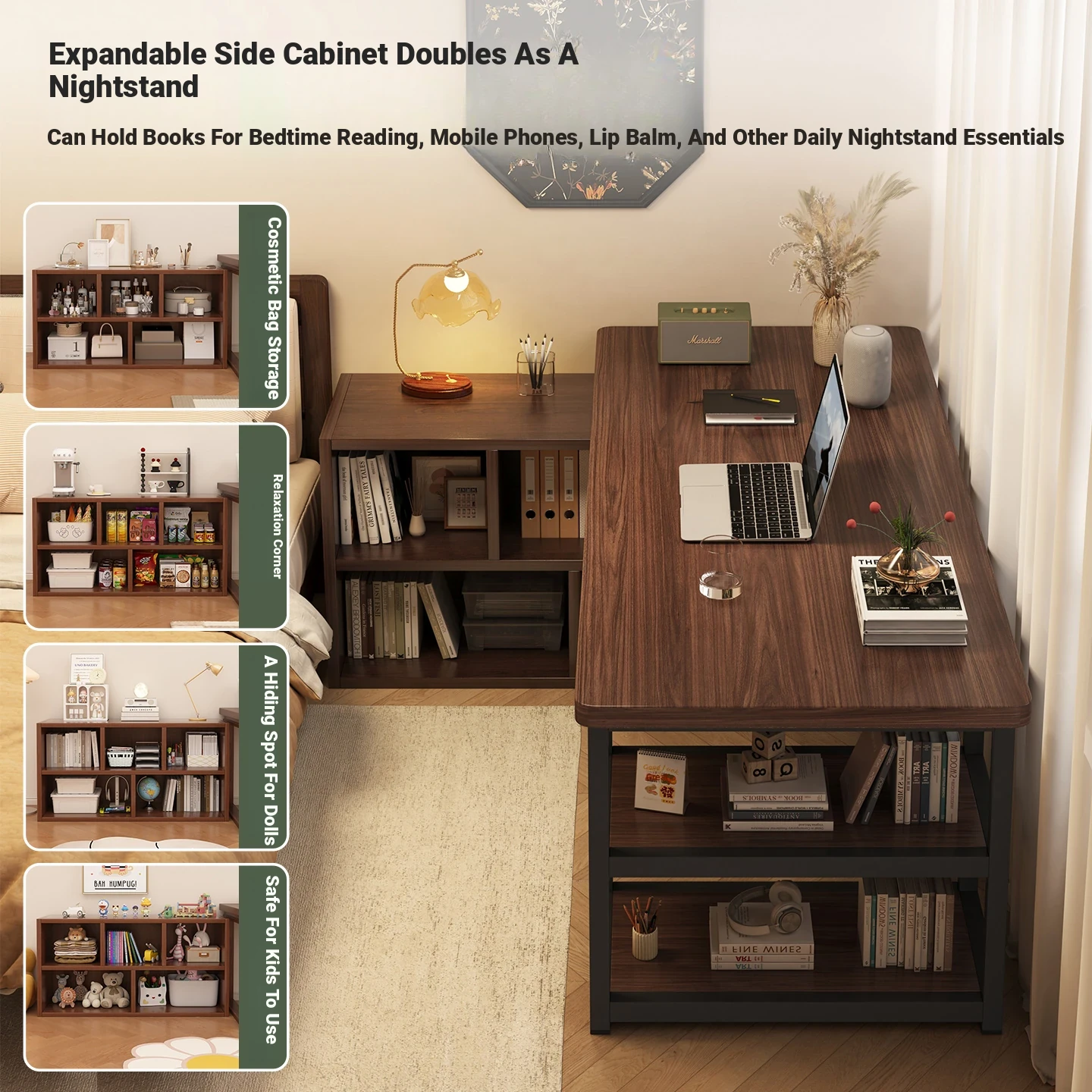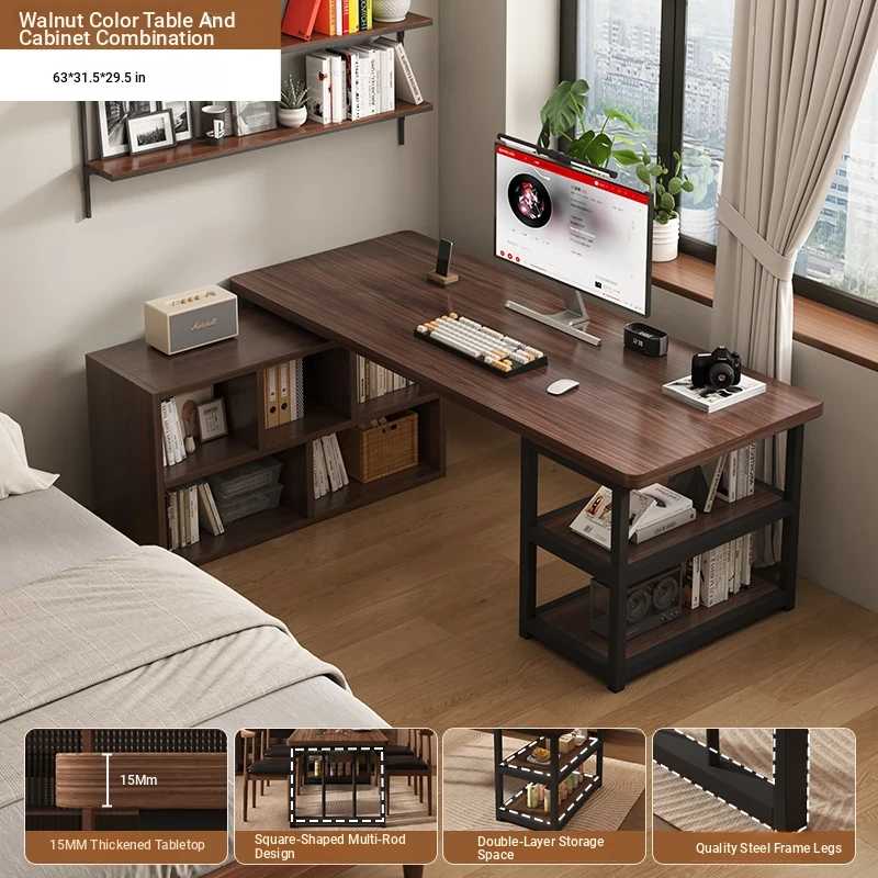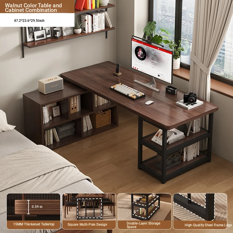 Corner Desk with Bookshelf - Space-Saving Workstation with Storage Cabinet for Home Office, Ideal for Bedrooms and Study Areas