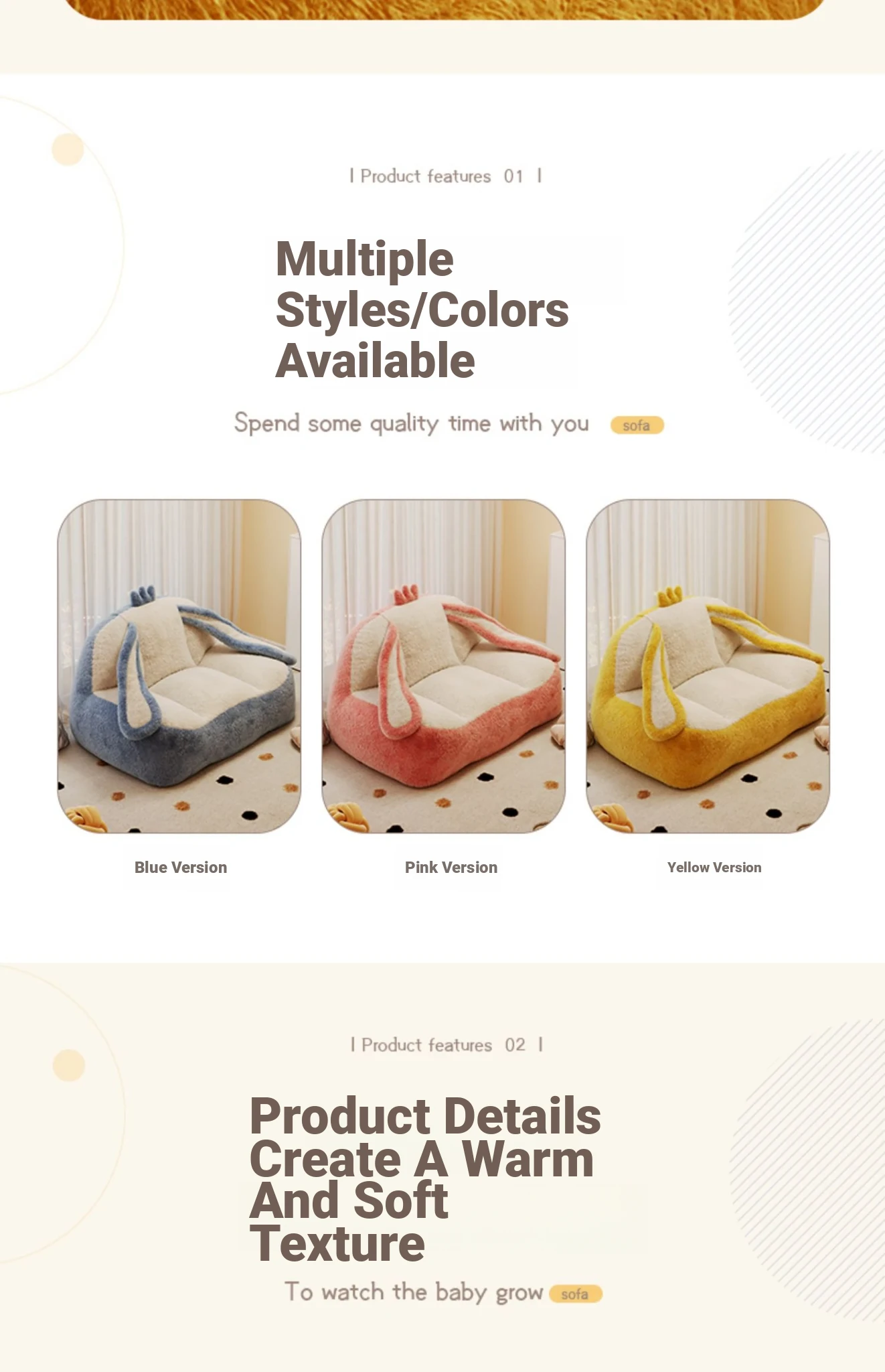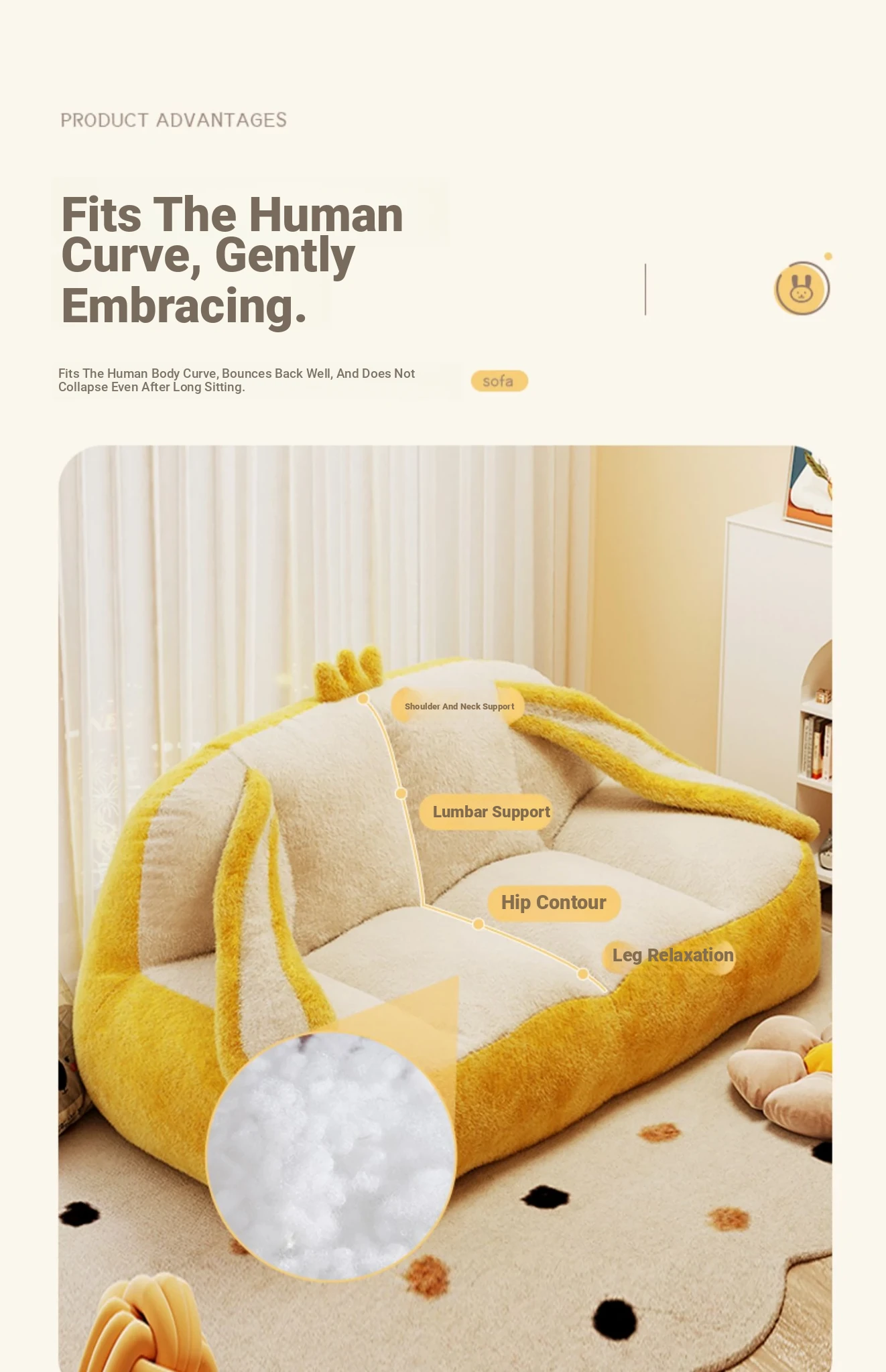 [Clearing Offer] 135/75/70 Yellow-Rabbit Ear Stuffed-Double