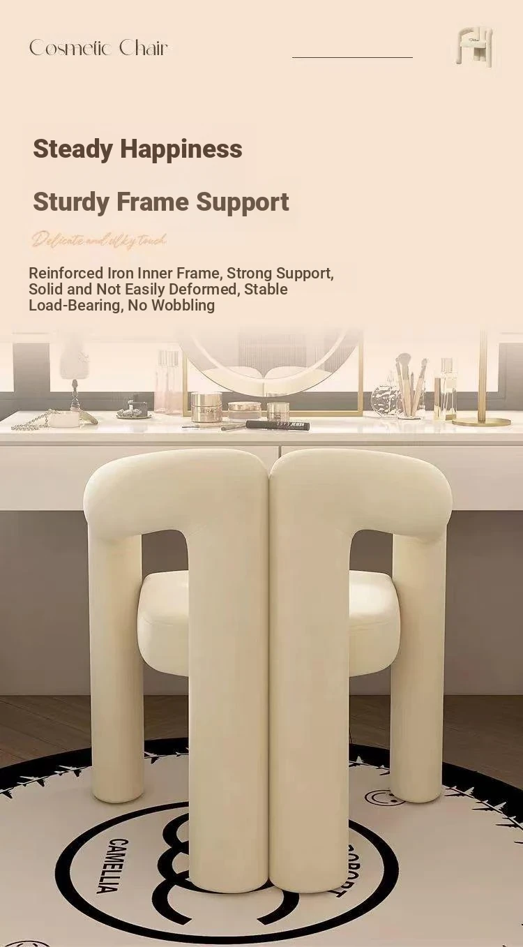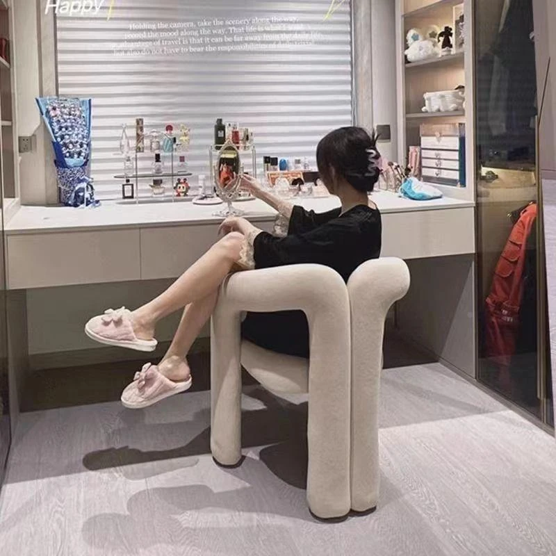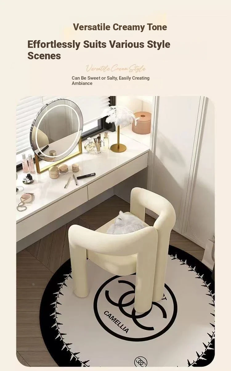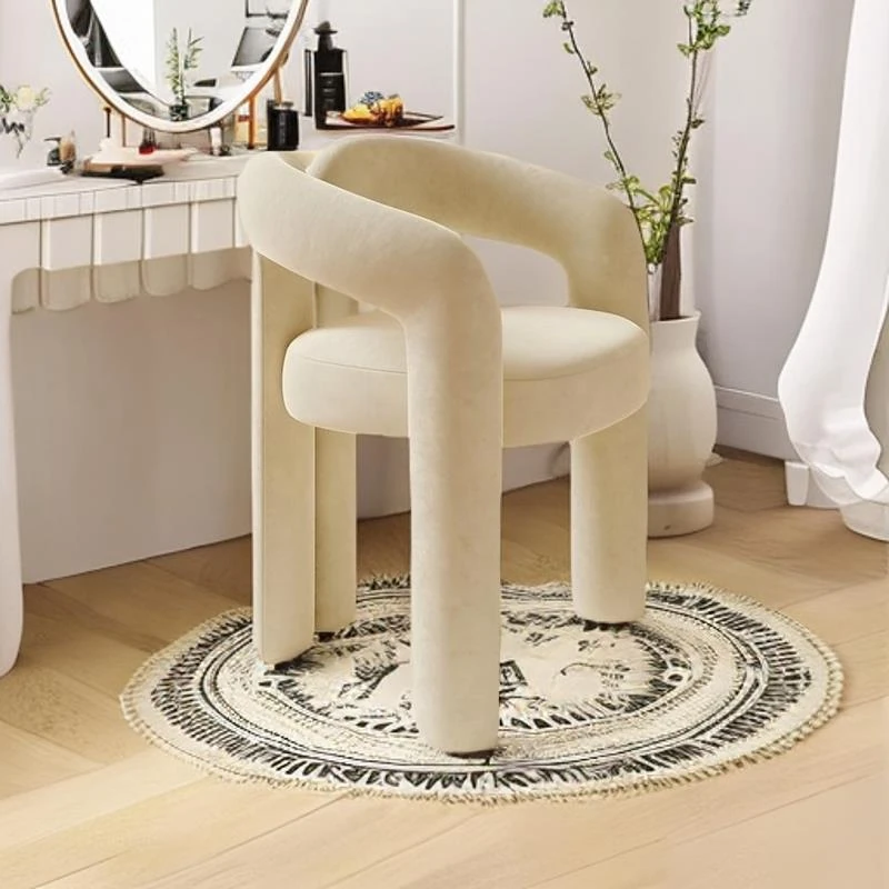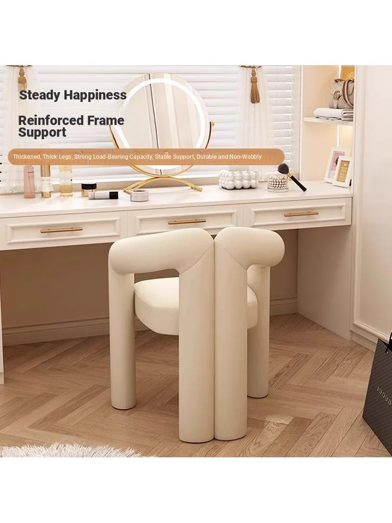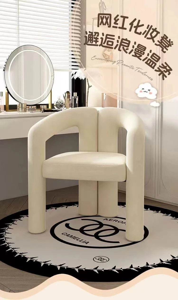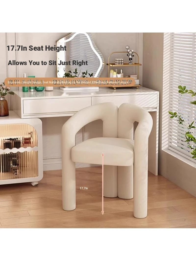 Creamy Aesthetic Home Makeup Chair - Elegant Vanity Stool for Nail Salons, Minimalist Design, High-End Feel, Perfect for Bedrooms, Trendy Single Leisure Chair