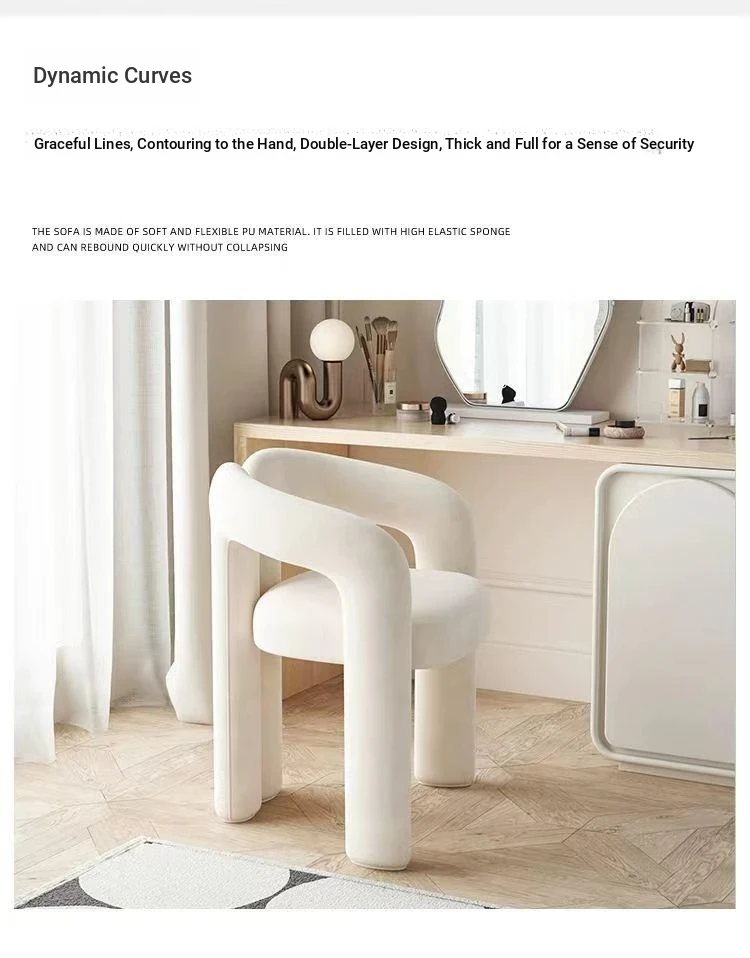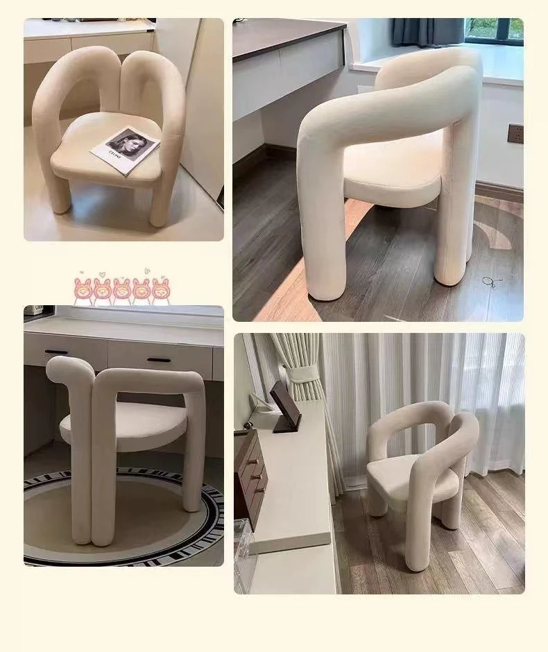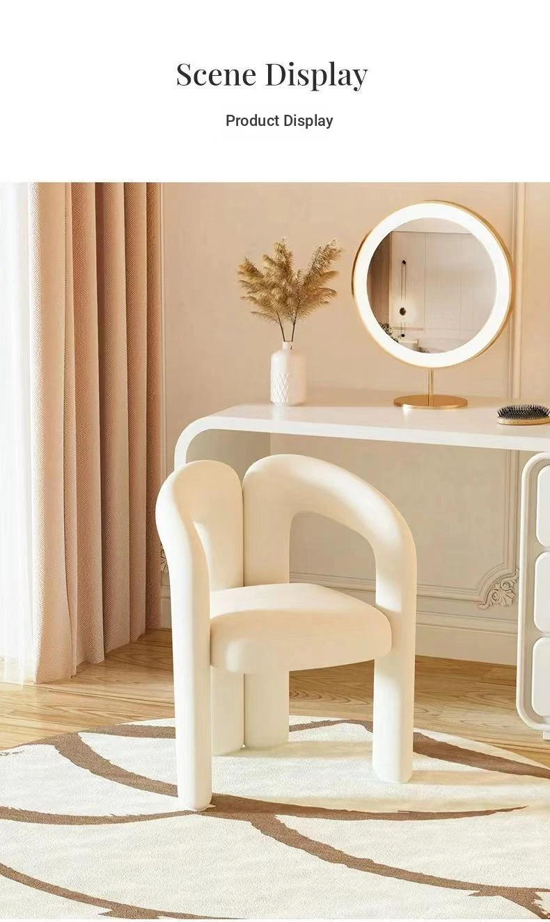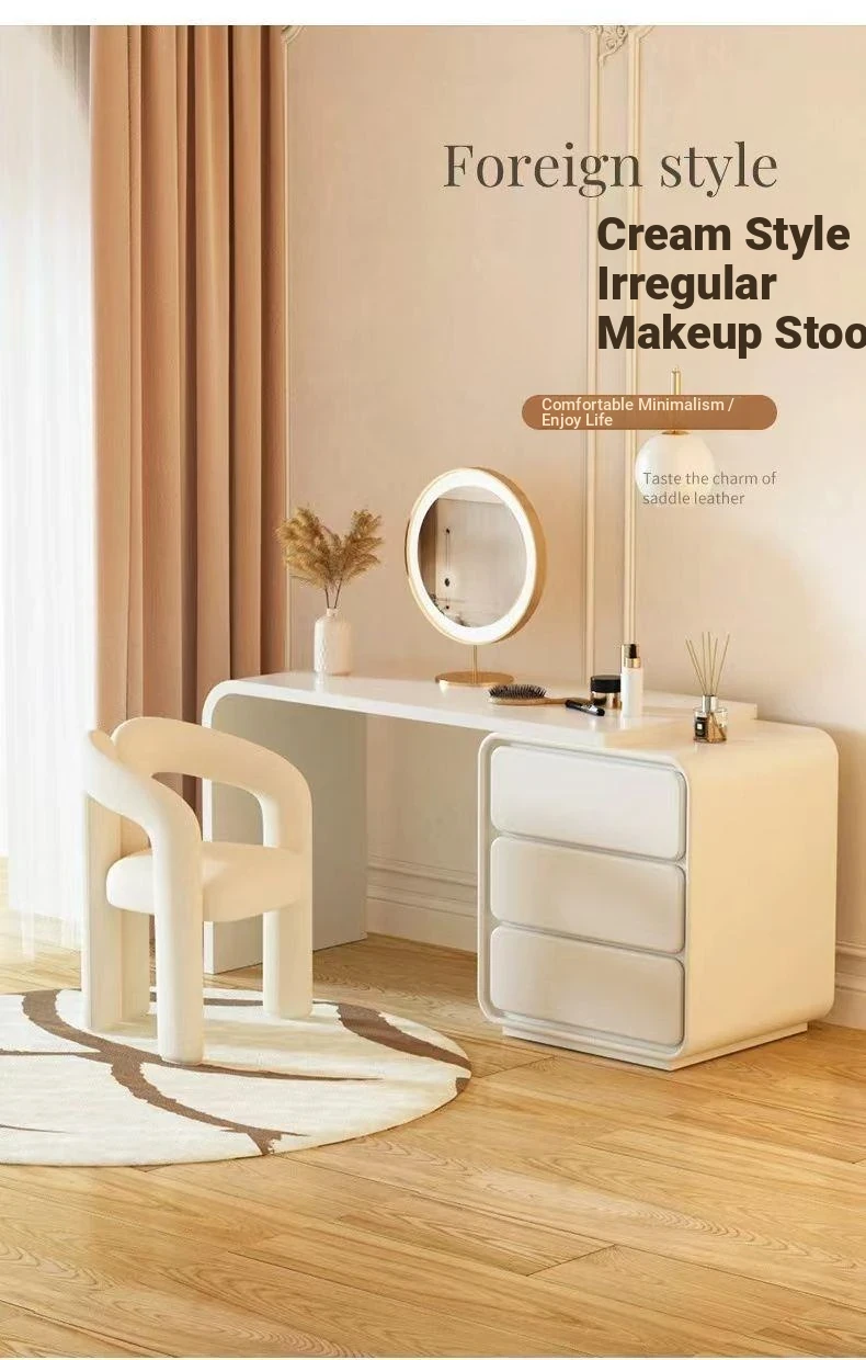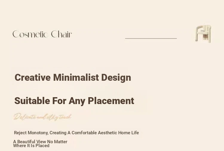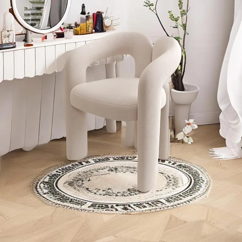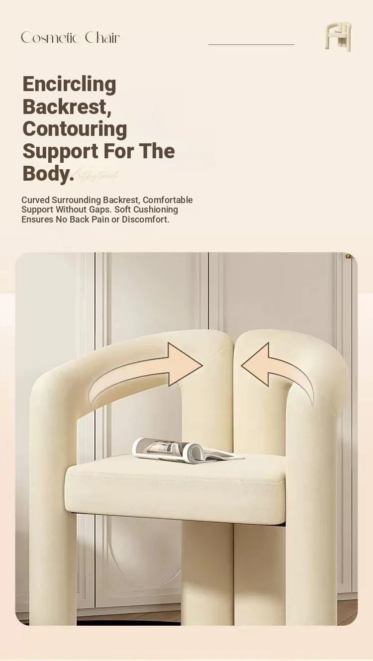 Creamy Aesthetic Home Makeup Chair - Elegant Vanity Stool for Nail Salons, Minimalist Design, High-End Feel, Perfect for Bedrooms, Trendy Single Leisure Chair
