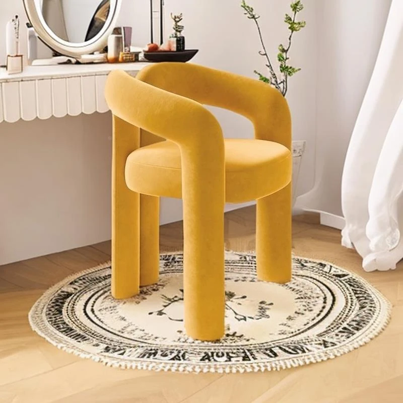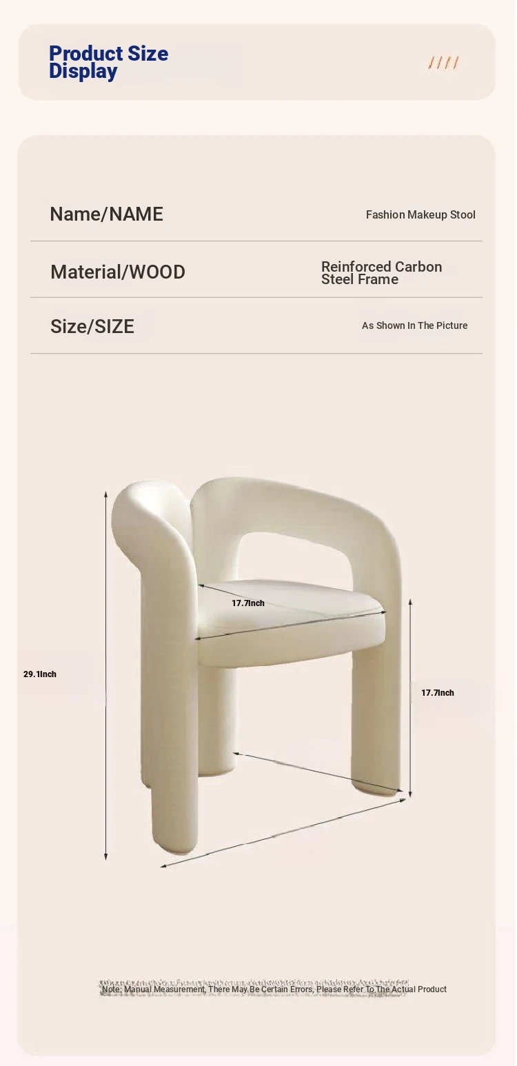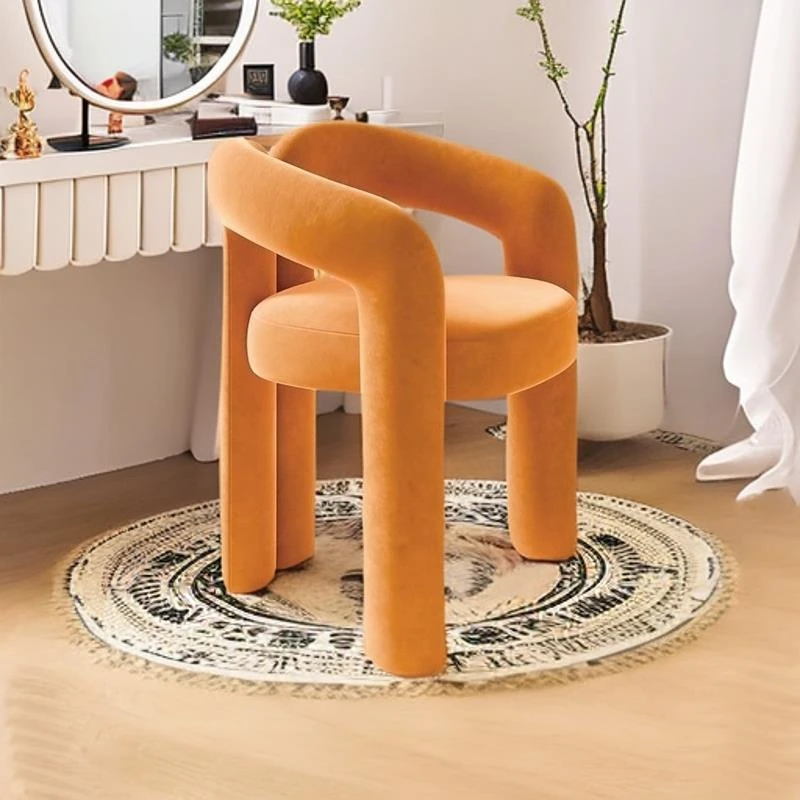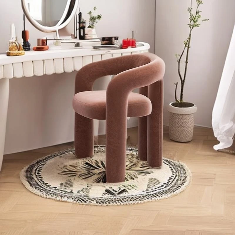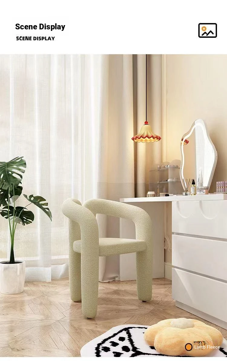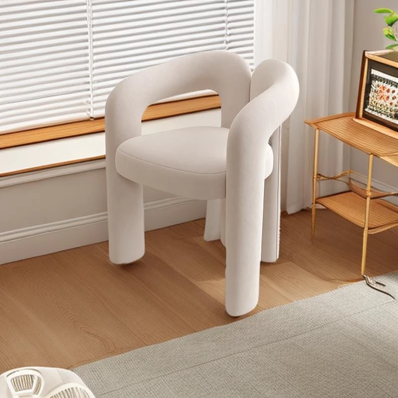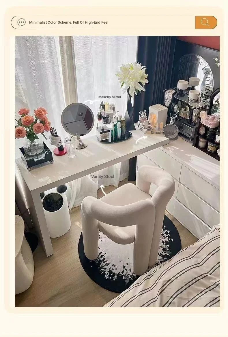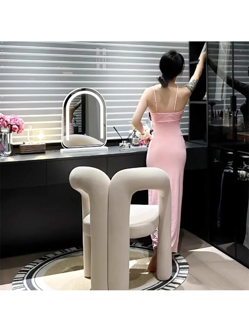 Creamy Aesthetic Home Makeup Chair - Elegant Vanity Stool for Nail Salons, Minimalist Design, High-End Feel, Perfect for Bedrooms, Trendy Single Leisure Chair