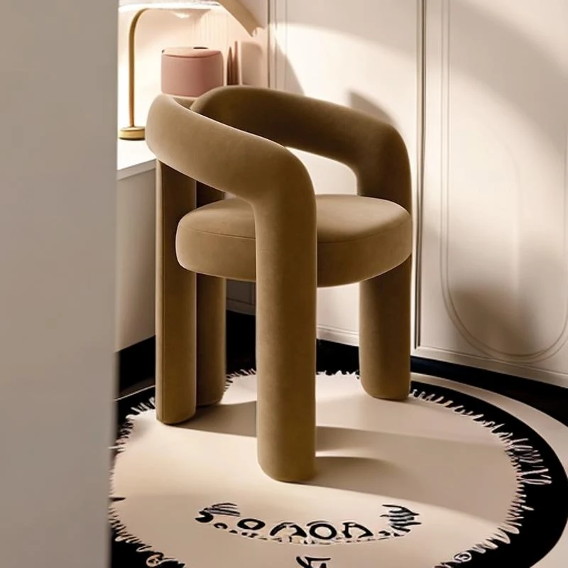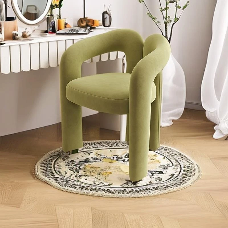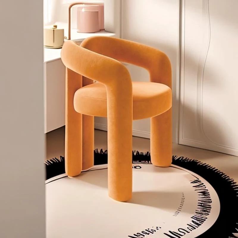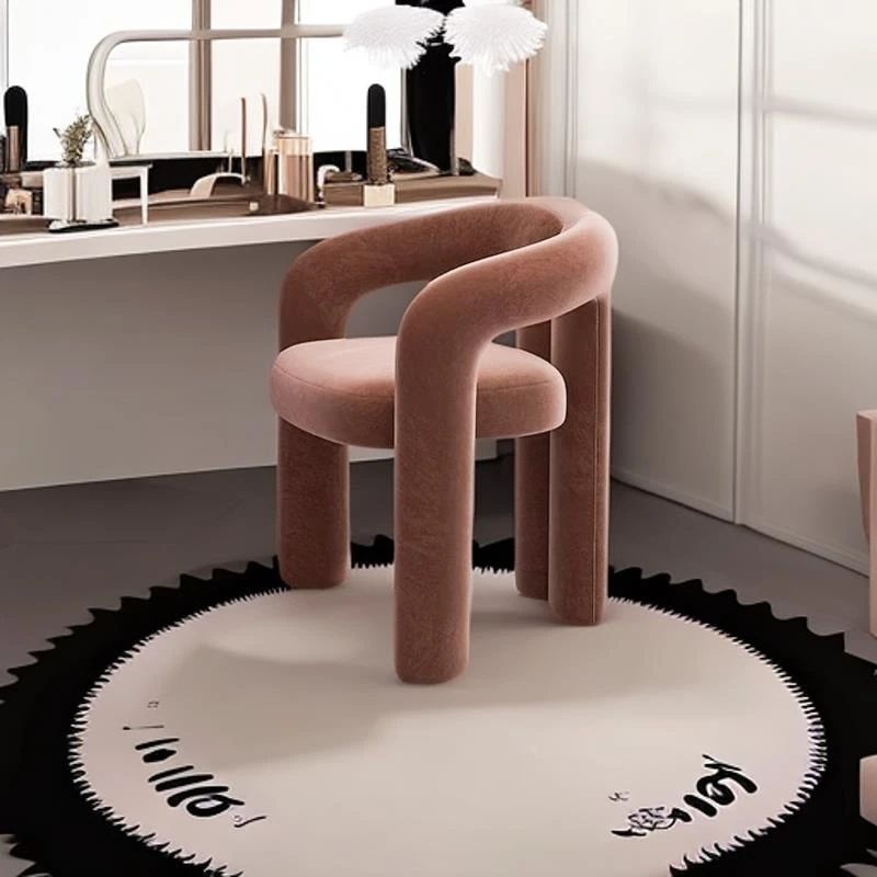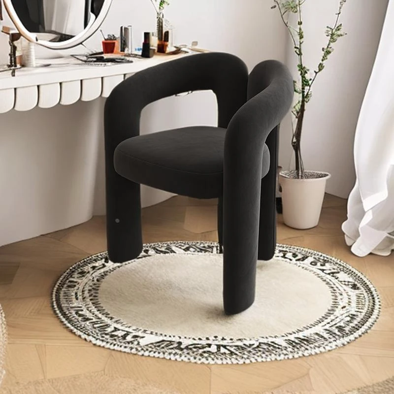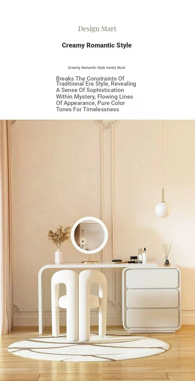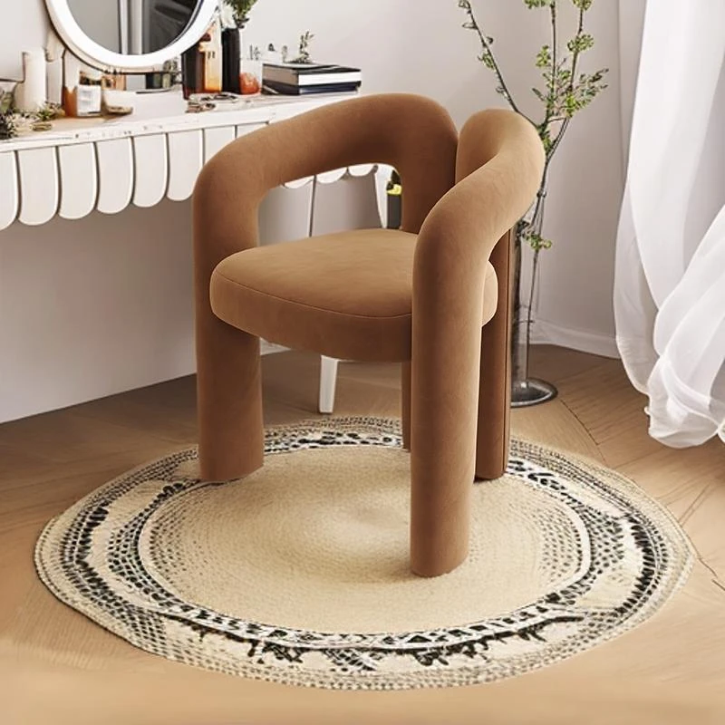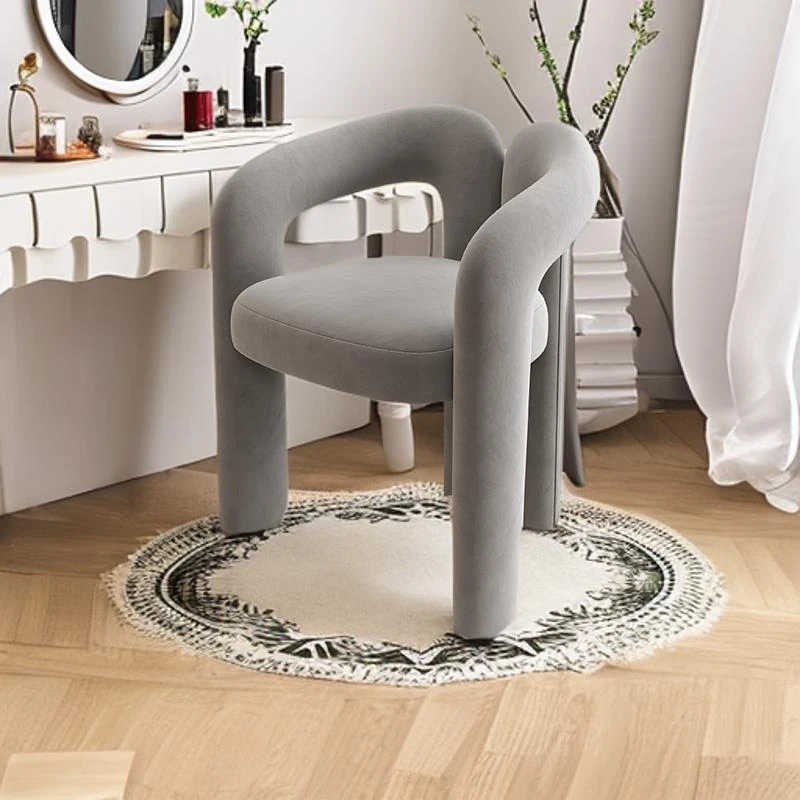 Creamy Aesthetic Home Makeup Chair - Elegant Vanity Stool for Nail Salons, Minimalist Design, High-End Feel, Perfect for Bedrooms, Trendy Single Leisure Chair