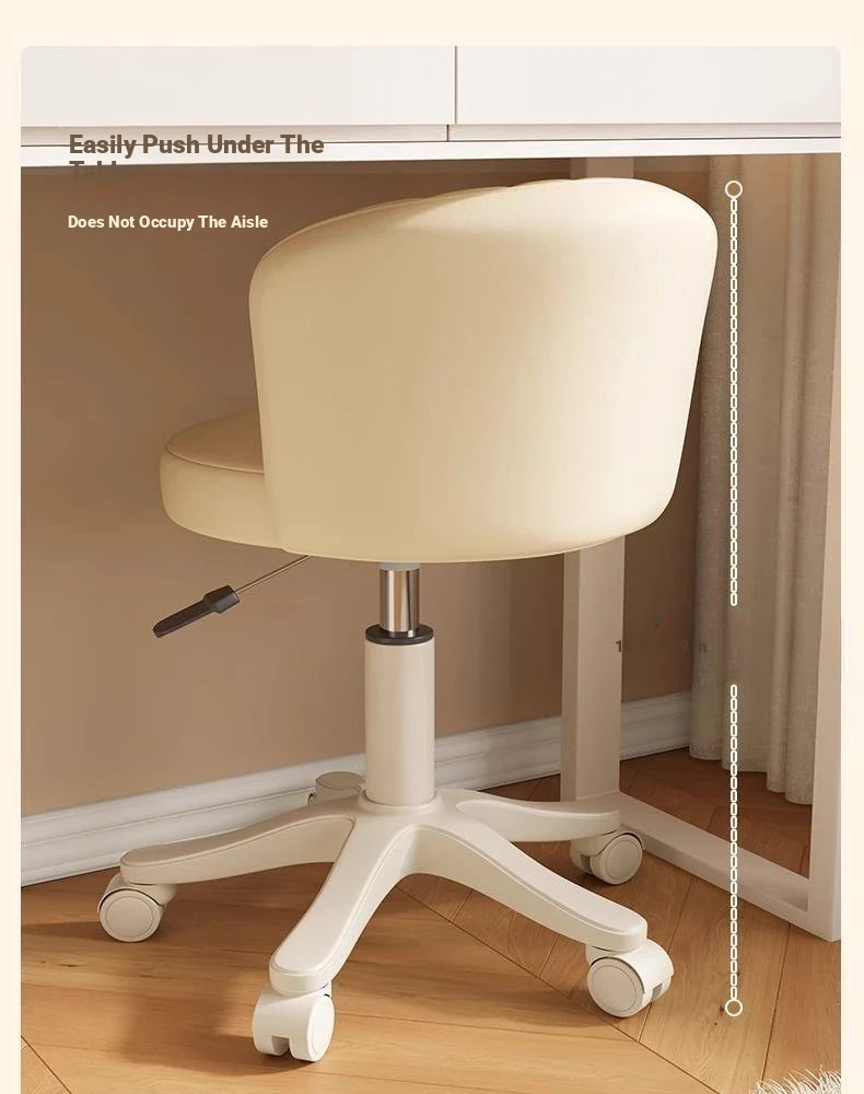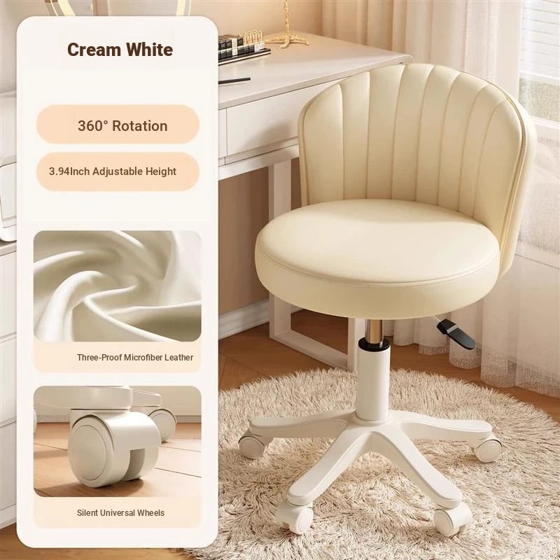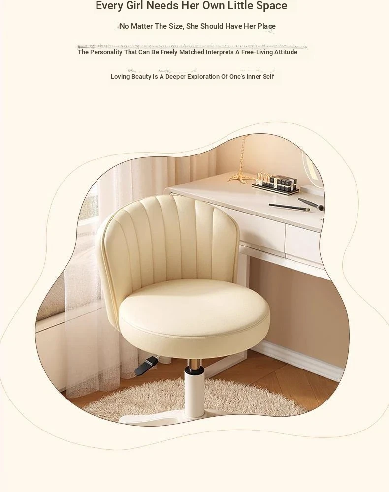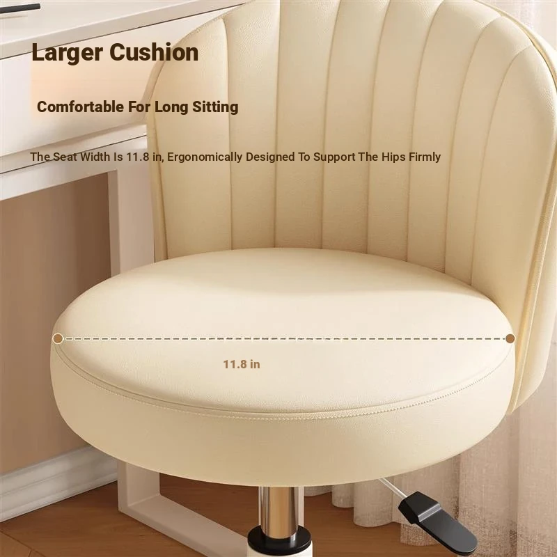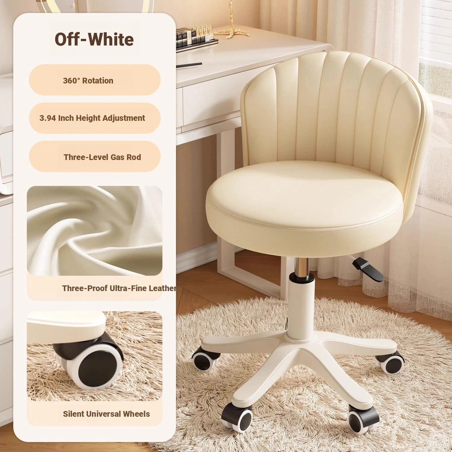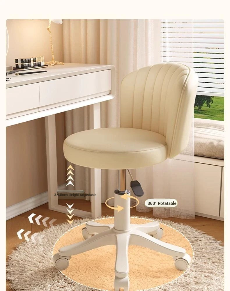 Creamy Makeup Chair - Adjustable and Rotatable Vanity Stool for Bedroom, Beauty, and Nail Art. Perfect for Glamorous Makeovers!