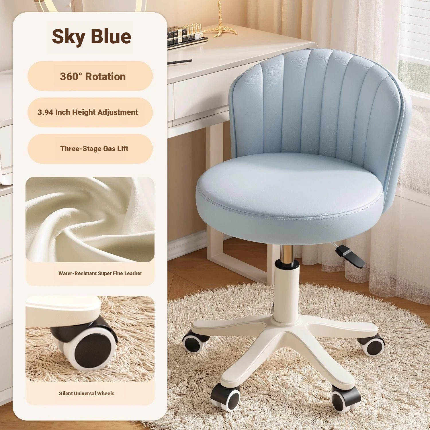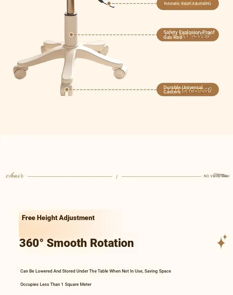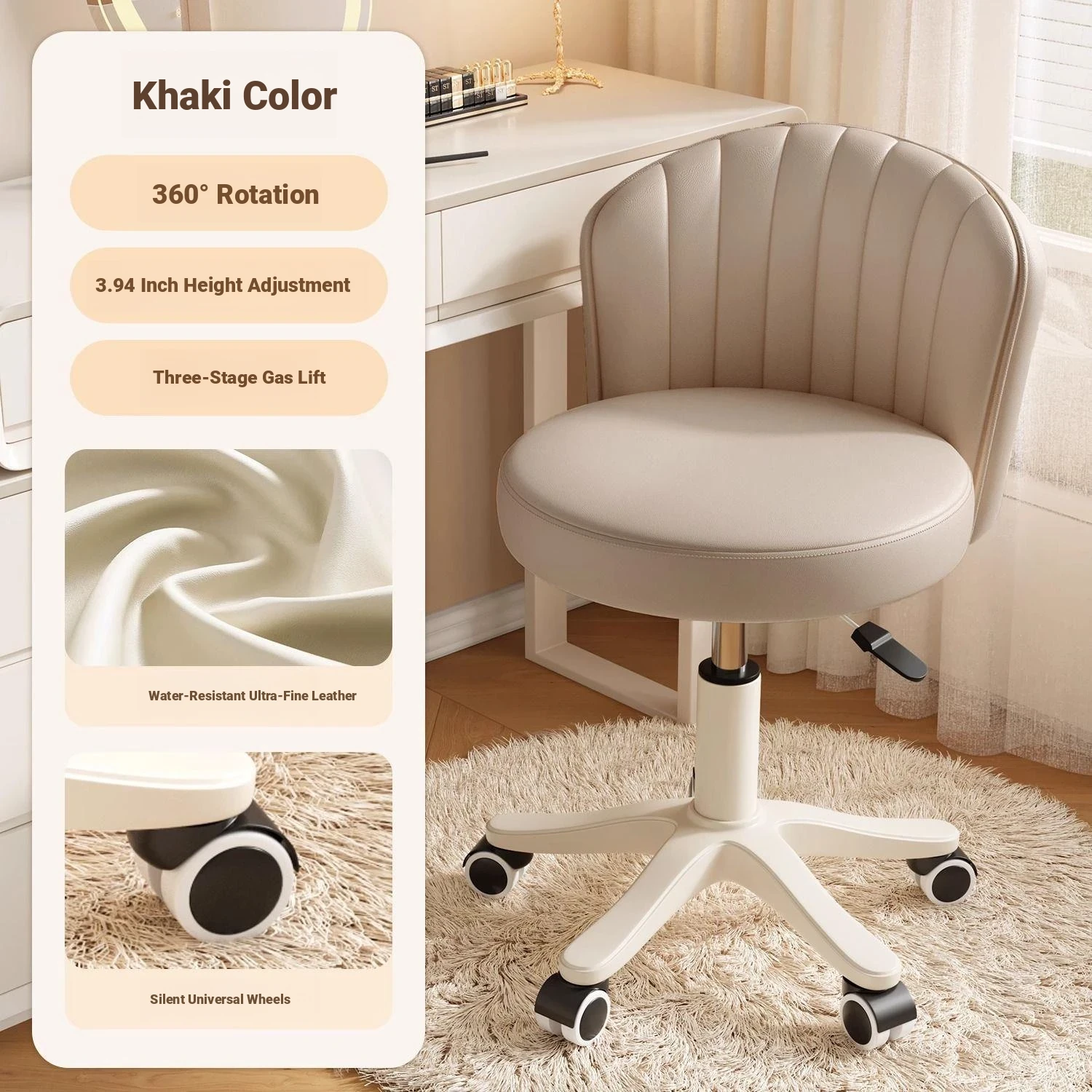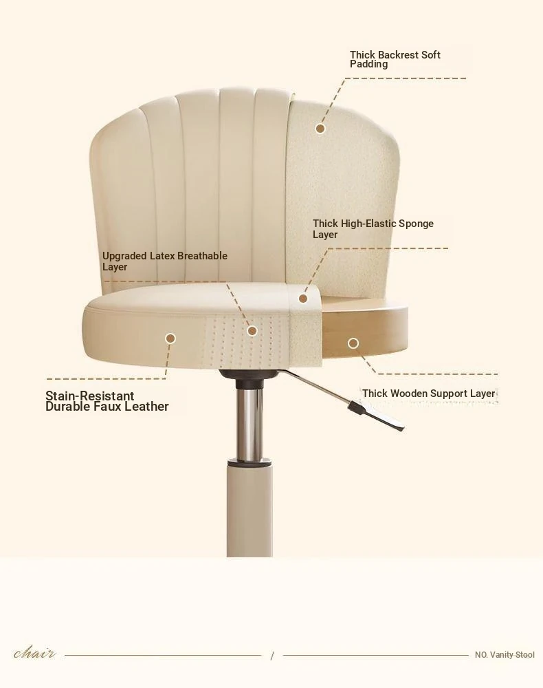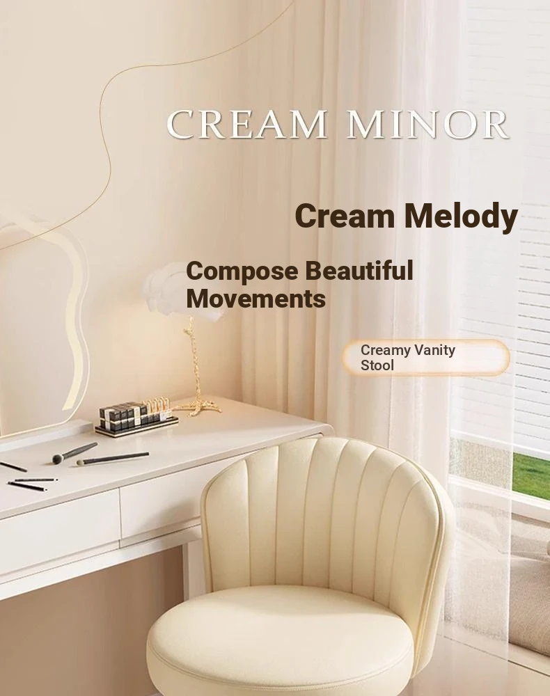 Creamy Makeup Chair - Adjustable and Rotatable Vanity Stool for Bedroom, Beauty, and Nail Art. Perfect for Glamorous Makeovers!