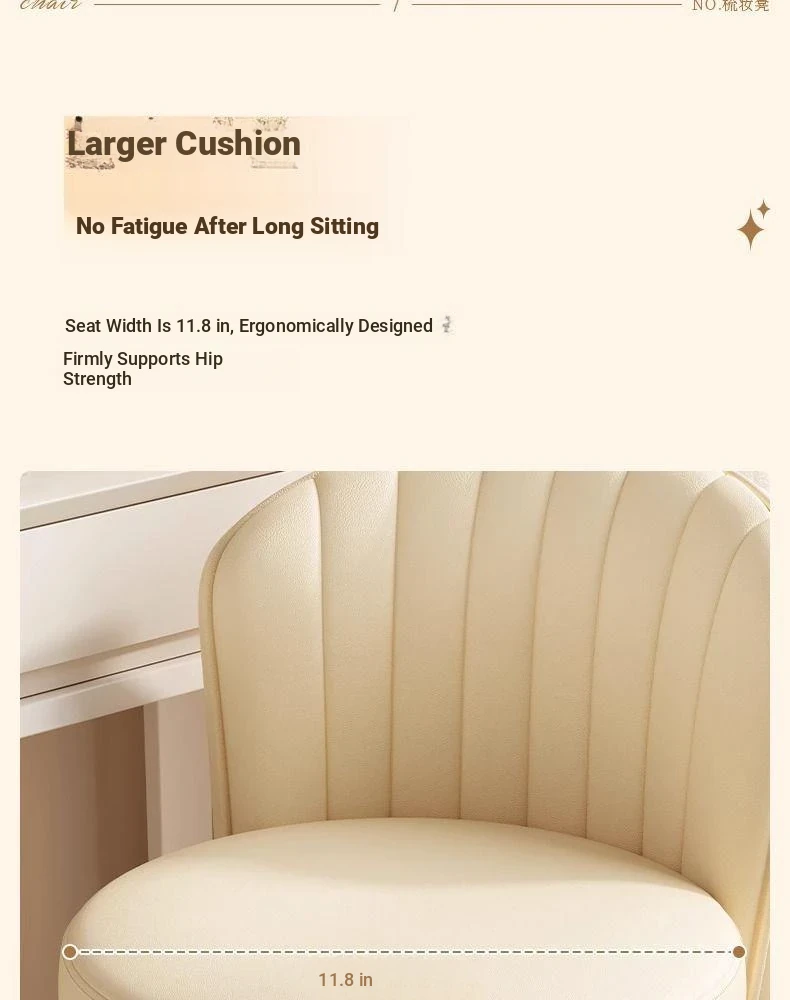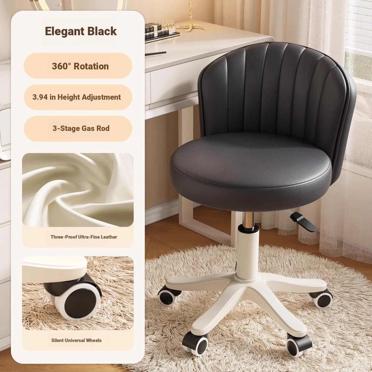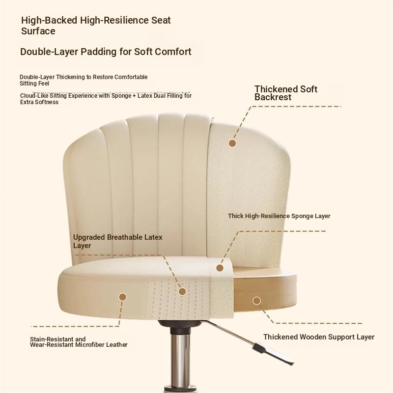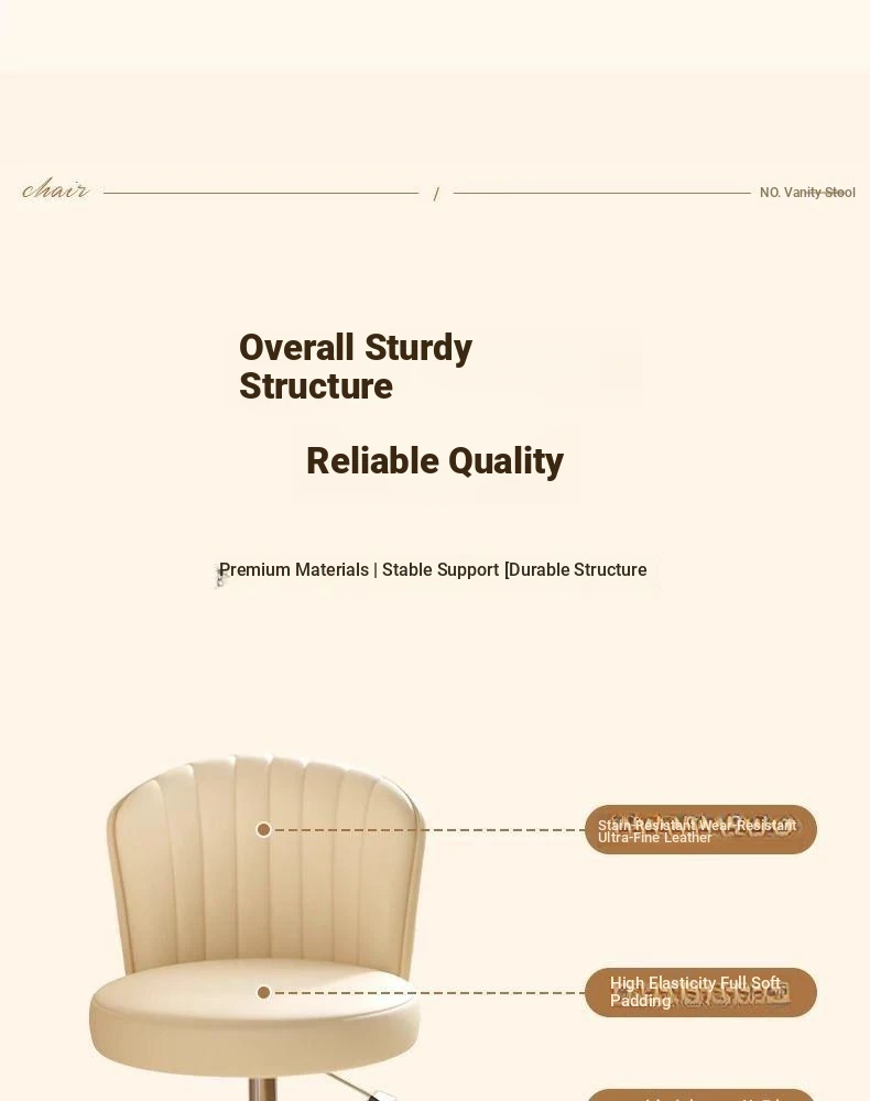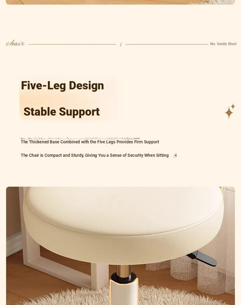 Creamy Makeup Chair - Adjustable and Rotatable Vanity Stool for Bedroom, Beauty, and Nail Art. Perfect for Glamorous Makeovers!