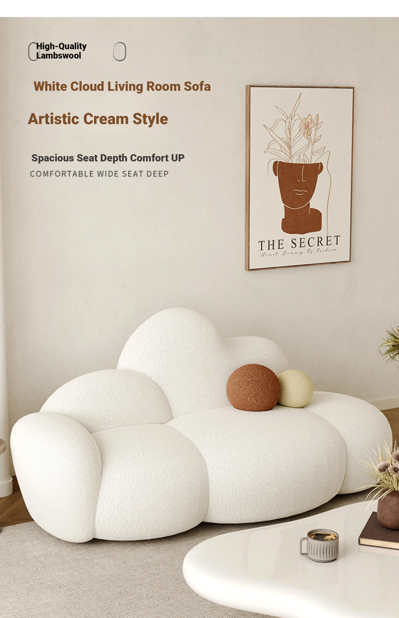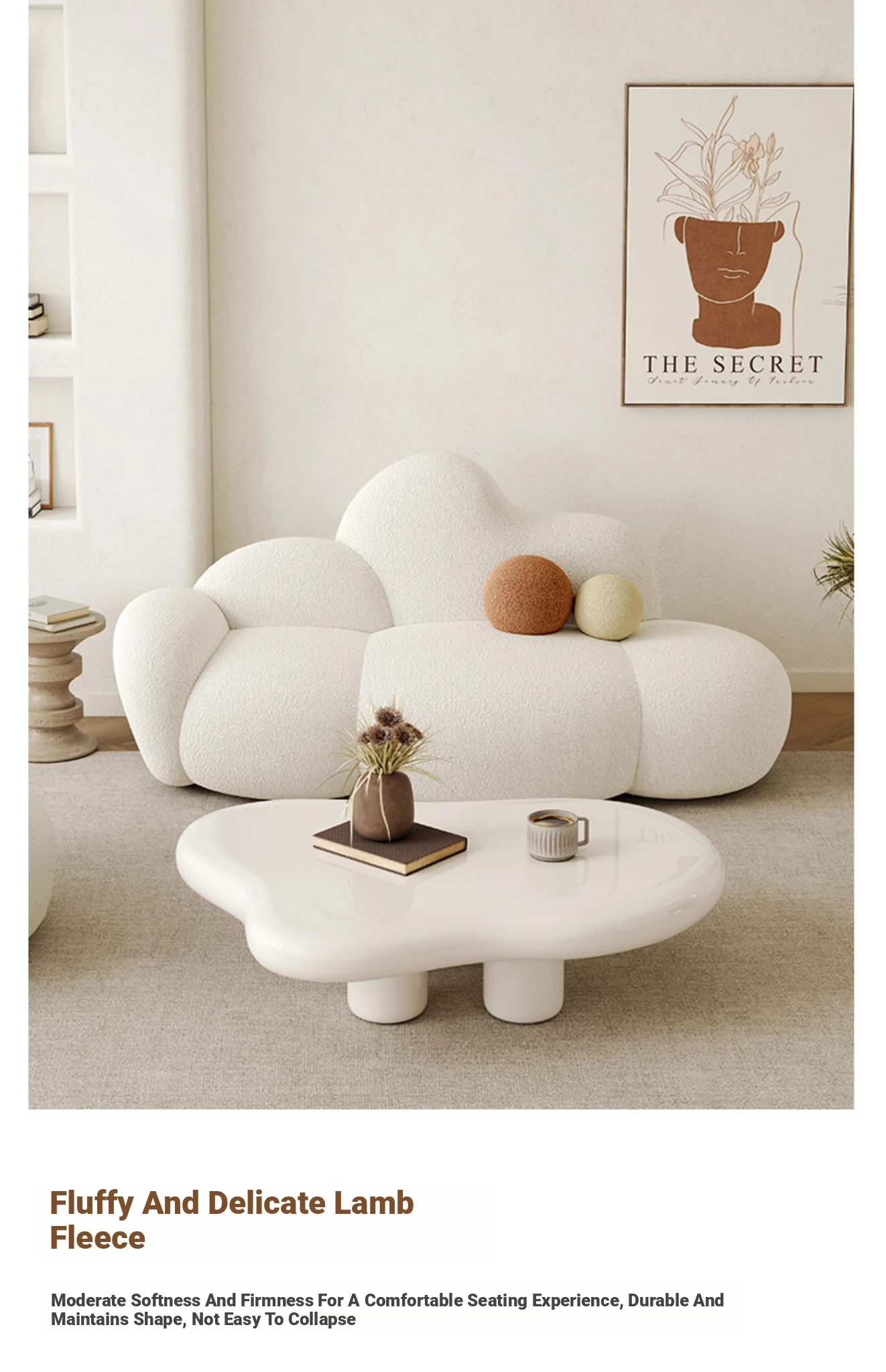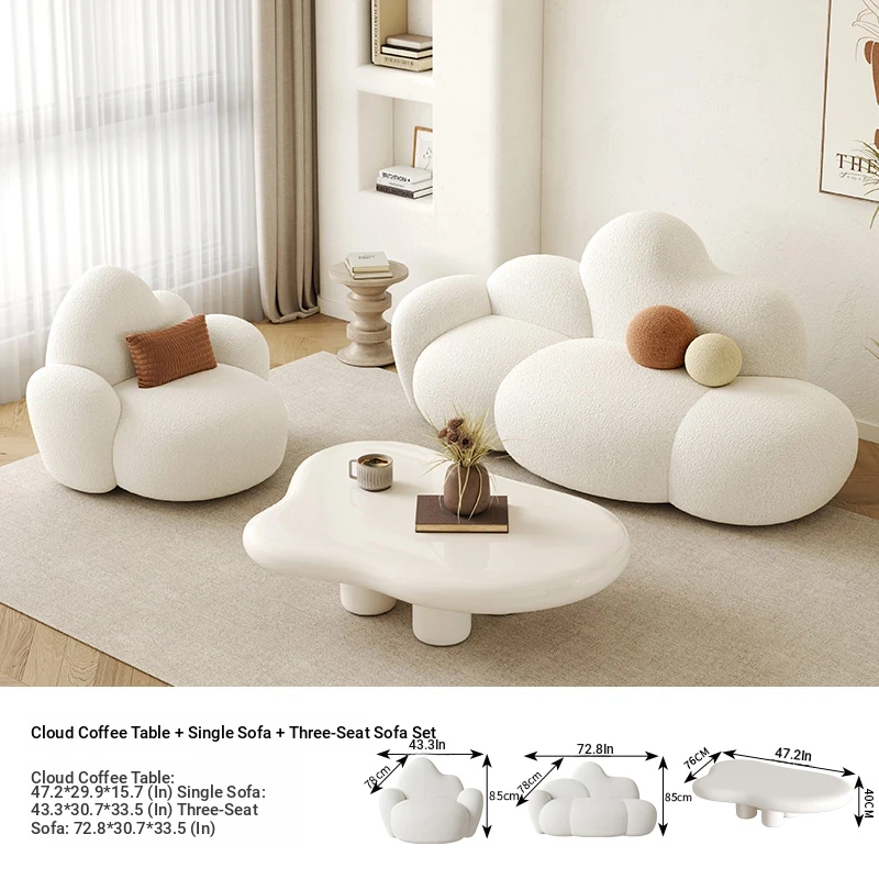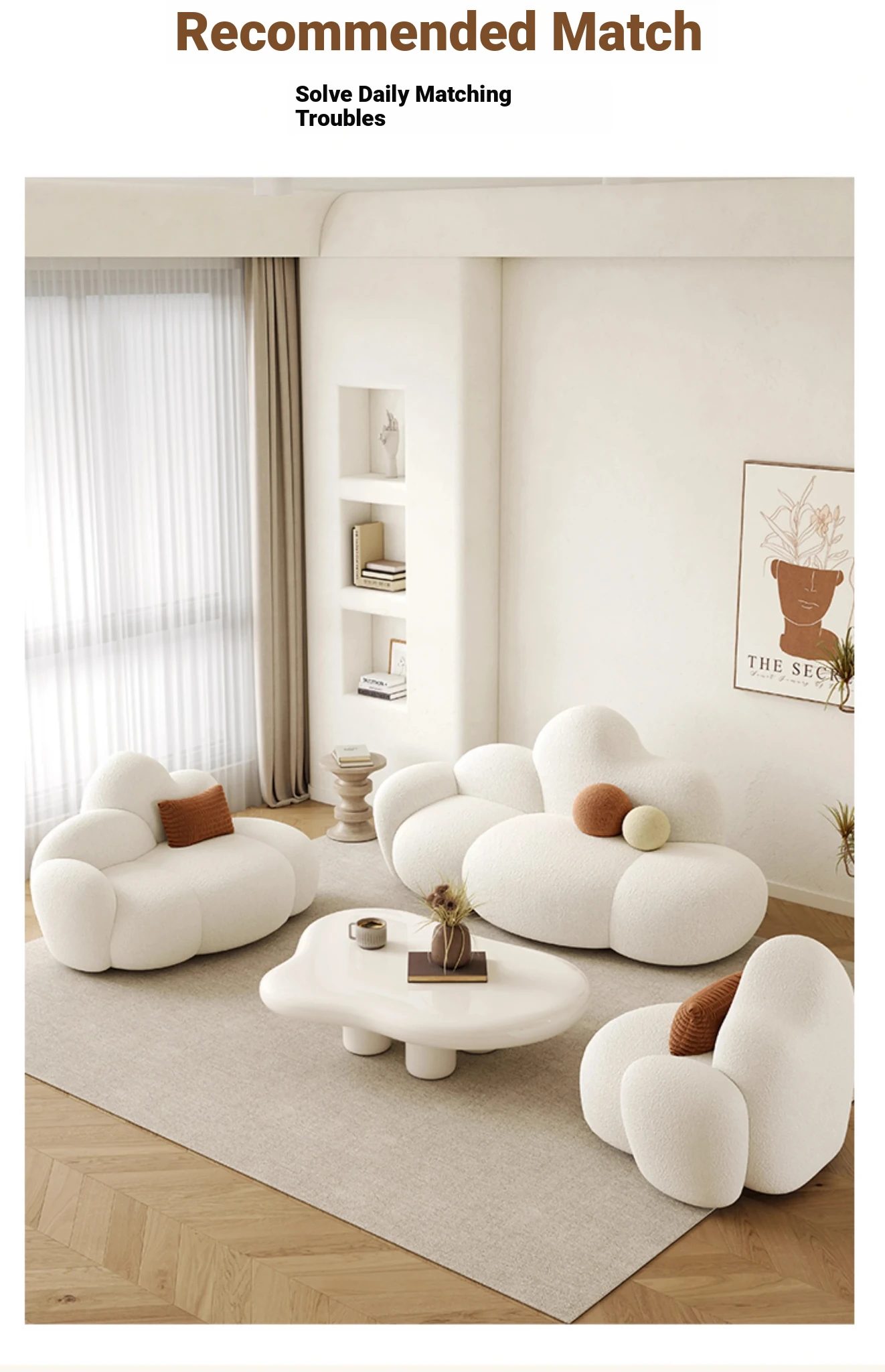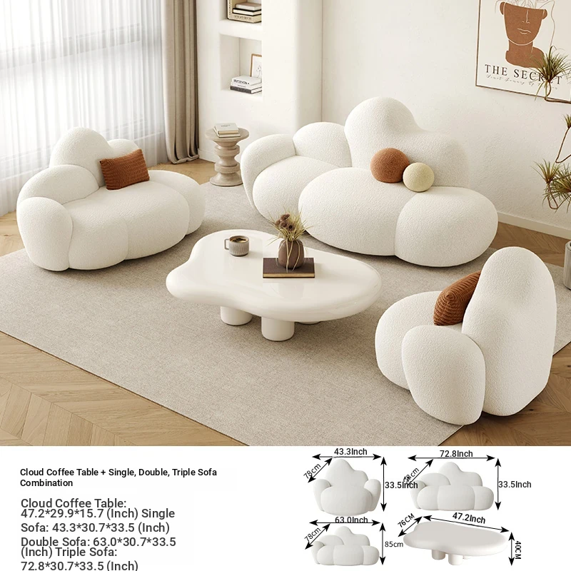 Cloud tea table + single and double three-person sofa combination default rice White Cashmere