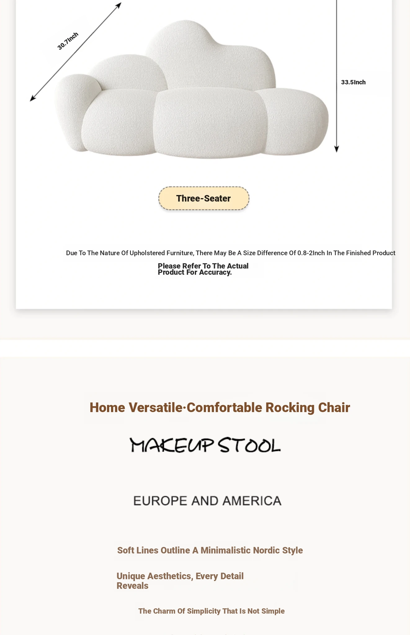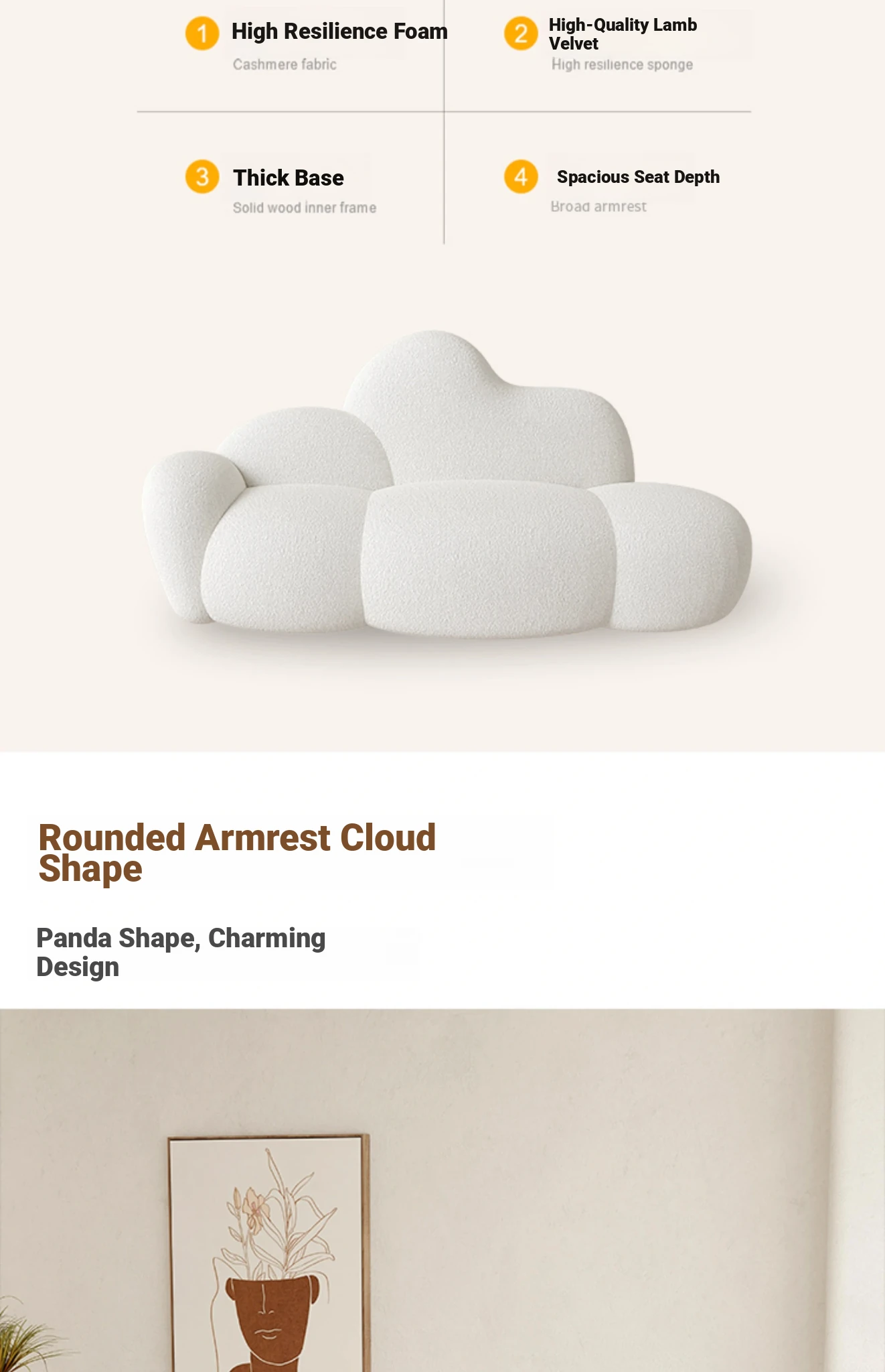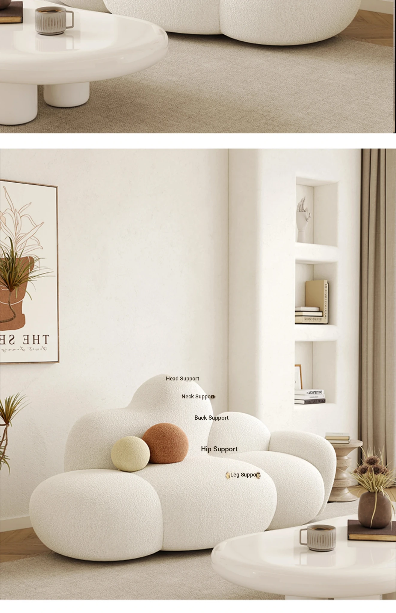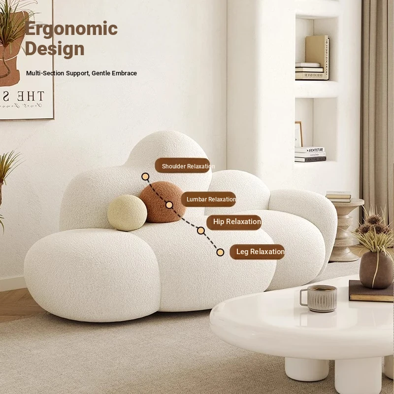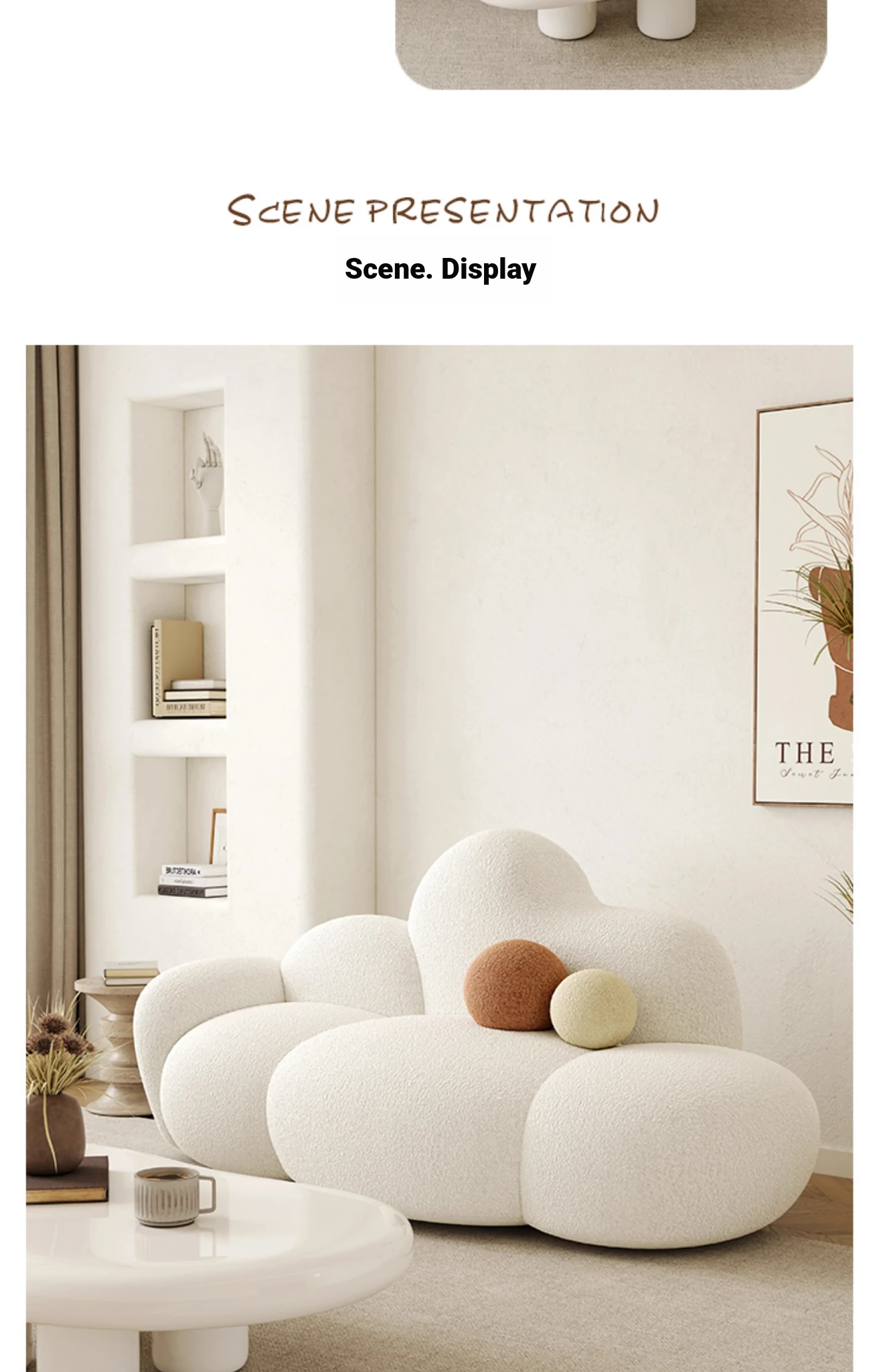Cloud tea table + single and double three-person sofa combination default rice White Cashmere