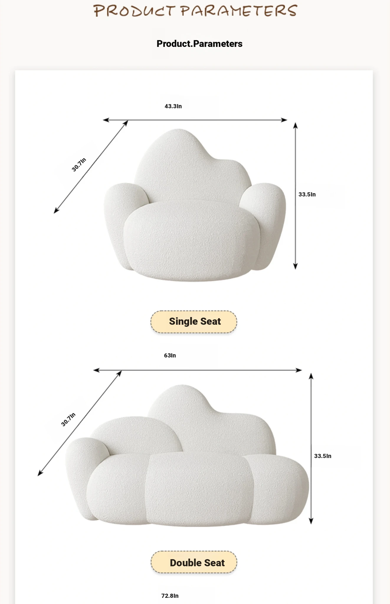 Mi Bai: Single Baiyun Sofa [110*78*85] Cashmere