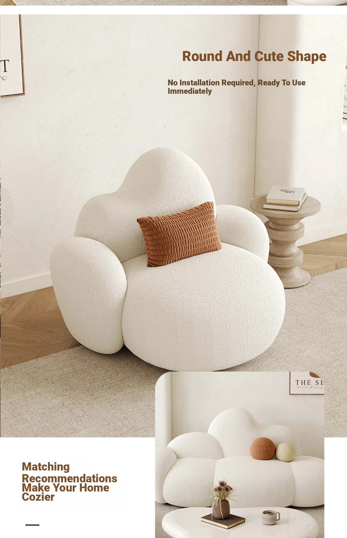 Cloud tea table + Single + three sofa combination default rice White Cashmere