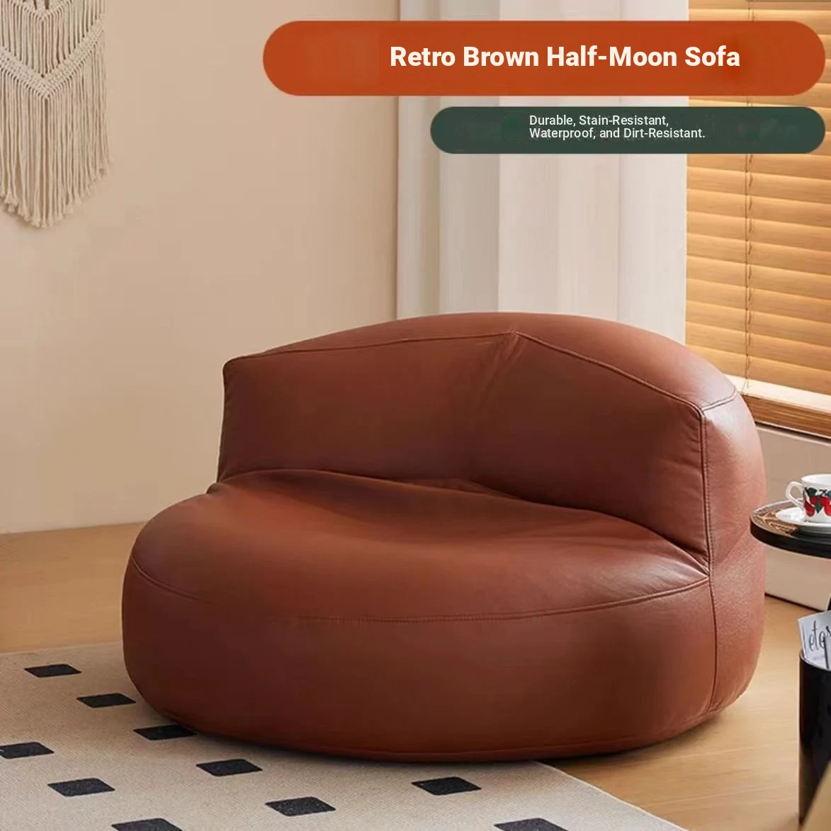 Tan [Environmental-Friendly Abrasion Resistant wash-free/three-proof technology cloth] Half Moon sofa a Plaid to take home