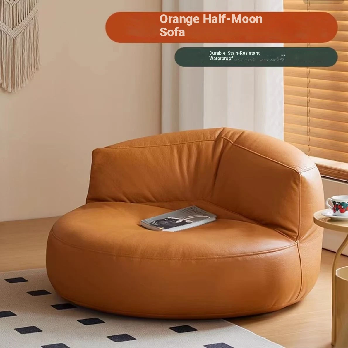 Orange [Environmental-Friendly Abrasion Resistant wash-free/three-proof technology cloth] Half Moon sofa a Plaid to take home