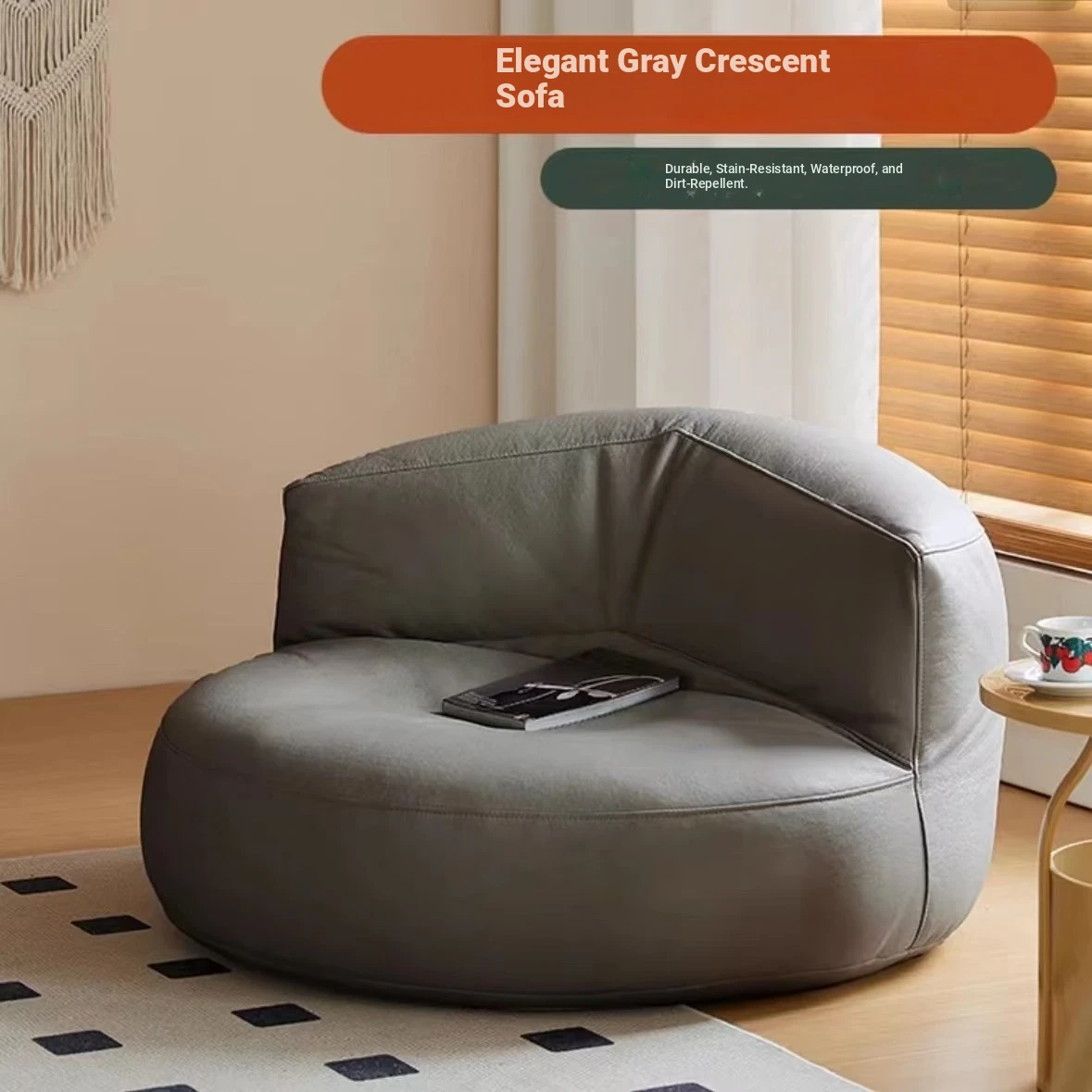 Light gray [Environmental-Friendly Abrasion Resistant wash-free/three-proof technology cloth] Half Moon sofa a Plaid to take home