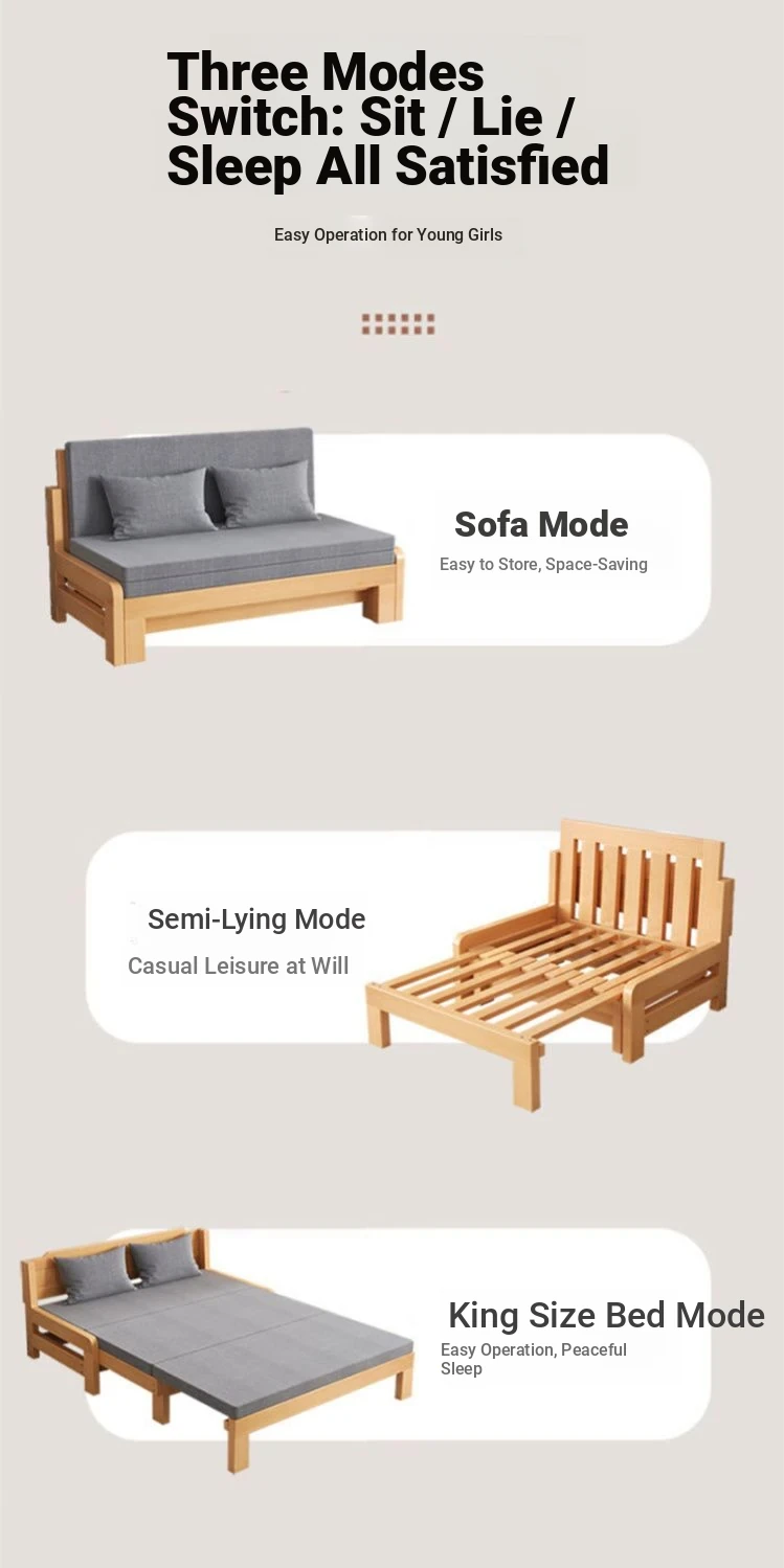 Direct Supply of Solid Wood Folding Sofa Bed for Hong Kong and Macau - Space-Saving Multi-Functional Sofa Bed Ideal for Small Apartments