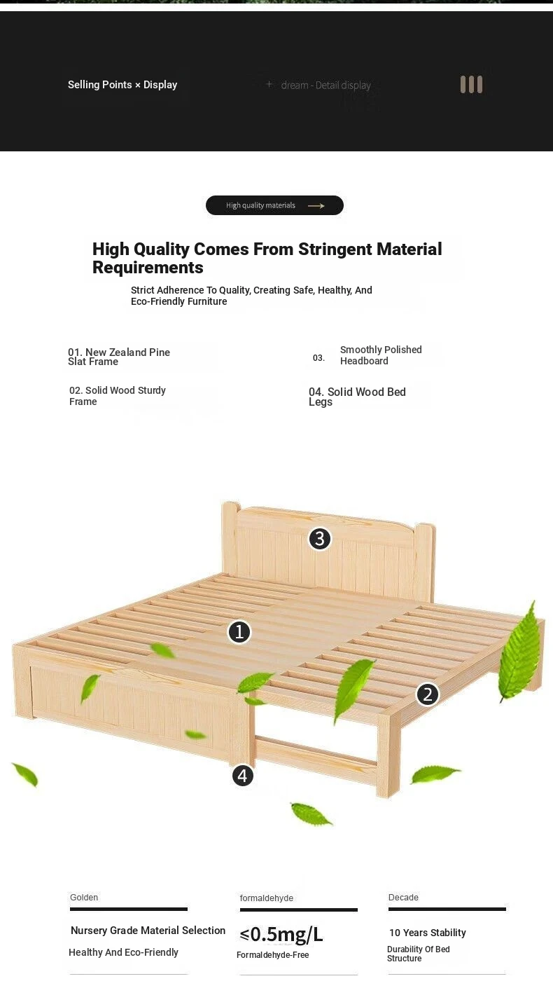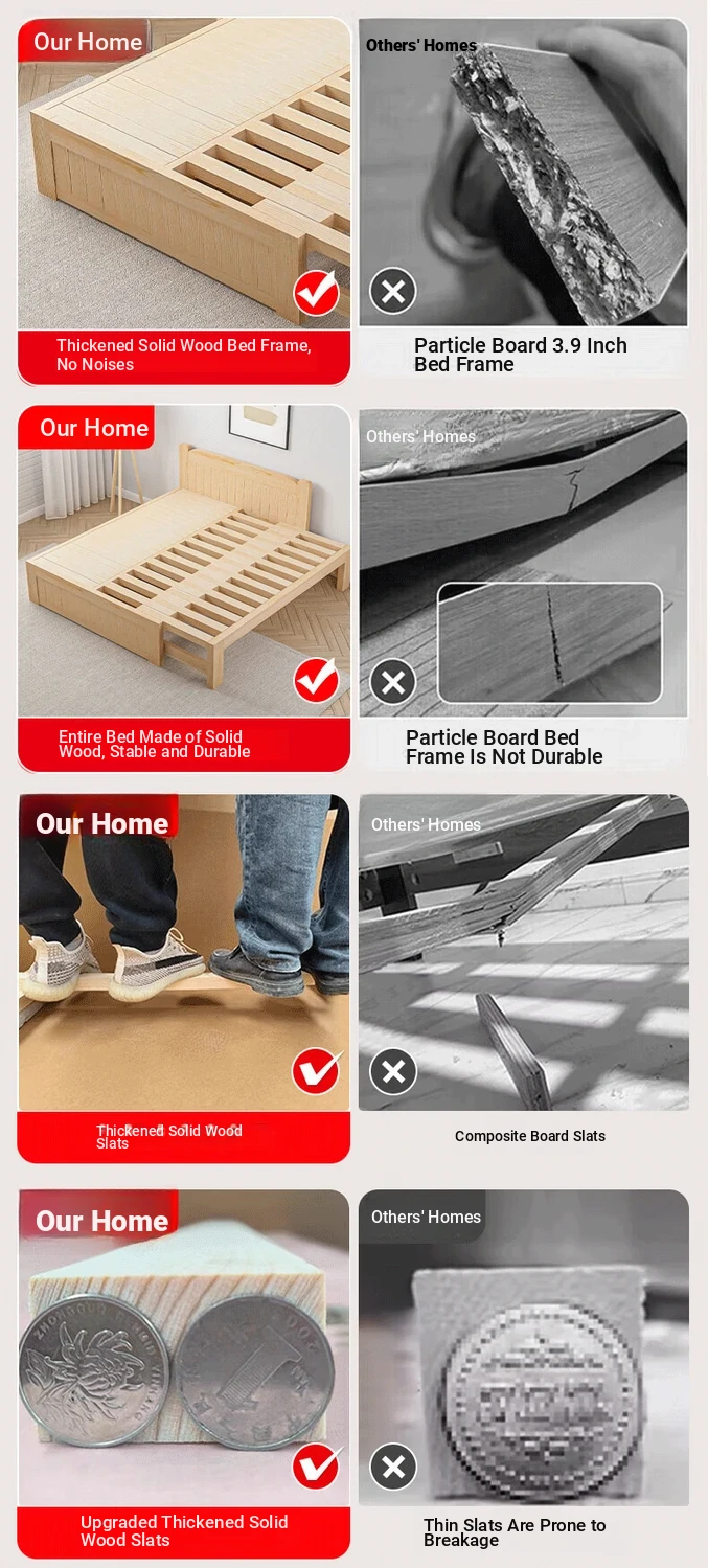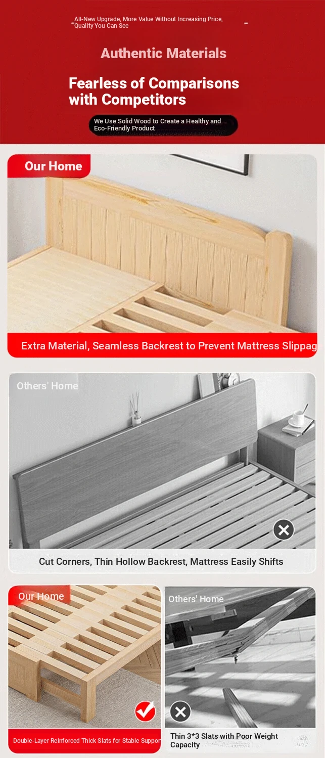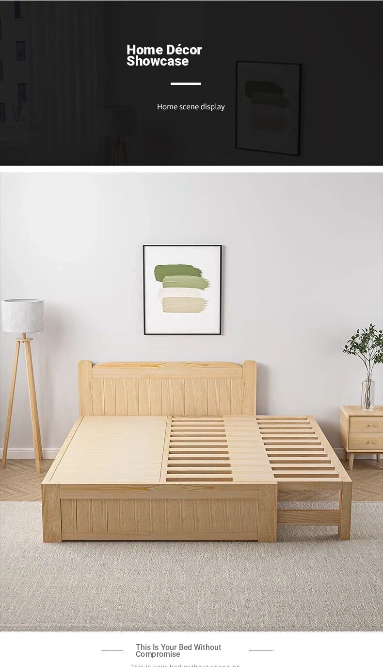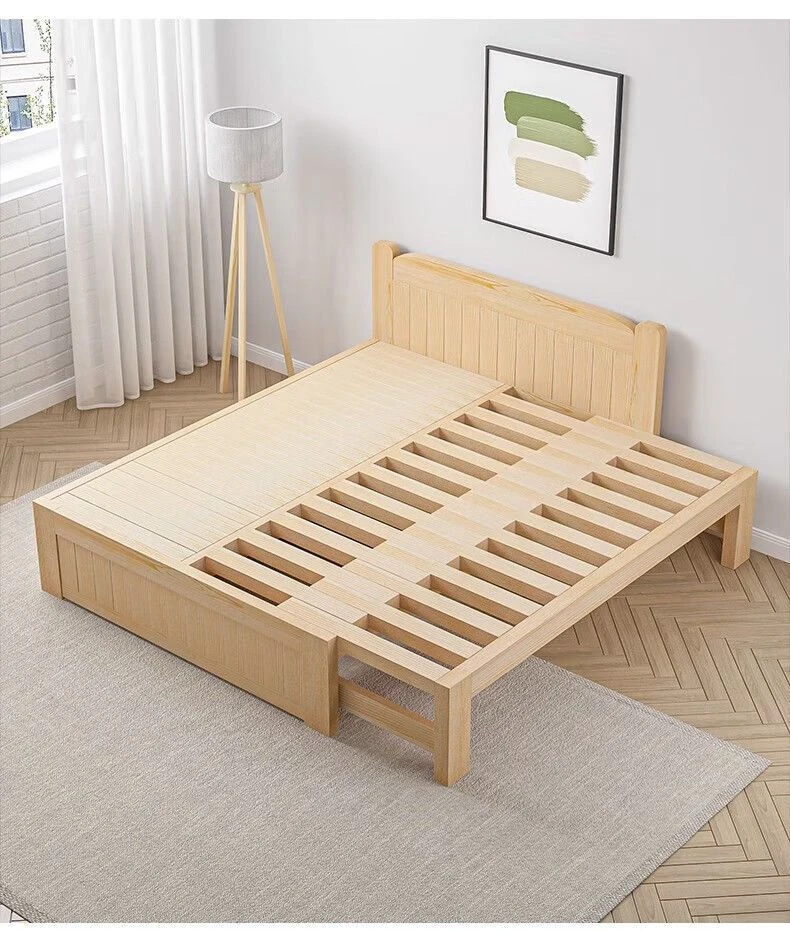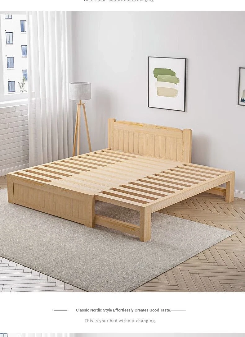 Direct Supply Solid Wood Double Bed for Hong Kong and Macau - 1.8m Extendable Modern Minimalist Bed for Small Spaces, Perfect for Cozy Living!