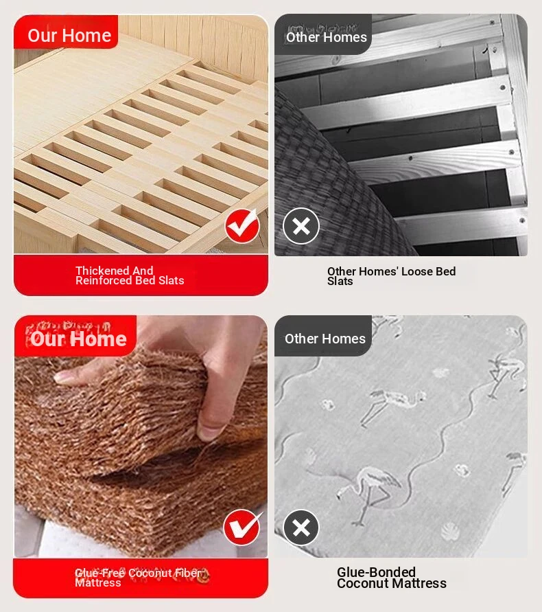 Solid Wood pumping broaching bed + Coconut Palm mattress