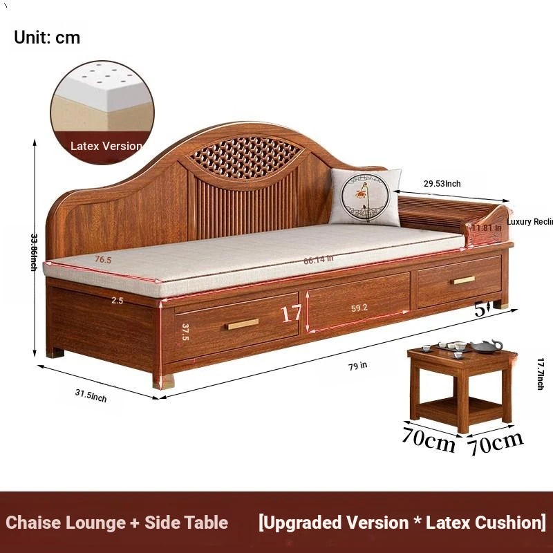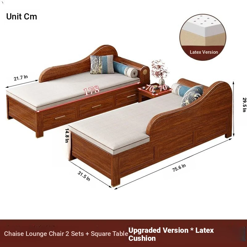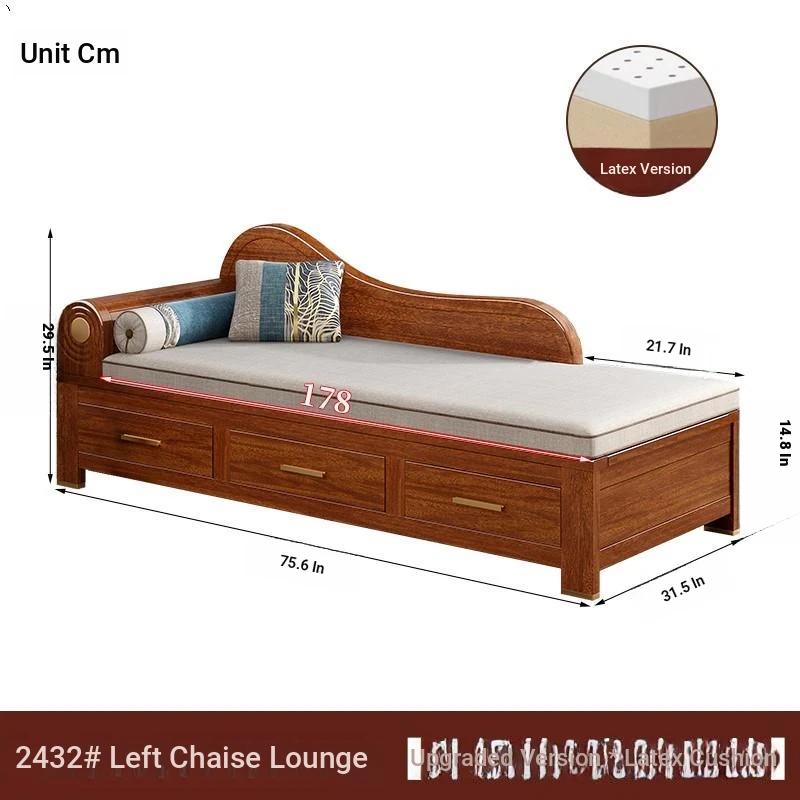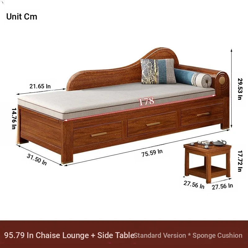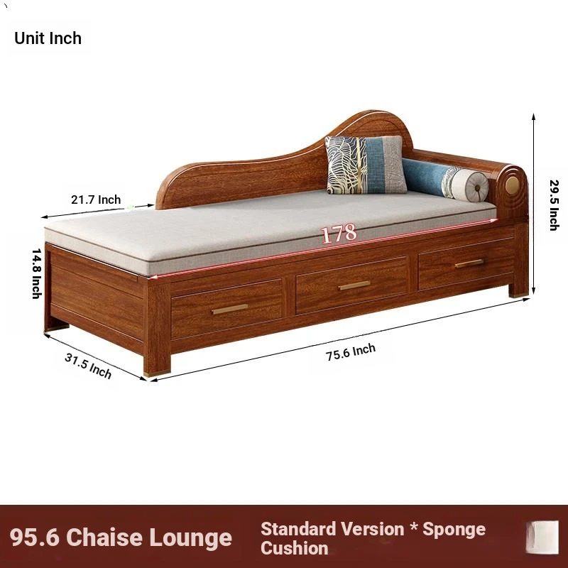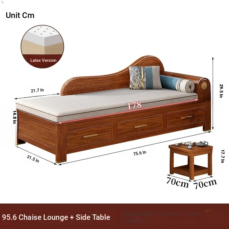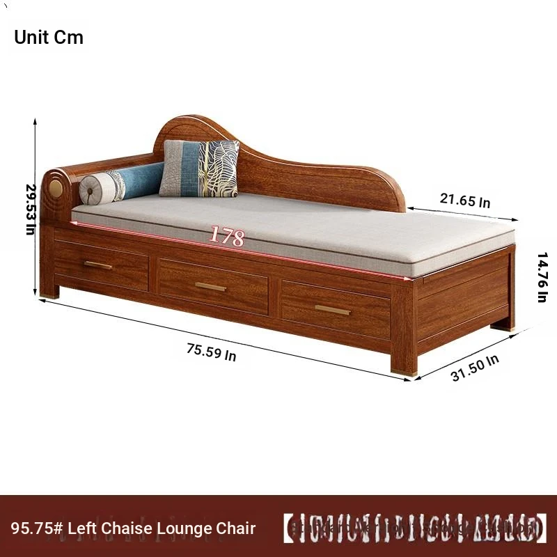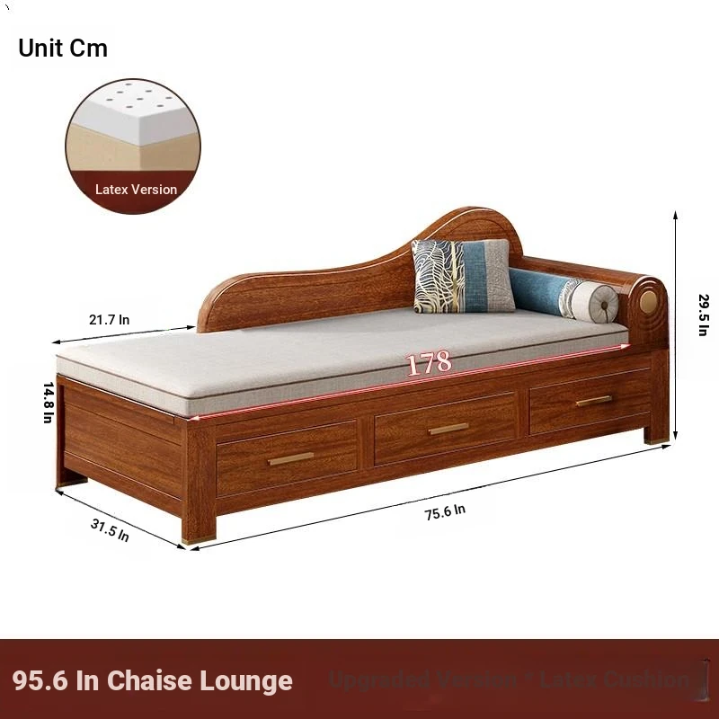 Elegant Golden Walnut Solid Wood Chaise Lounge Chair – Perfect for Living Room or Bedroom, Compact Design for Small Spaces, Luxurious Beauty Bed and Relaxation Chair