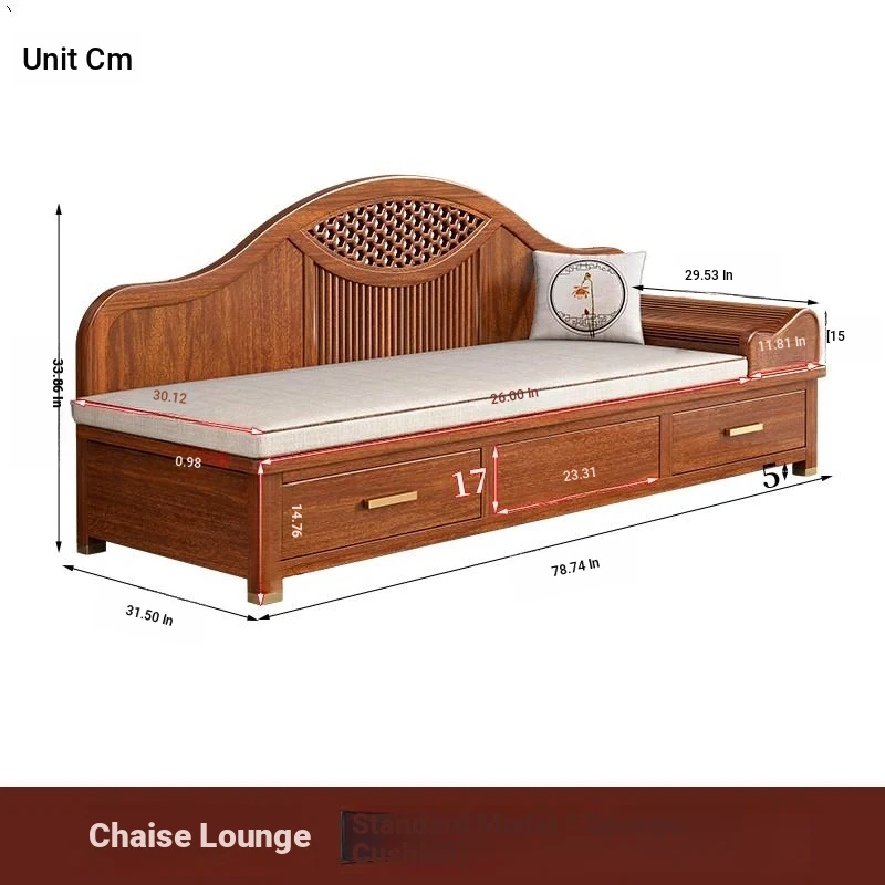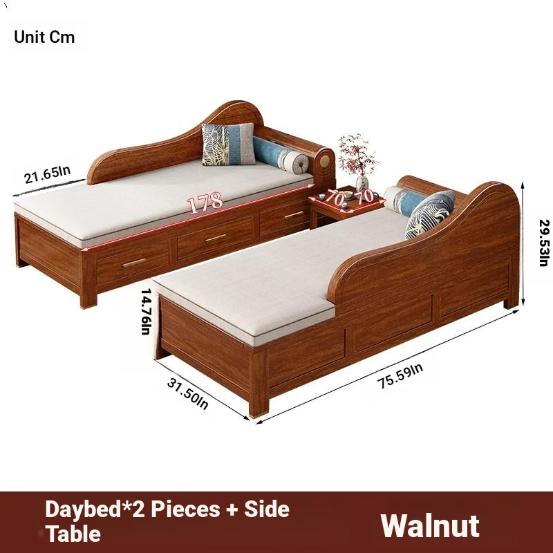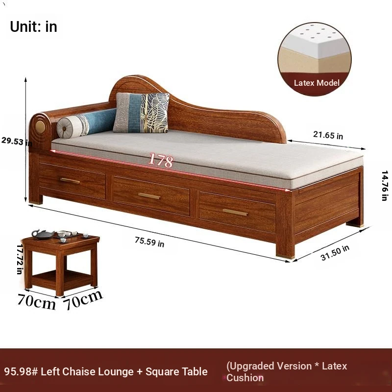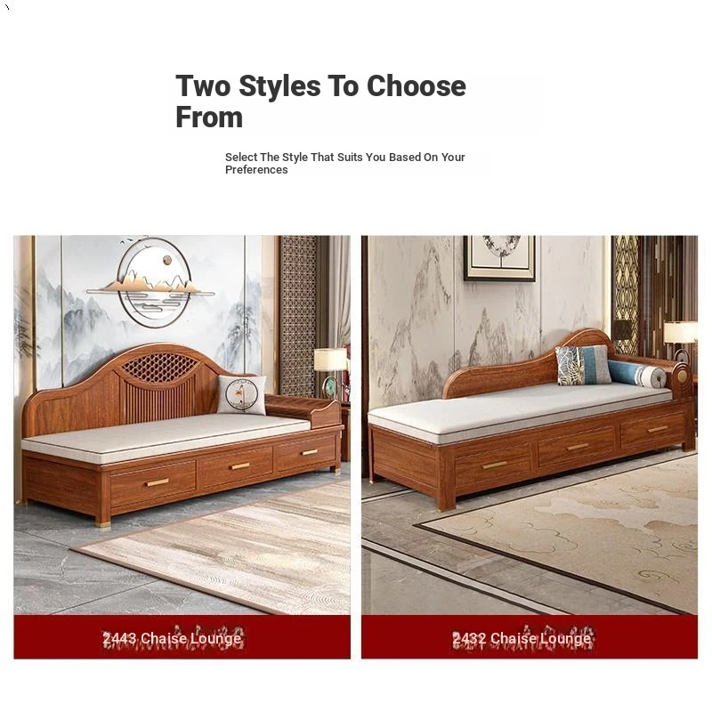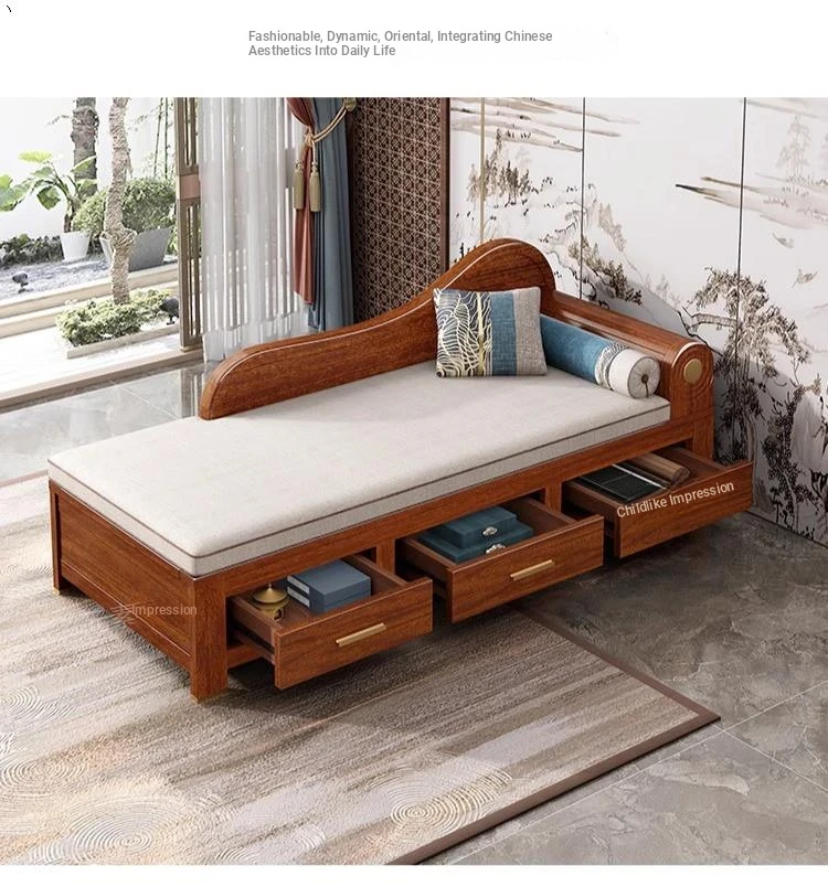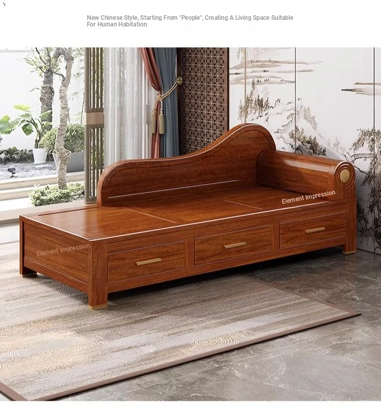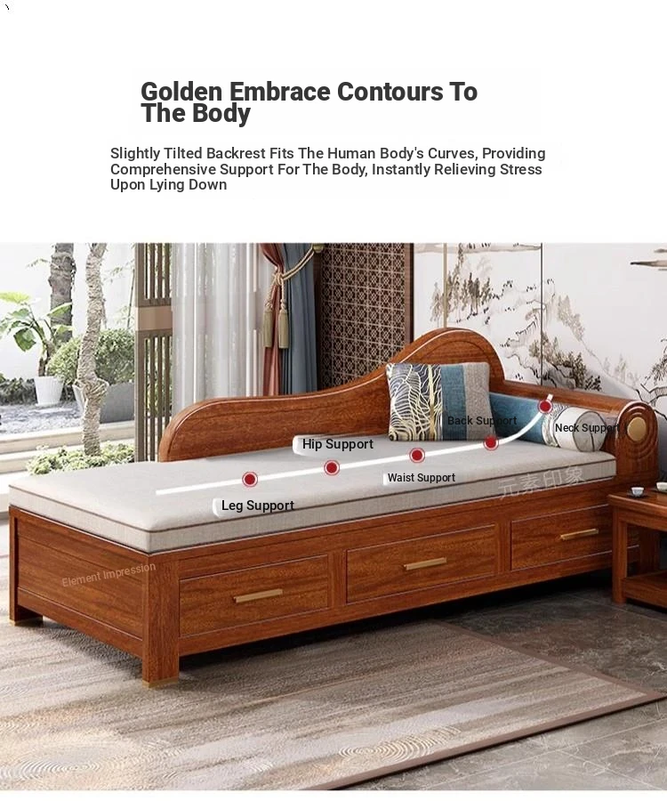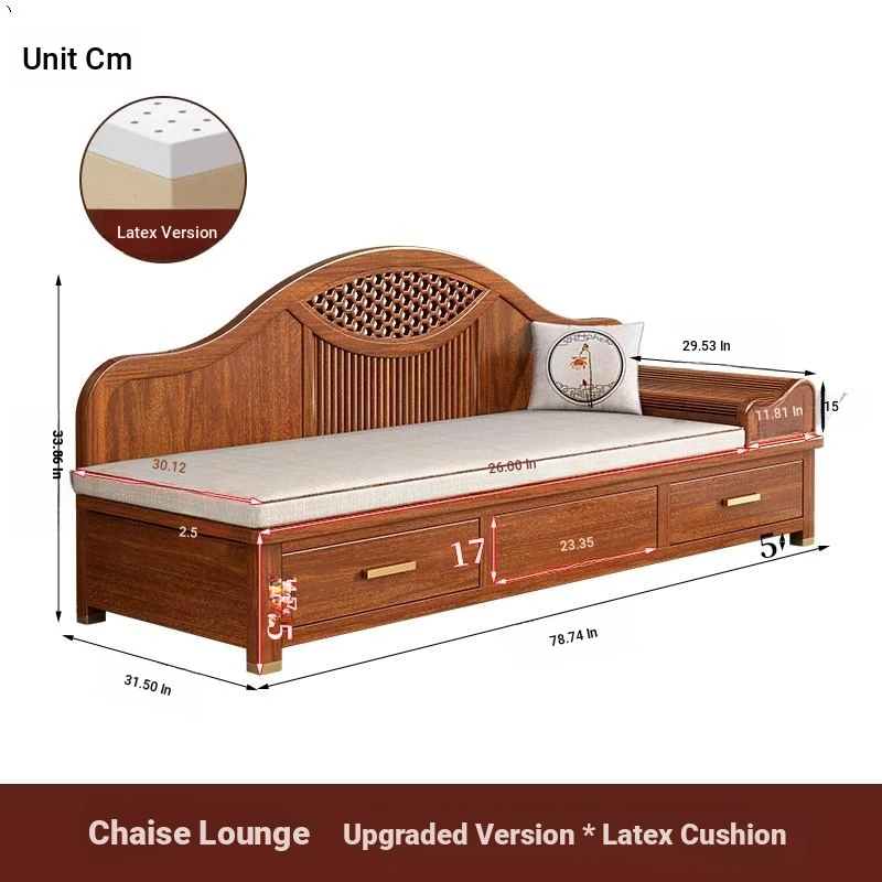 Elegant Golden Walnut Solid Wood Chaise Lounge Chair – Perfect for Living Room or Bedroom, Compact Design for Small Spaces, Luxurious Beauty Bed and Relaxation Chair