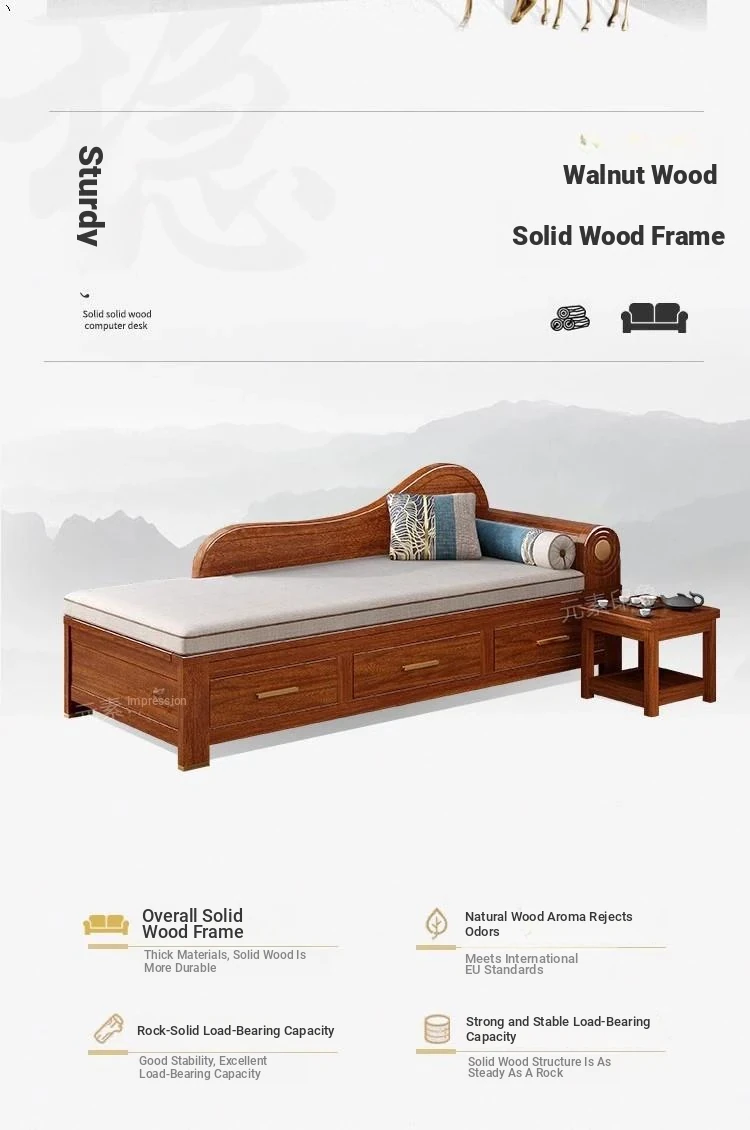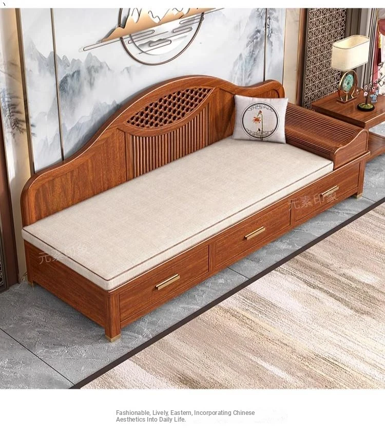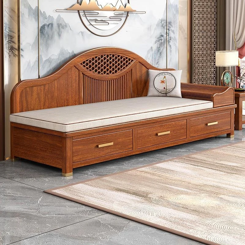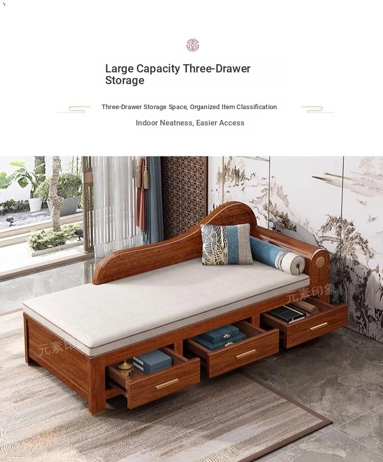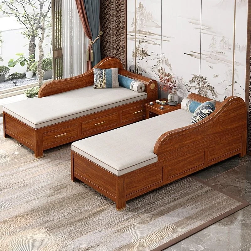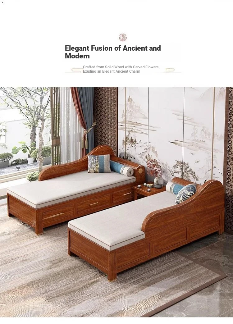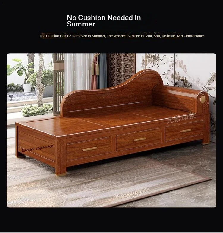 Elegant Golden Walnut Solid Wood Chaise Lounge Chair – Perfect for Living Room or Bedroom, Compact Design for Small Spaces, Luxurious Beauty Bed and Relaxation Chair