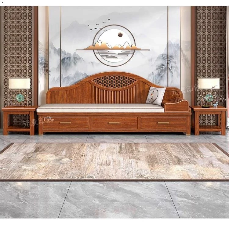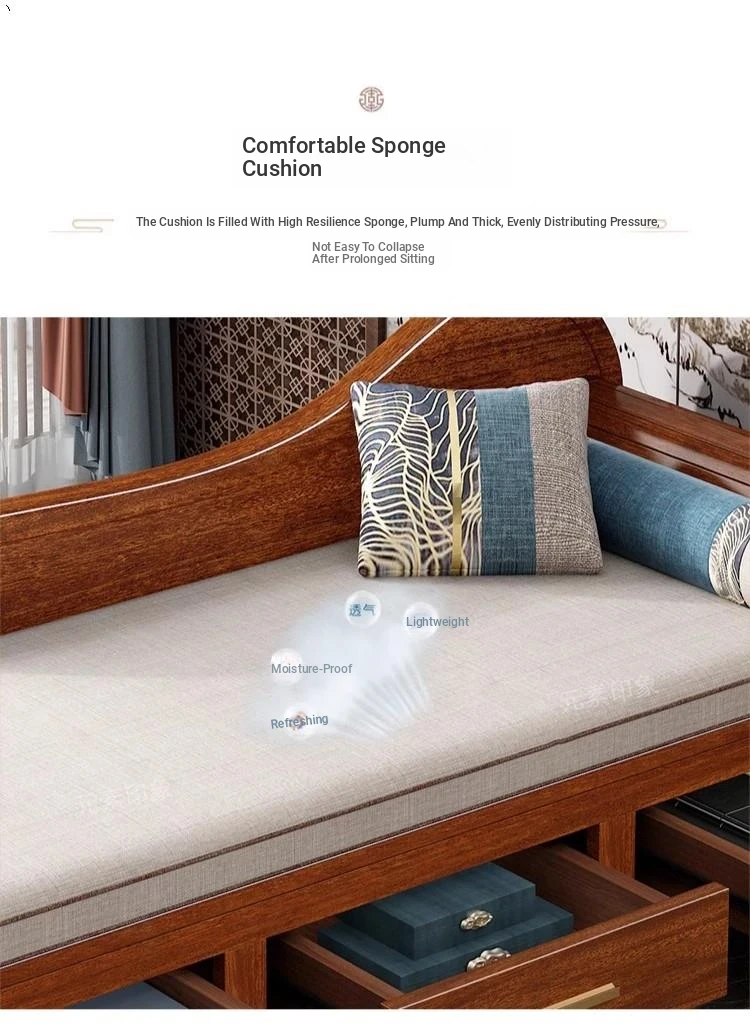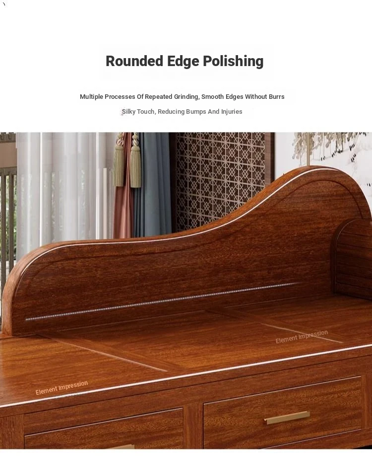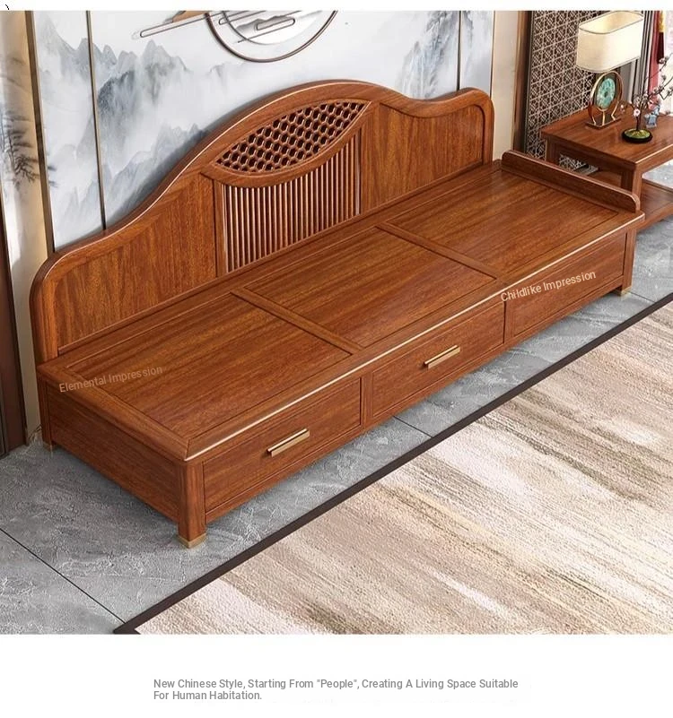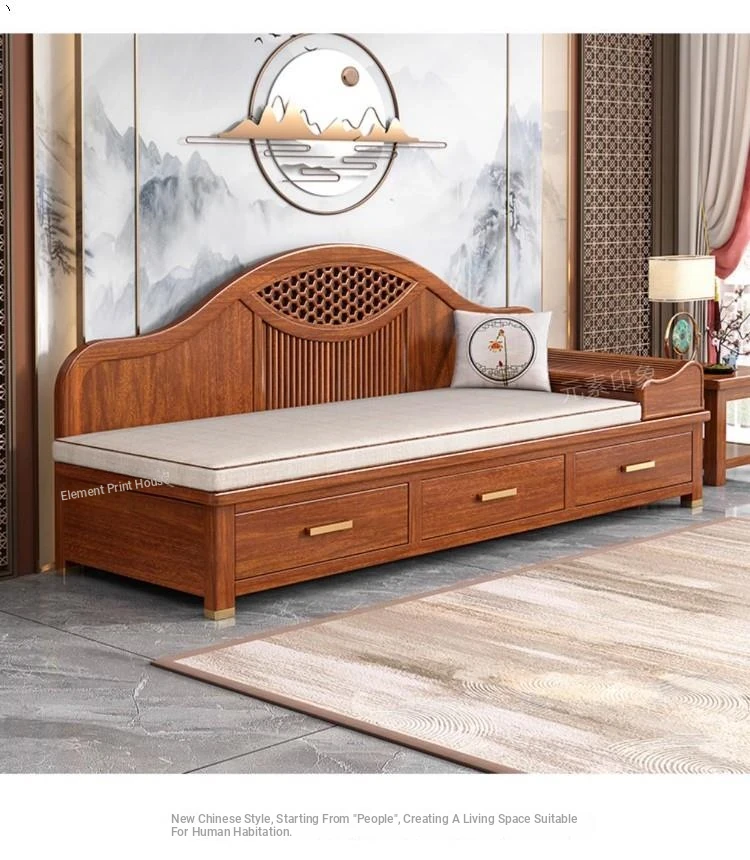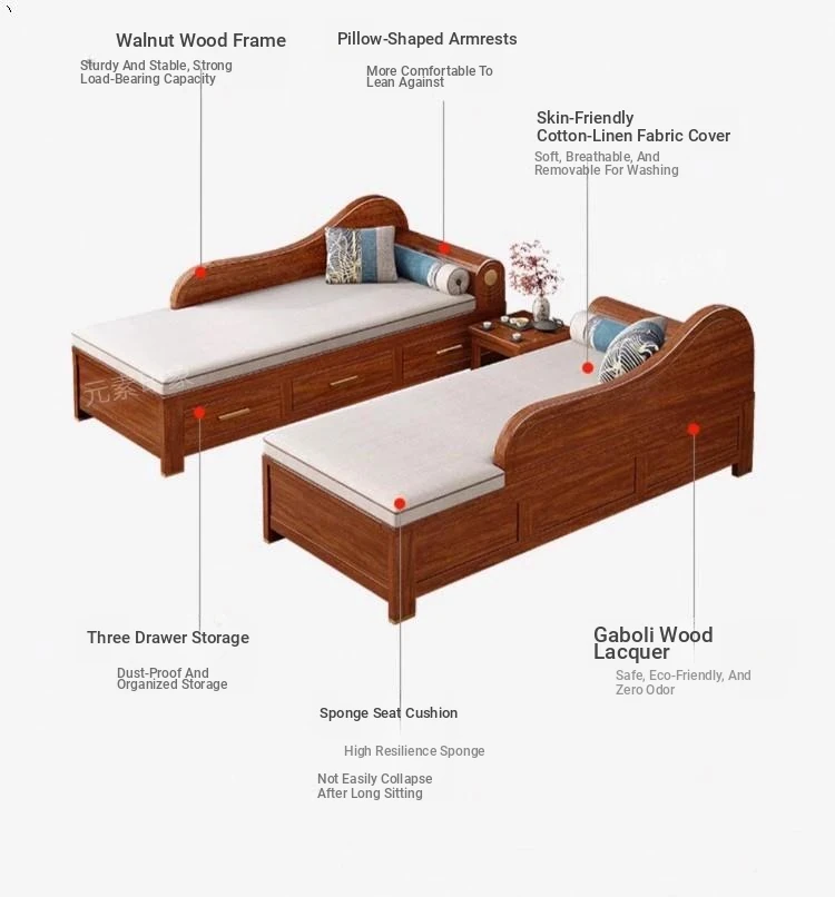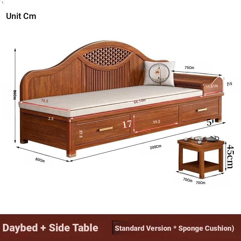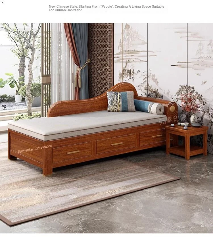 Elegant Golden Walnut Solid Wood Chaise Lounge Chair – Perfect for Living Room or Bedroom, Compact Design for Small Spaces, Luxurious Beauty Bed and Relaxation Chair