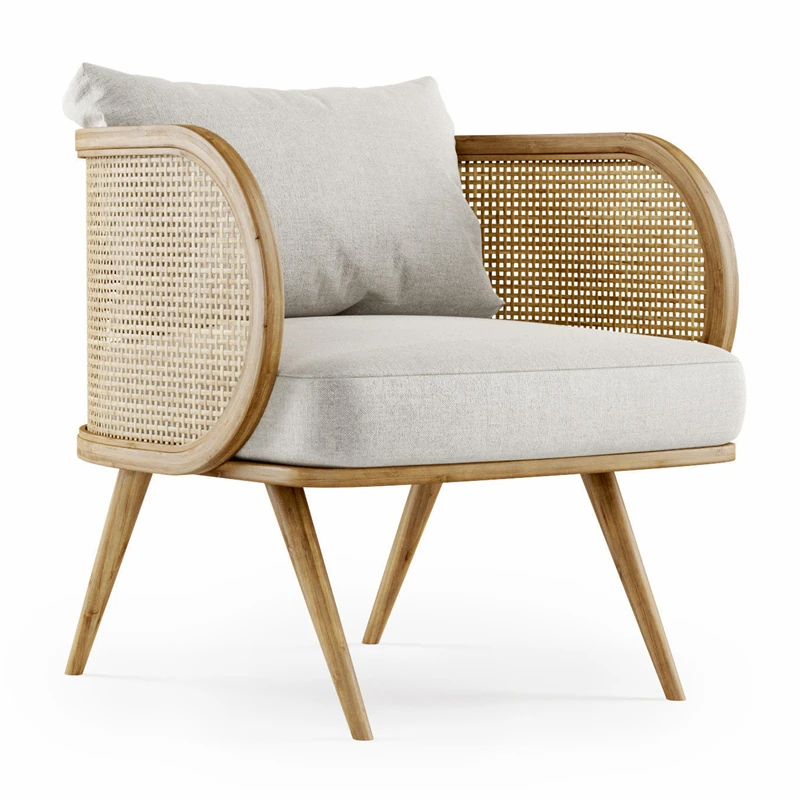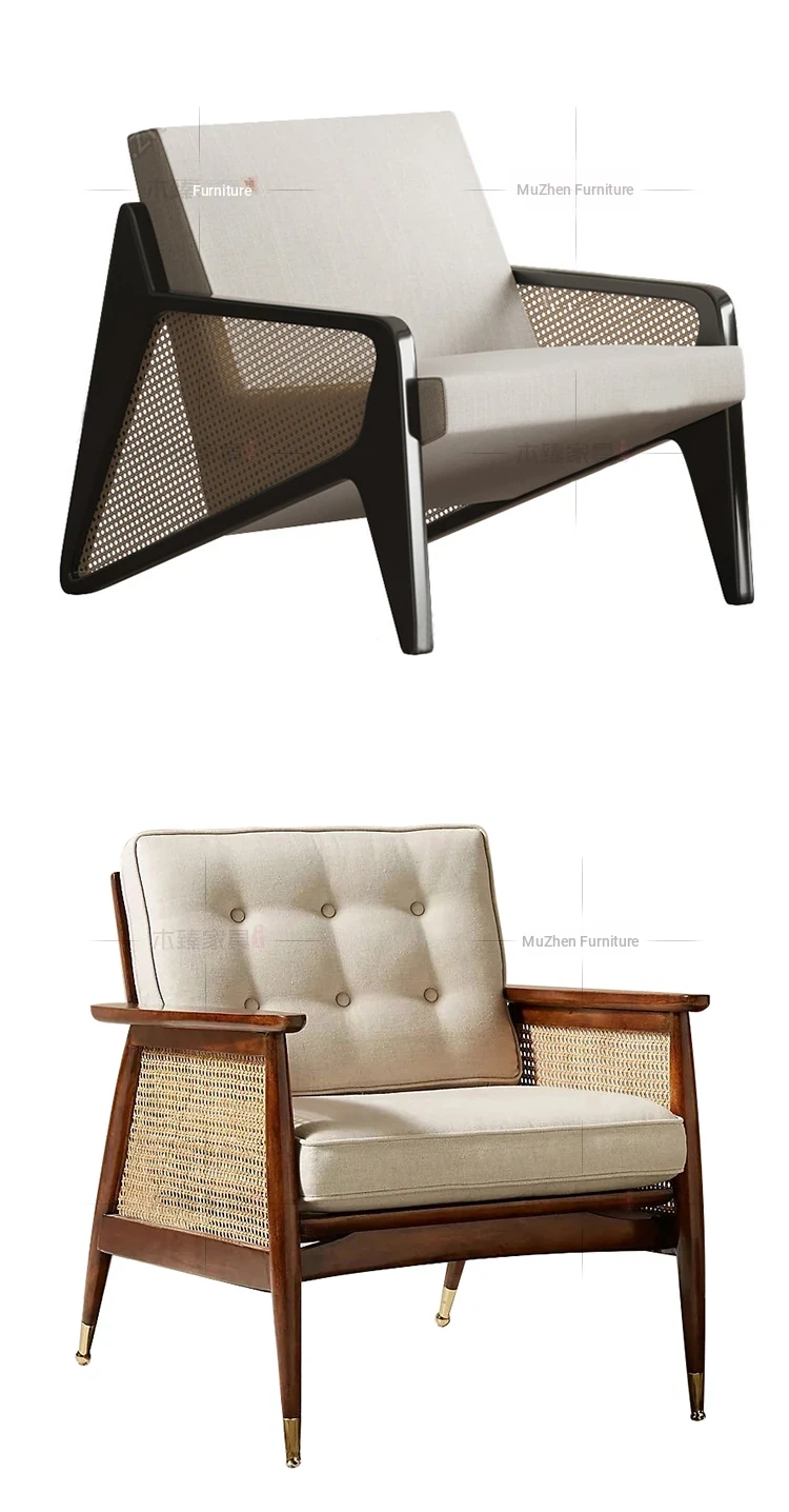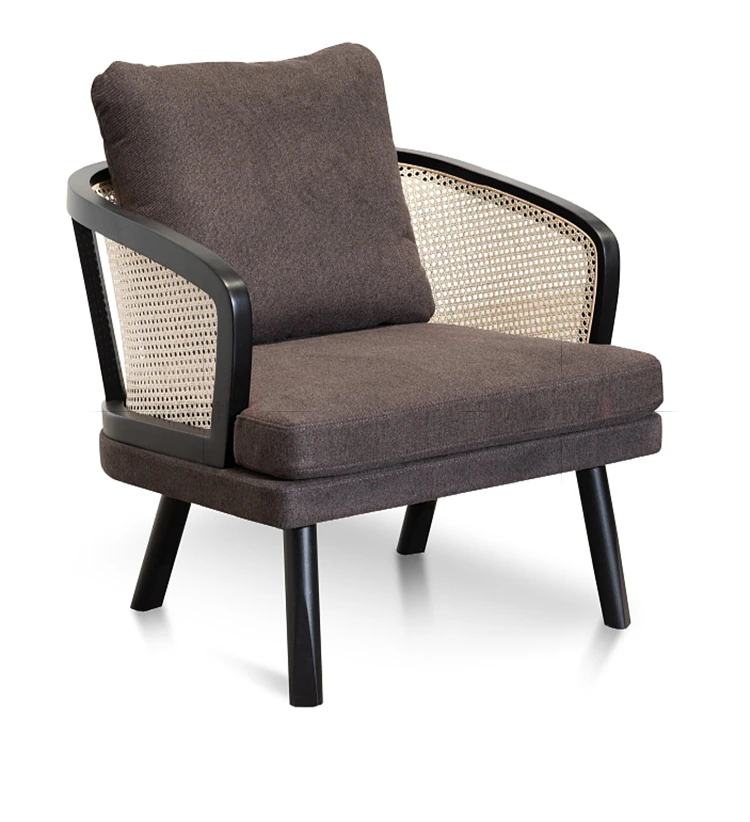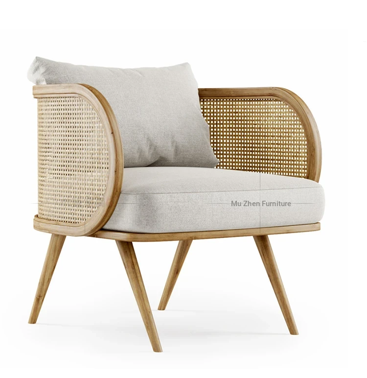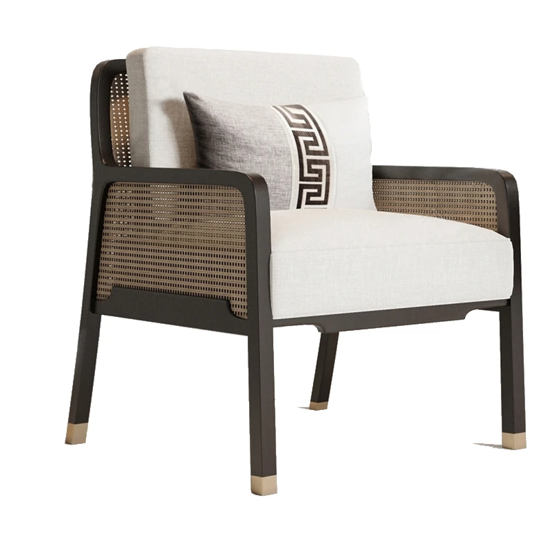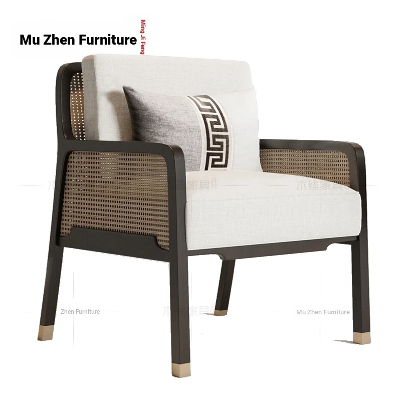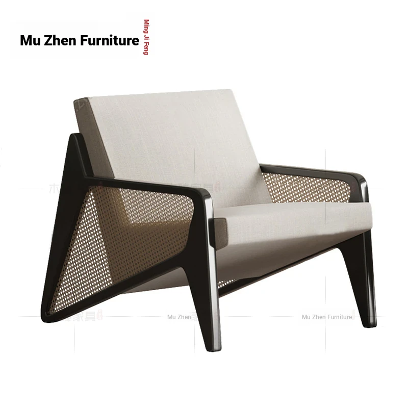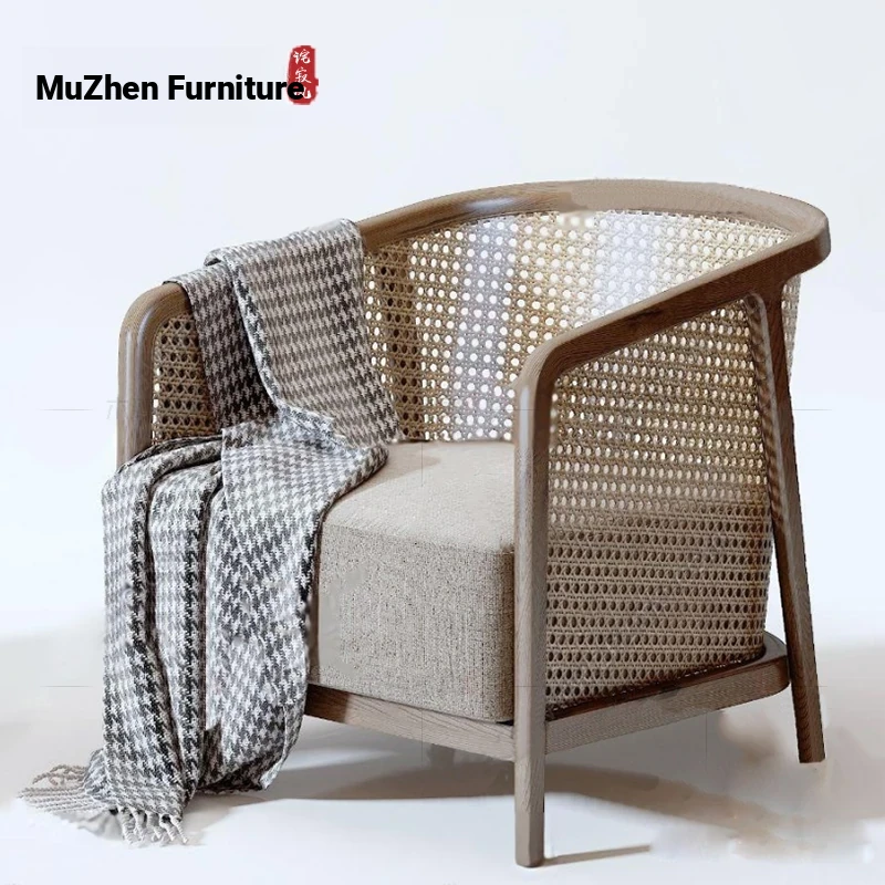 Elegant New Chinese Solid Wood Sofa Chair - Nordic Style for Hotels and Lounges, Perfect for Living Rooms and Cozy Retreats, Embracing Wabi-Sabi Aesthetics for Bedrooms and Relaxation Spaces.