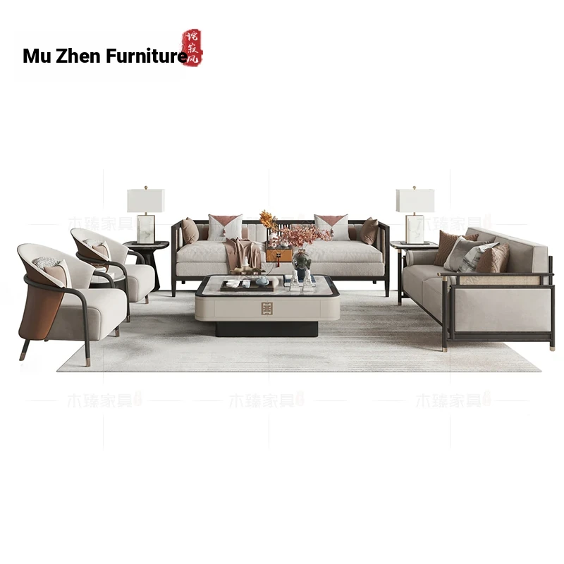 Elegant New Chinese Style Solid Wood Leisure Sofa Chair - Perfect for Sales Offices, Hotel Lounges, and VIP Meeting Rooms. Experience Luxury and Comfort in Every Conversation!