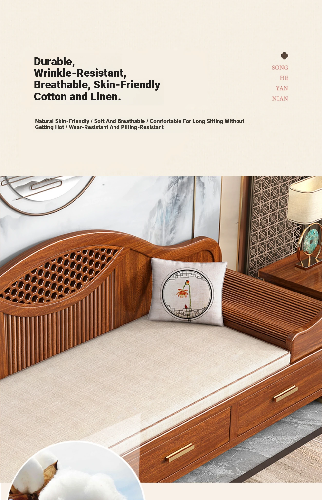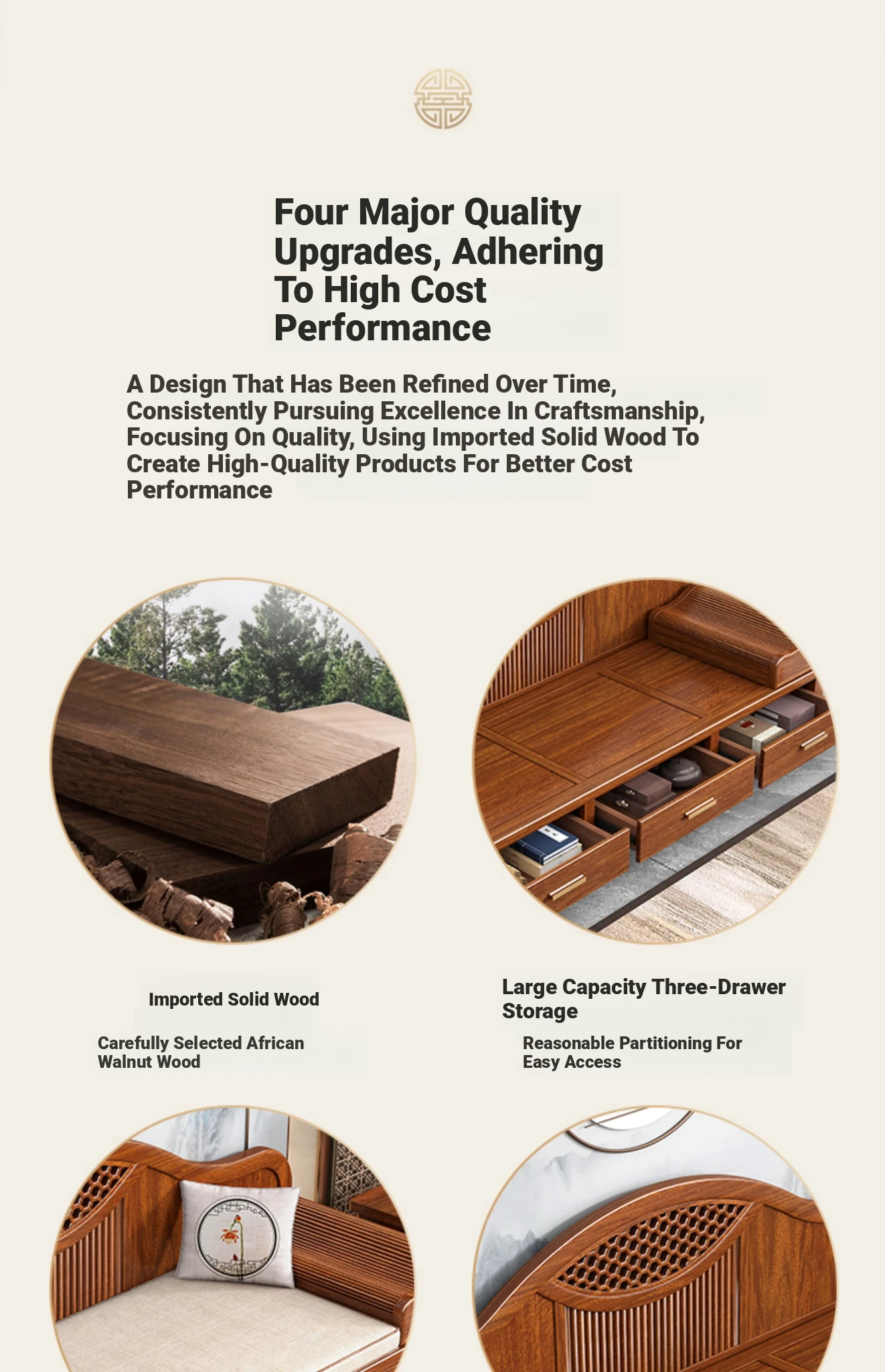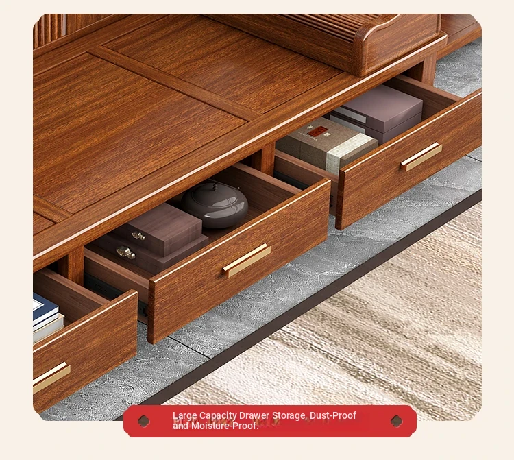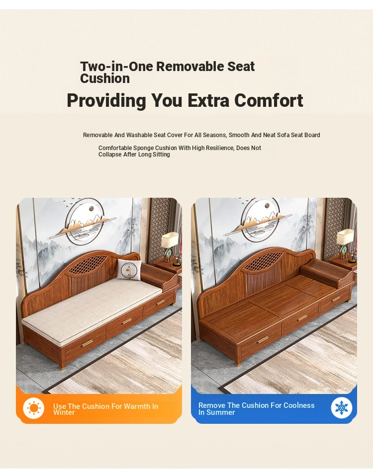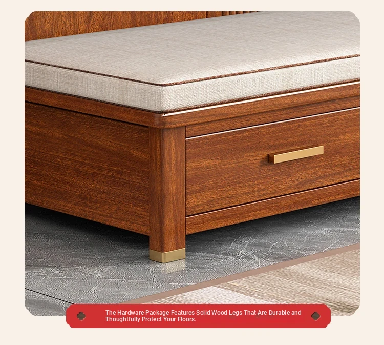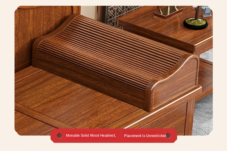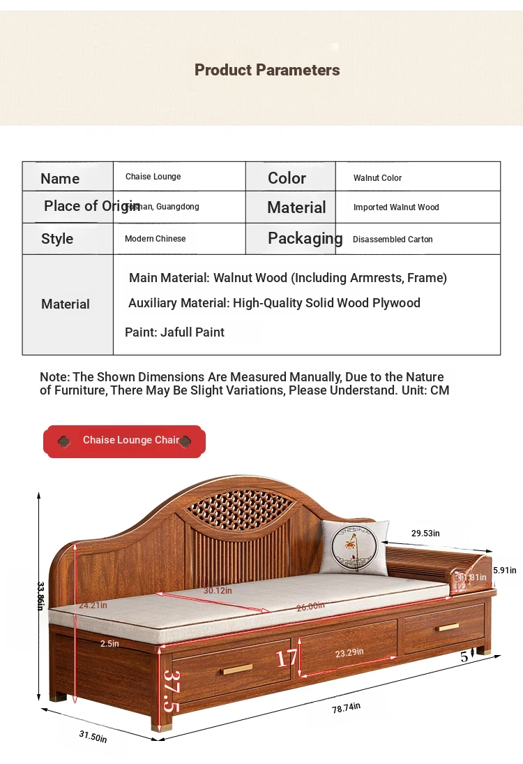 Elegant Solid Wood Chaise Lounge - Walnut Finish, Stylish Living Room Sofa Bed with Storage, Modern Chinese Design, Perfect for Bedroom Relaxation and Comfort
