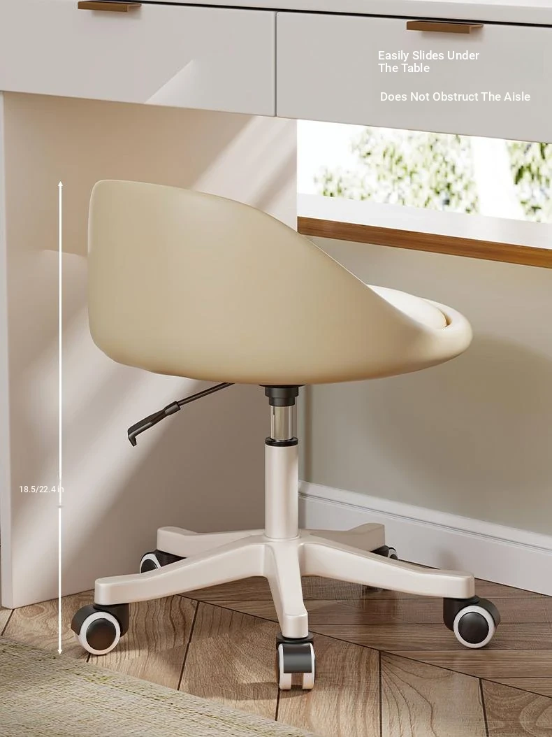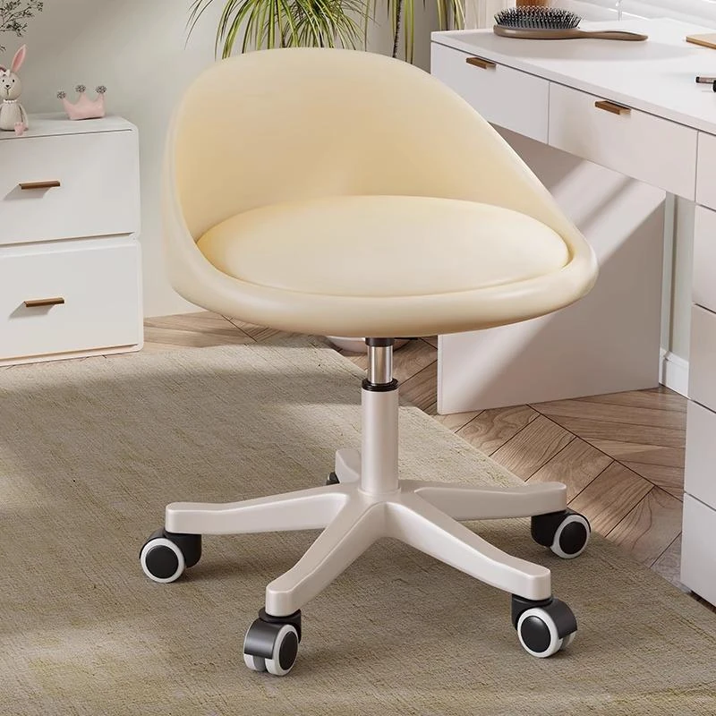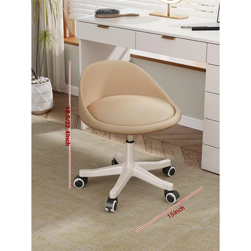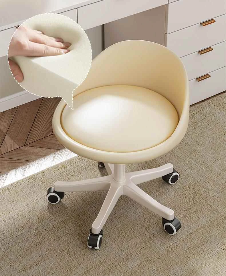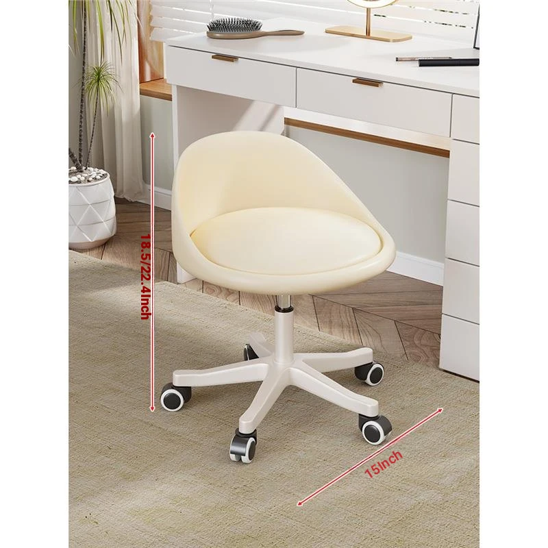 Elegant Vanity Stool for Home Use - Stylish Makeup Chair with Creamy Aesthetic, Perfect for Beauty and Nail Treatments. Features Smooth-Gliding Wheels for Easy Mobility in Your Bedroom. Ideal for the Trendy Influencer Look!